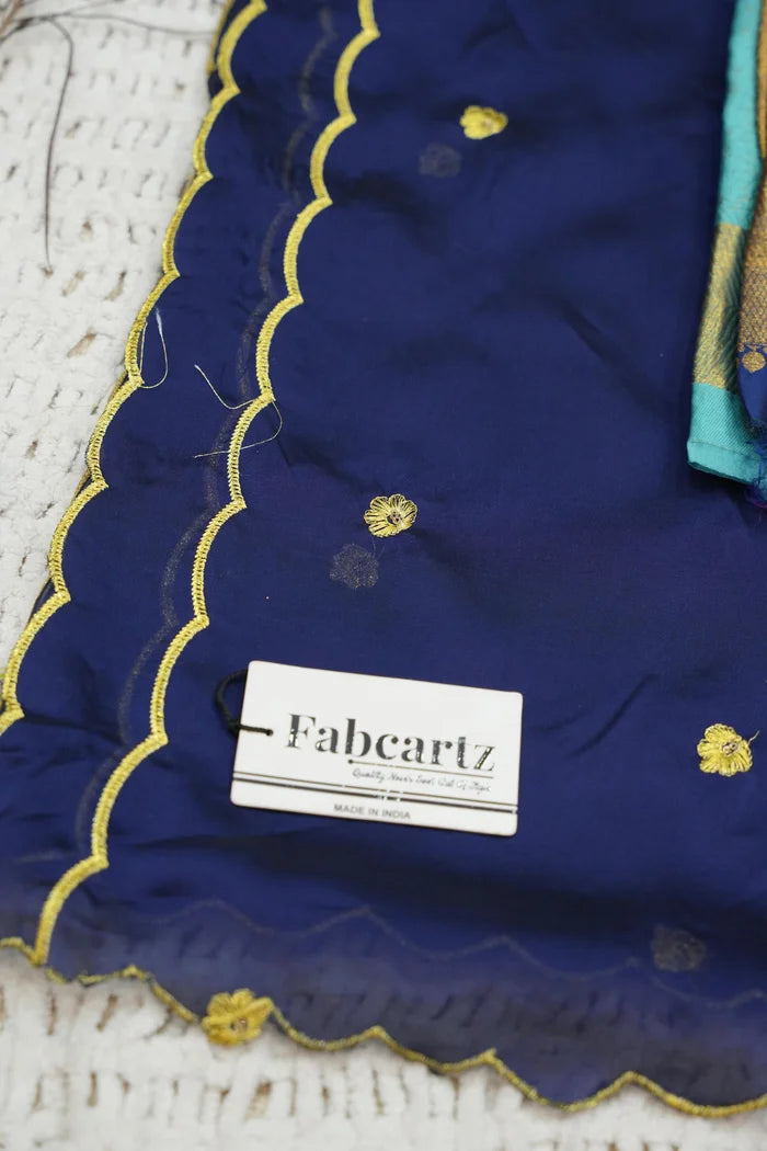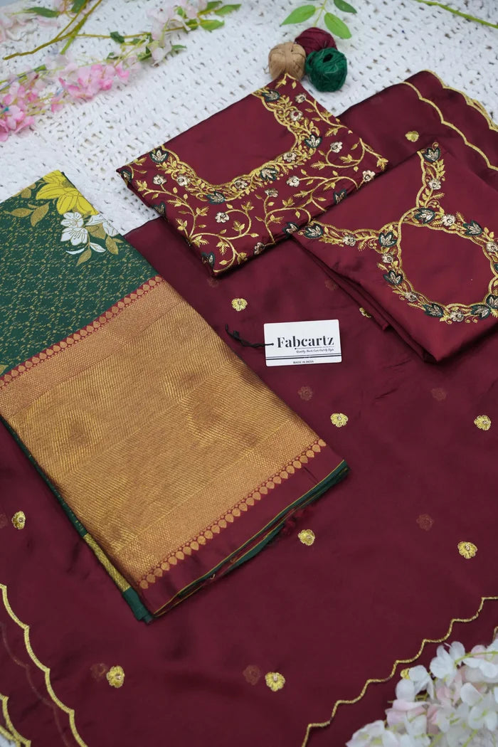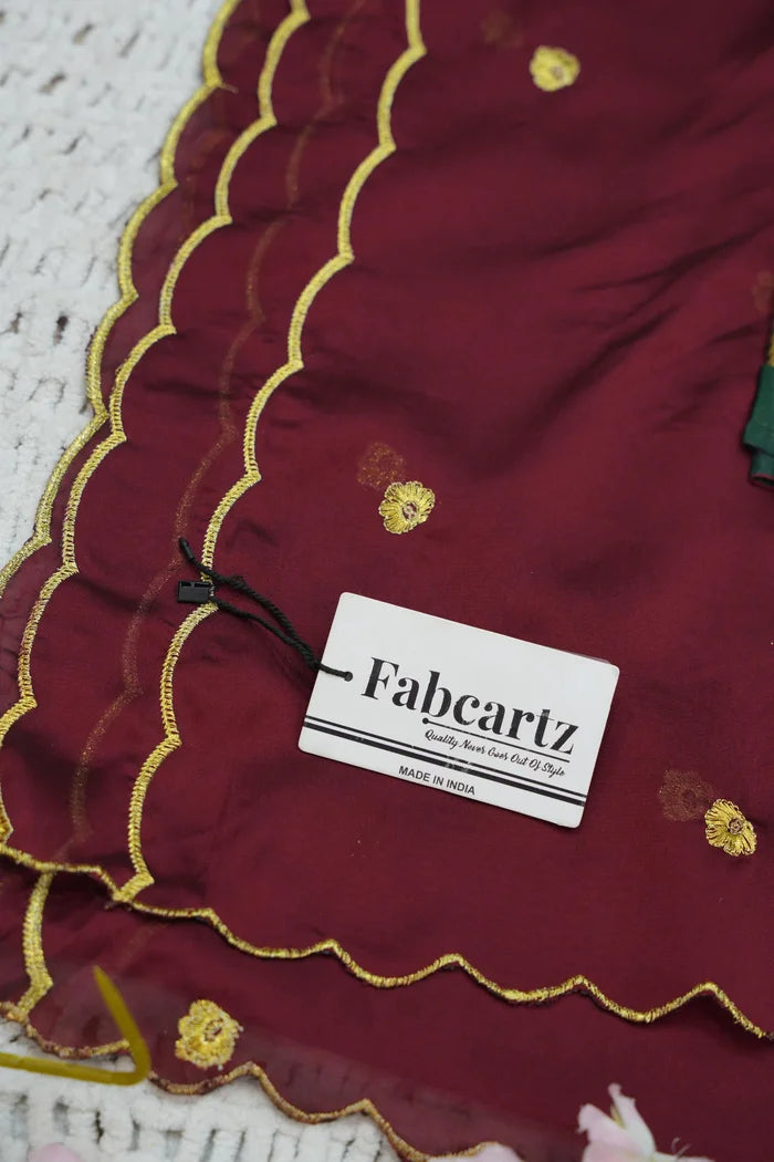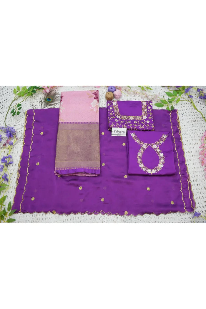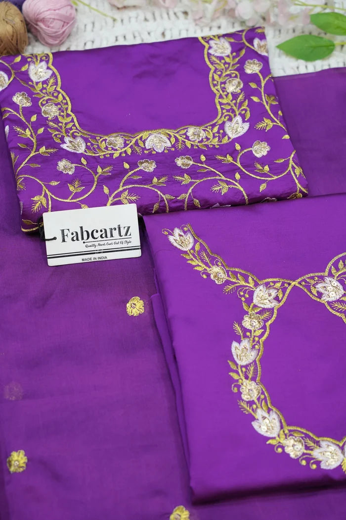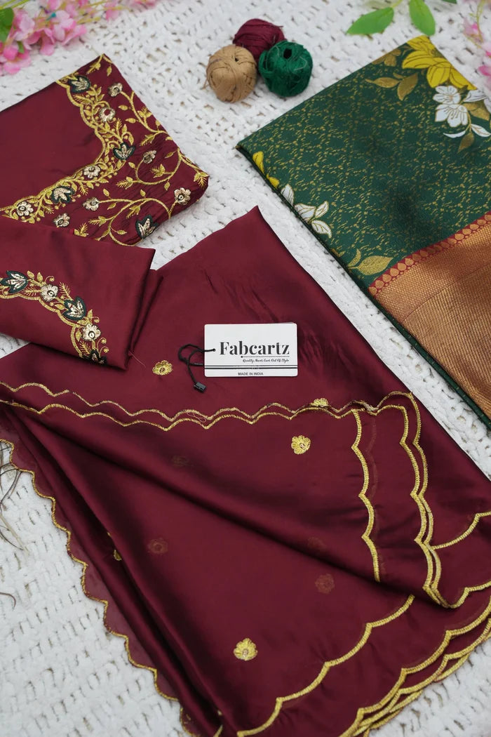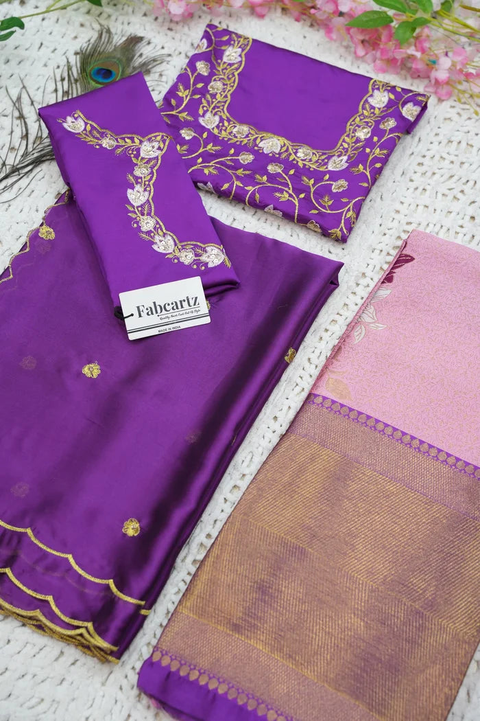 Crafted from Taffeta Satin (Litchi Silk) with intricate Zari work, offering a rich and elegant look.