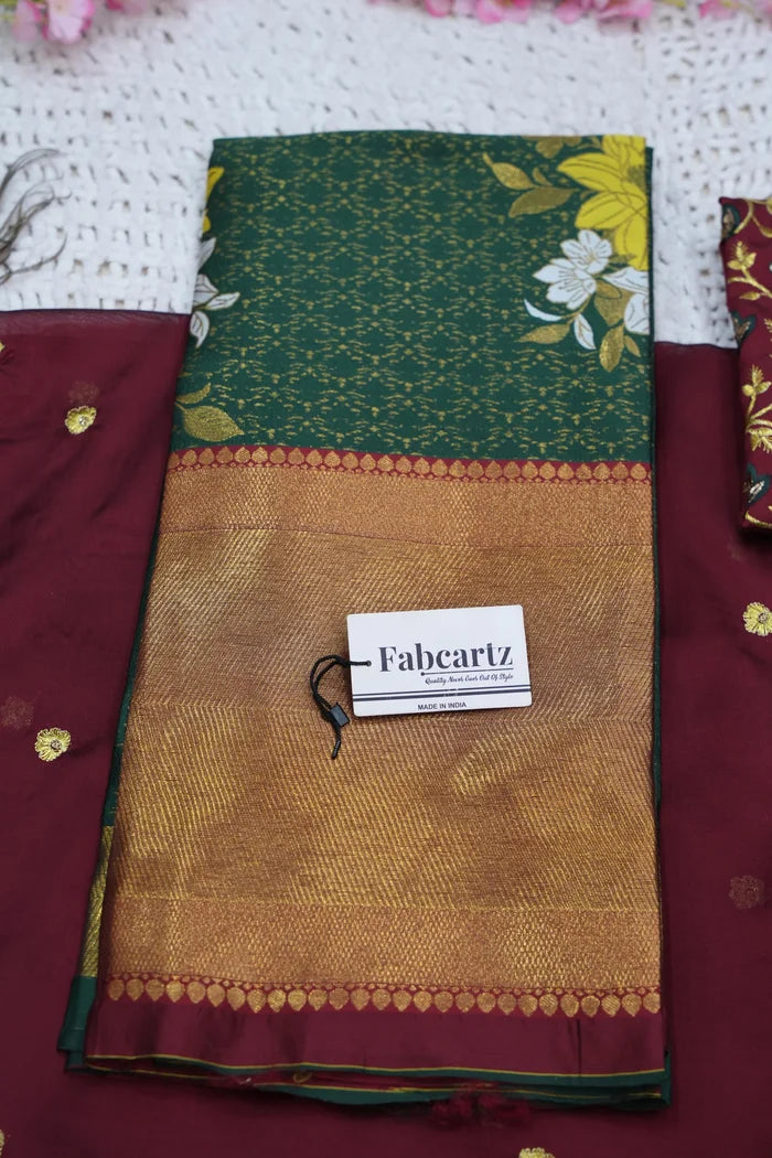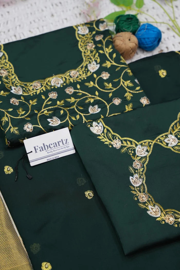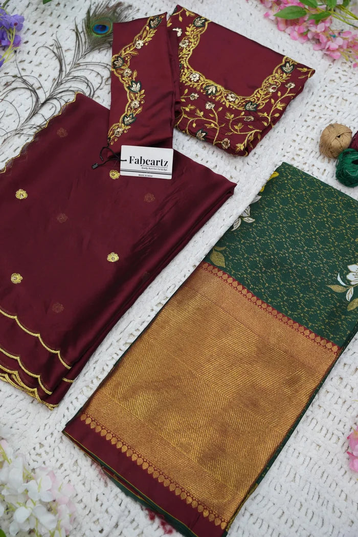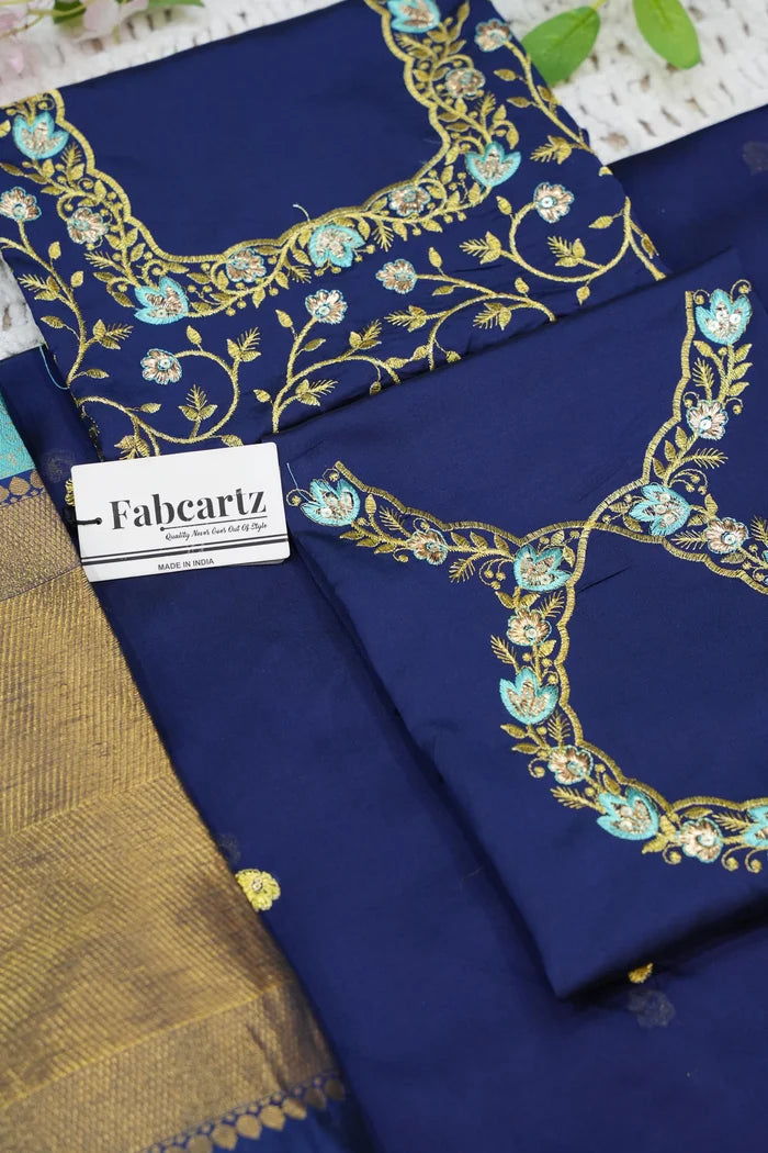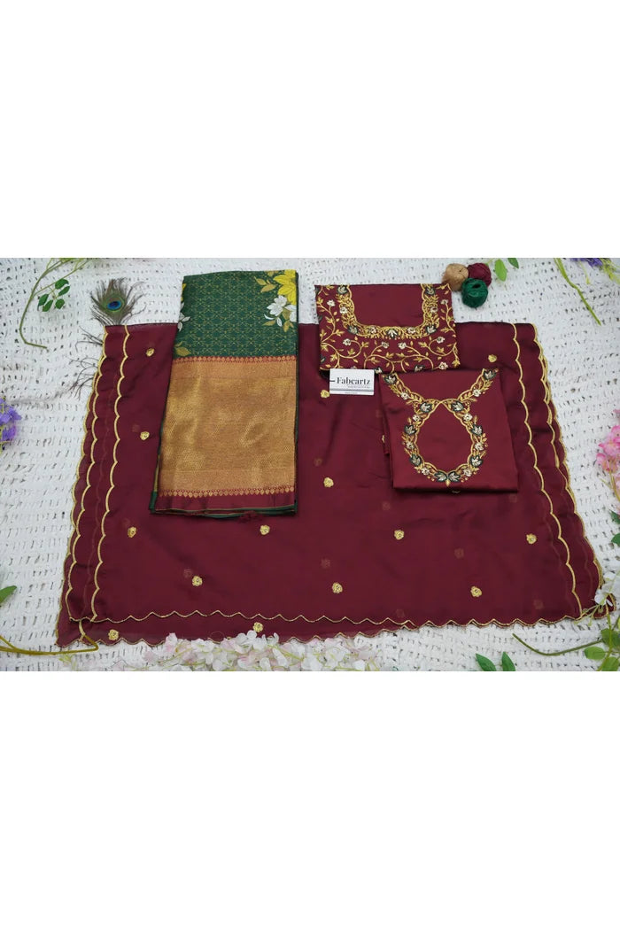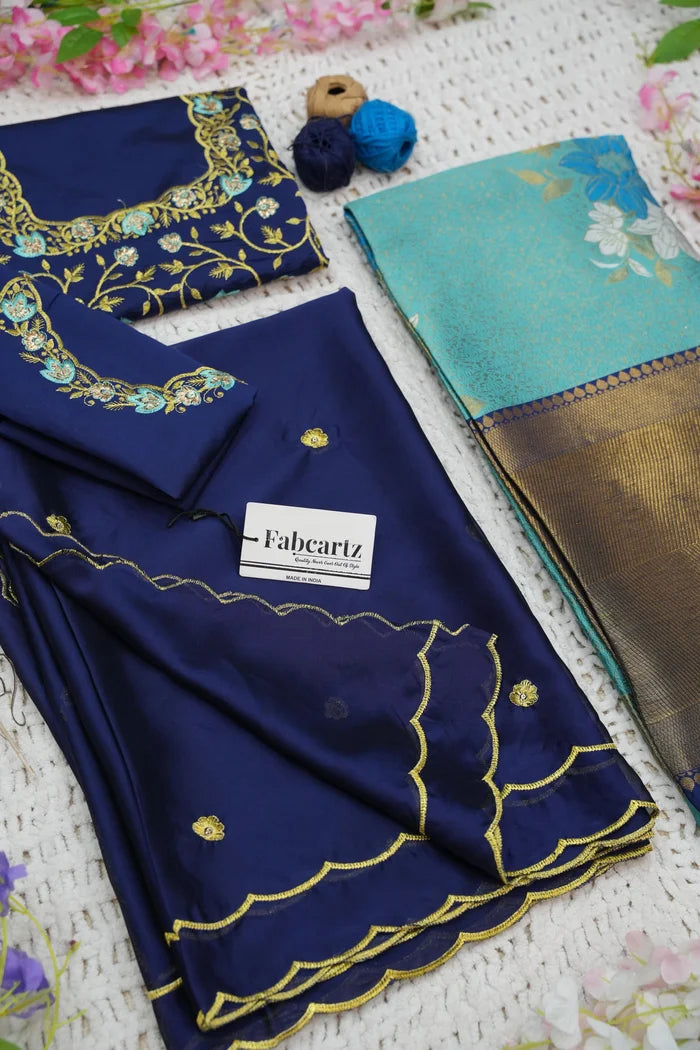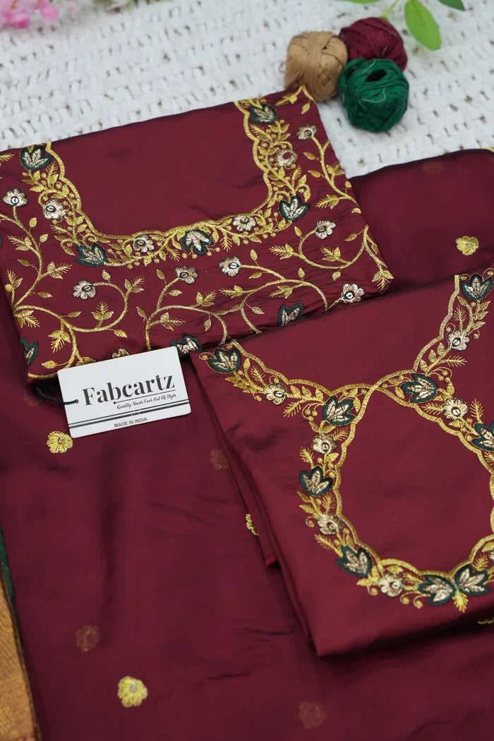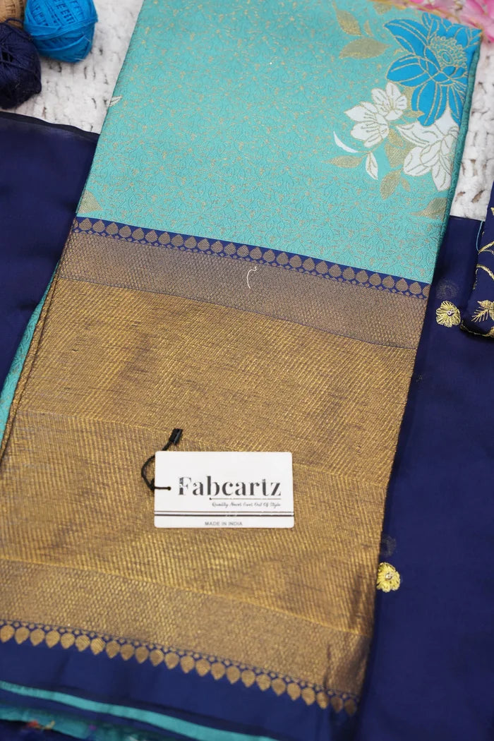 Crafted from Taffeta Satin (Litchi Silk) with intricate Zari work, offering a rich and elegant look.