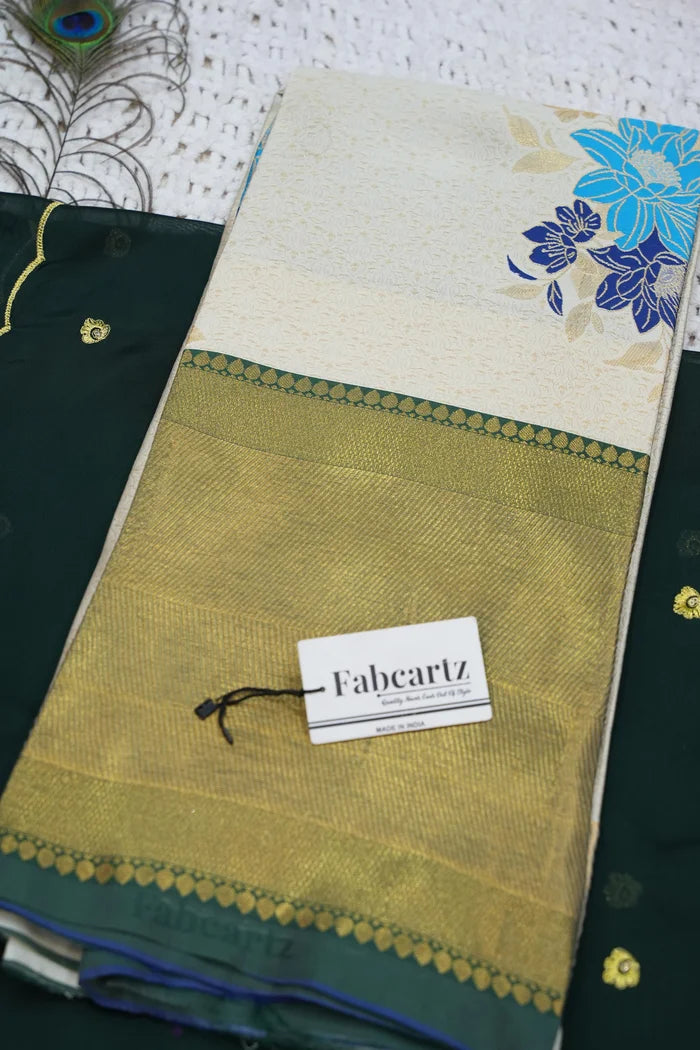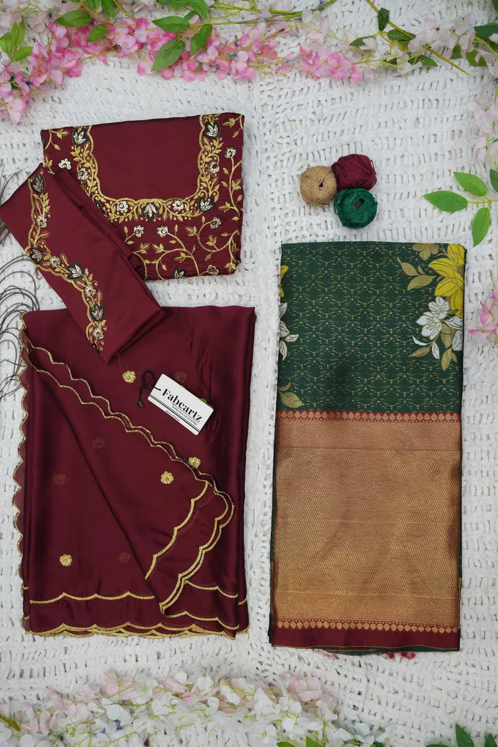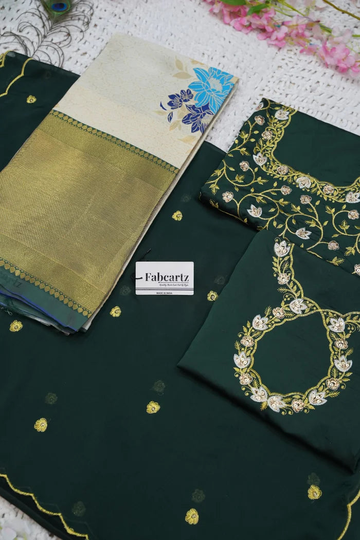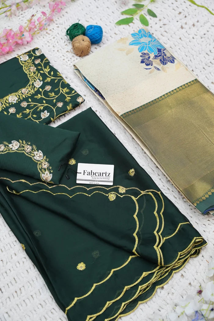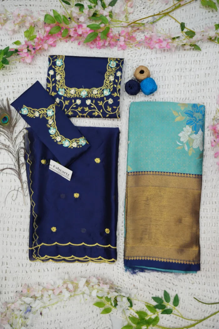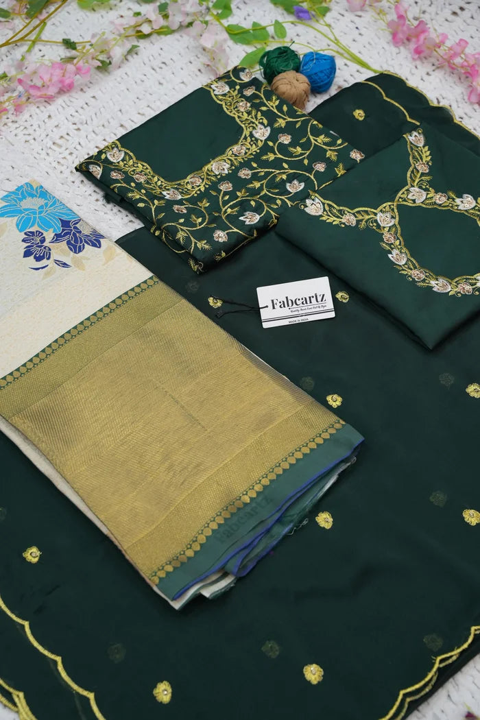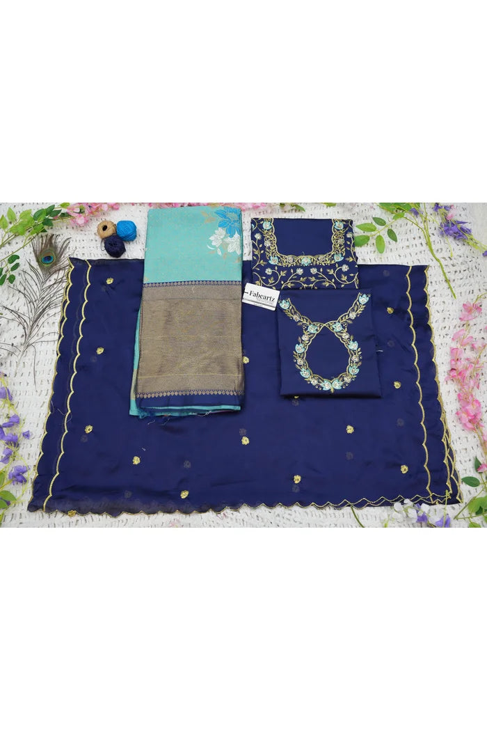 Crafted from Taffeta Satin (Litchi Silk) with intricate Zari work, offering a rich and elegant look.
