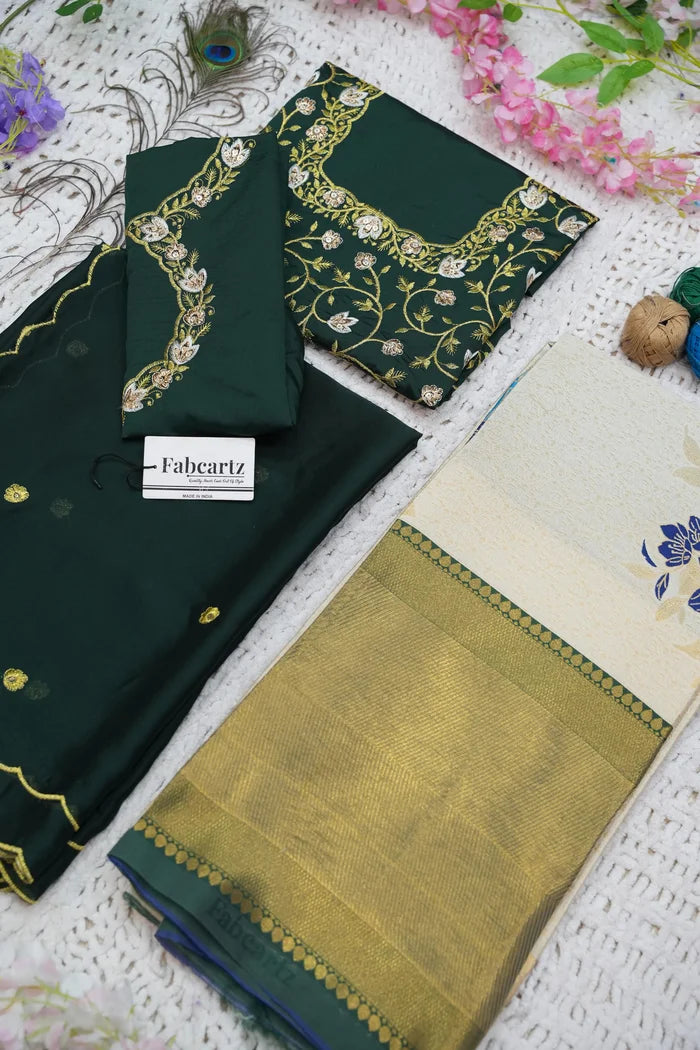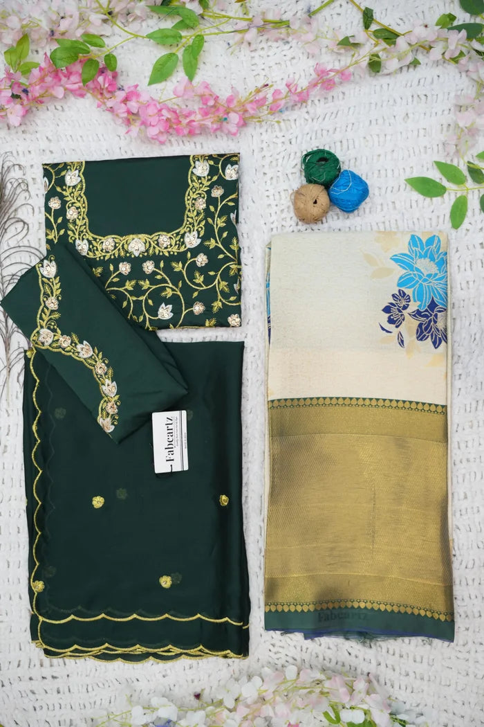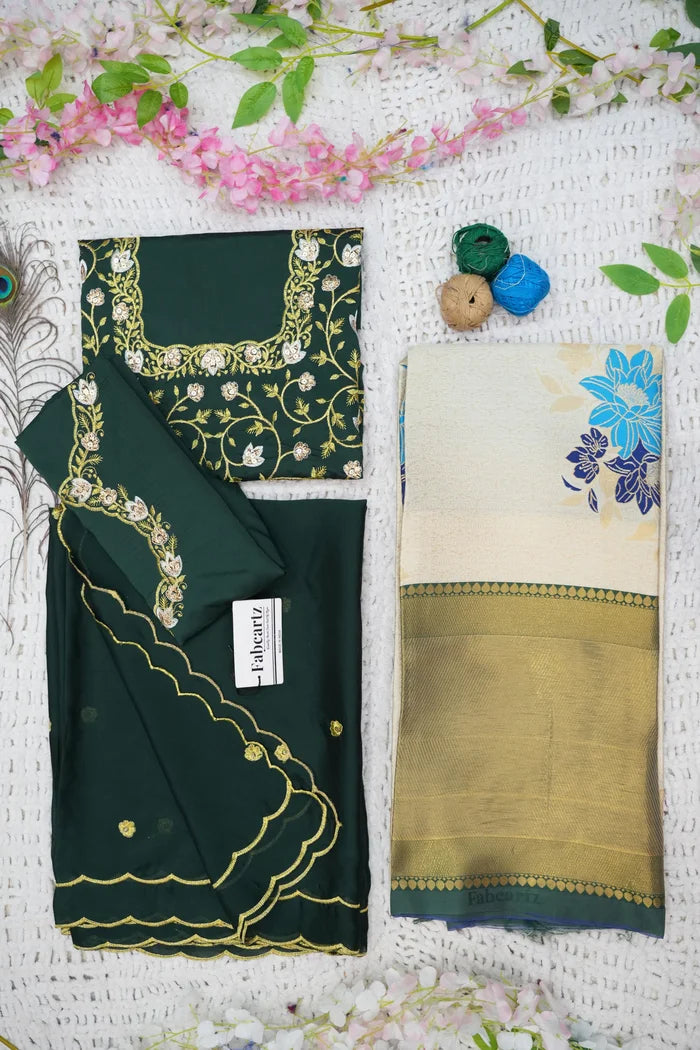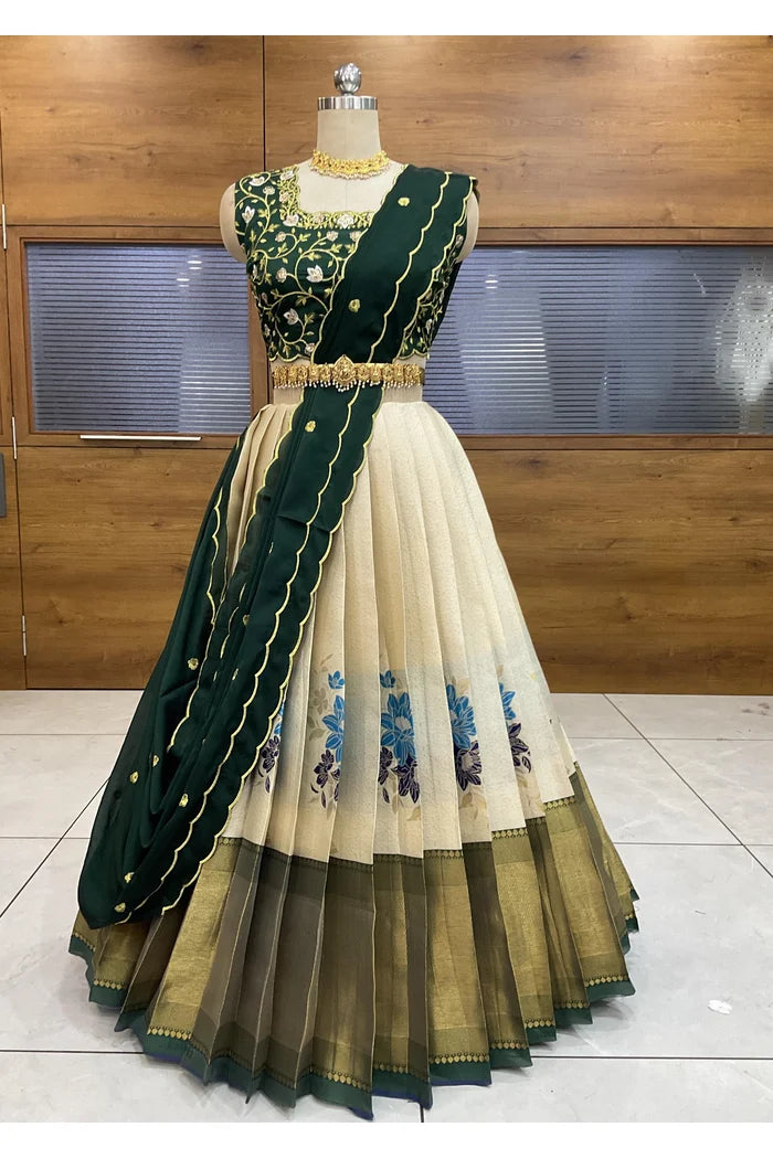 (Adhira) South Indian Festival Traditional Half Saree with Embroidered Blouse & Dupatta