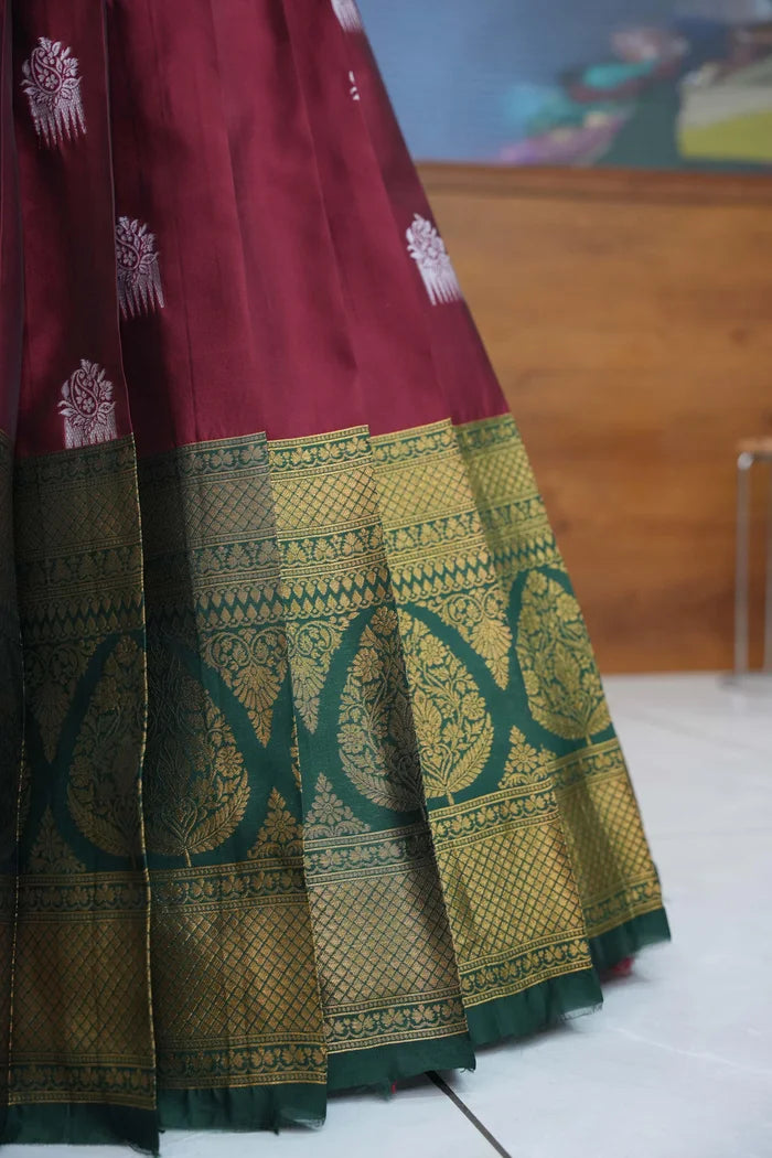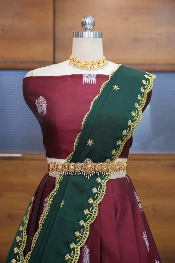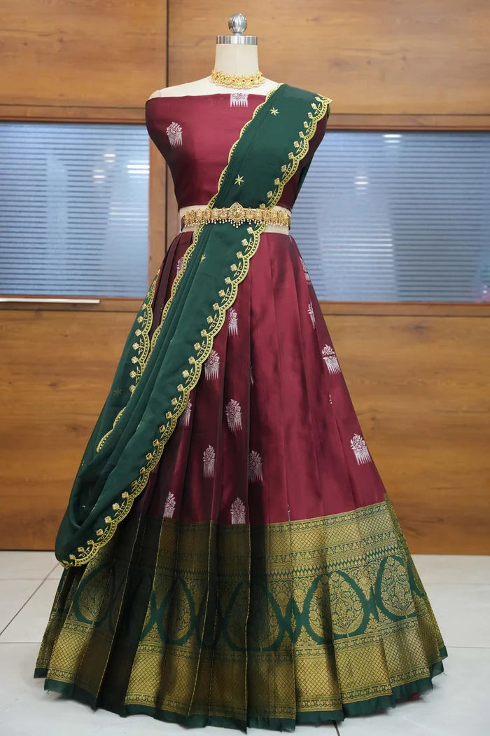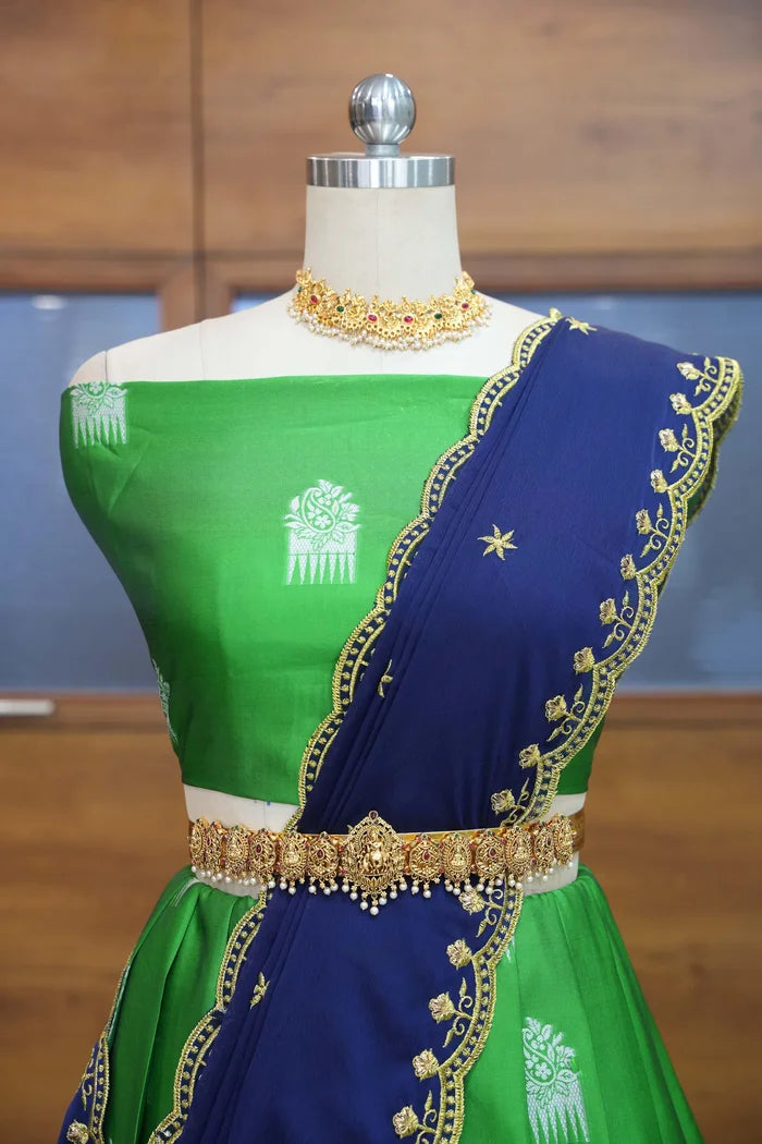 (ButtaBomma) South Indian Festival Traditional Half Saree with Embroidered Blouse & Dupatta