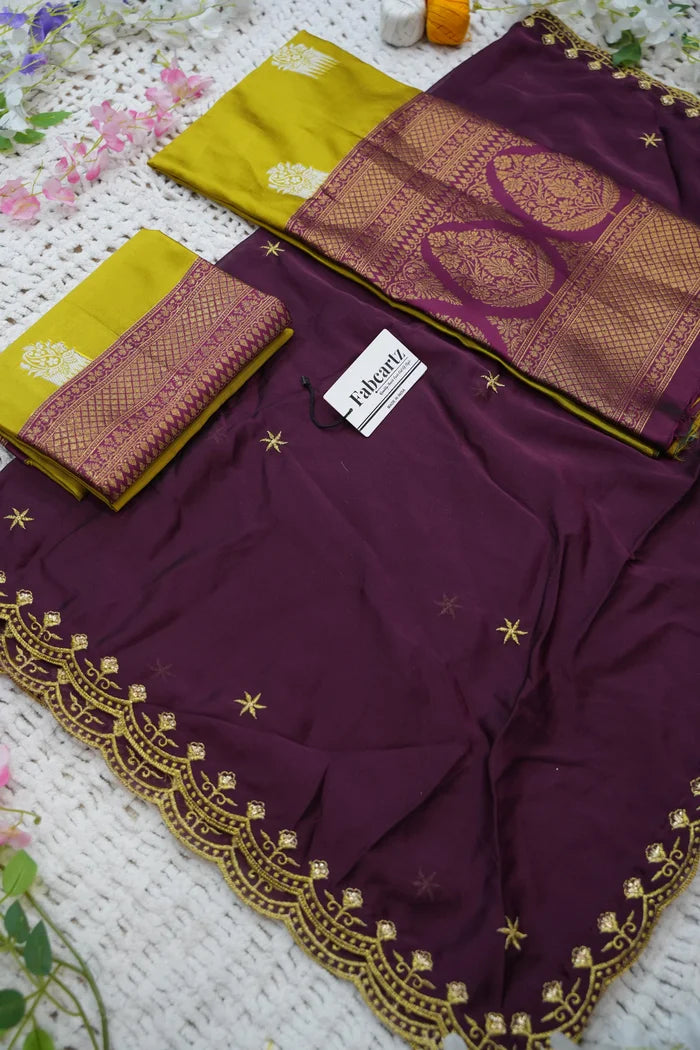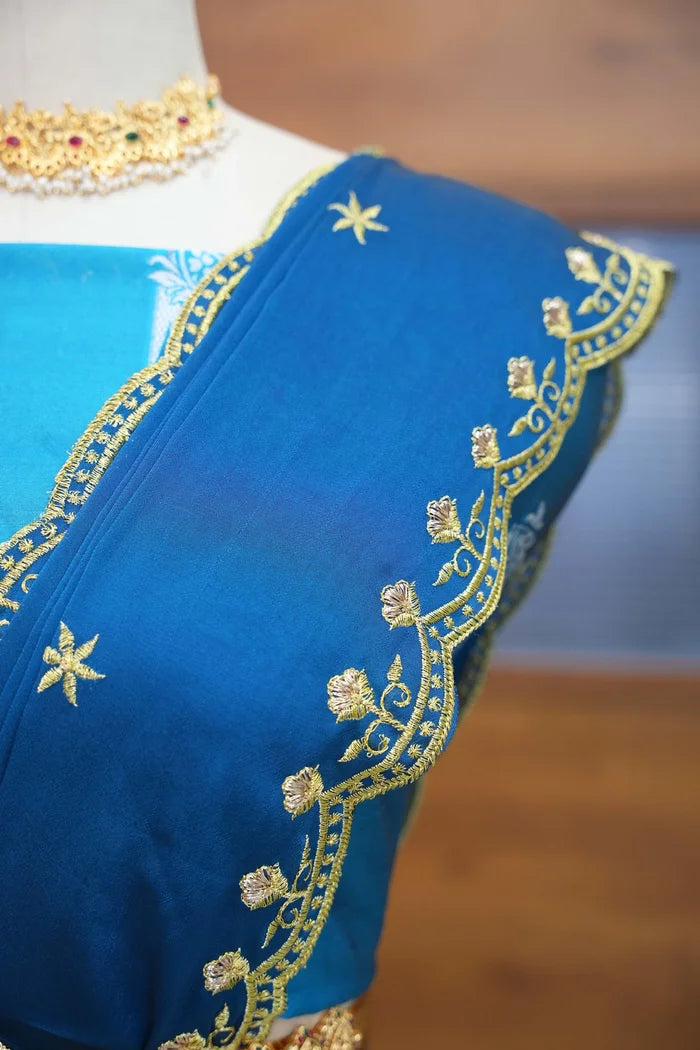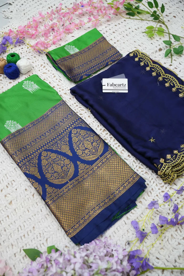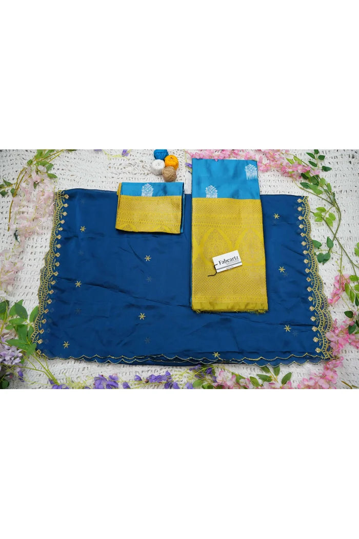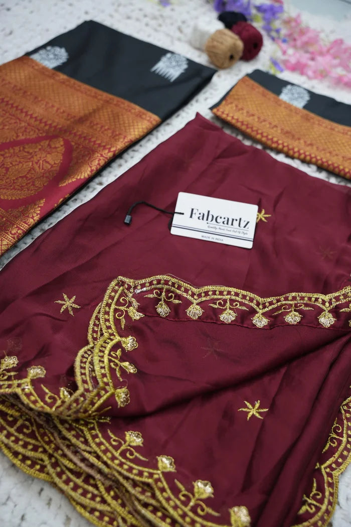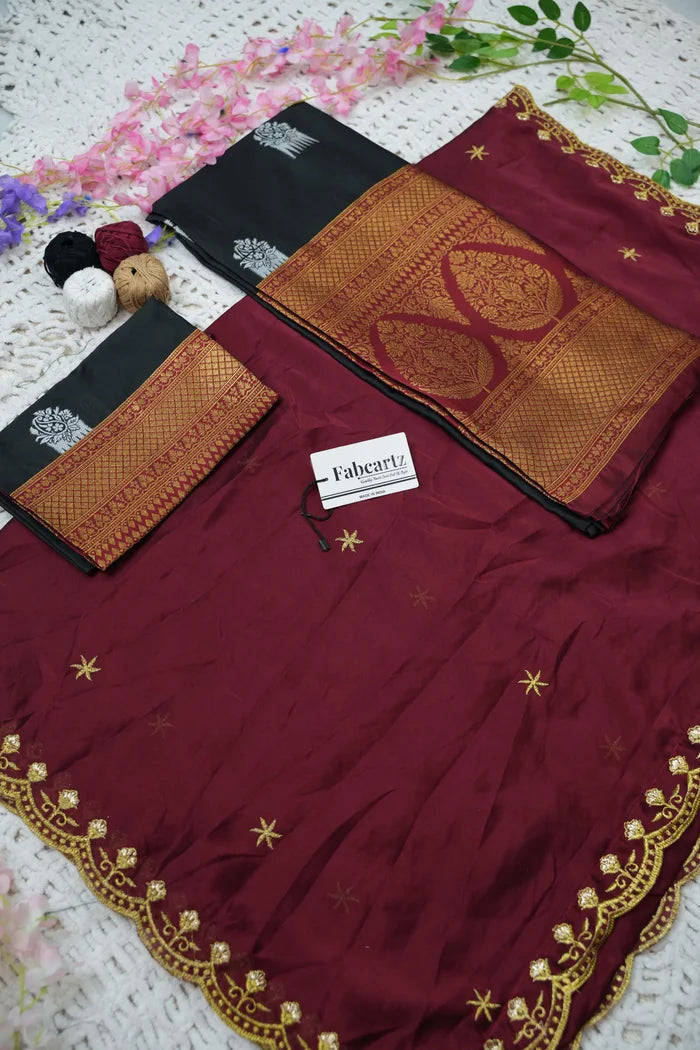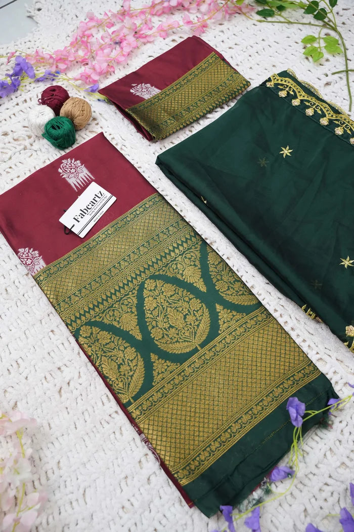 Crafted from Taffeta Satin (Litchi Silk) with intricate Zari work, offering a rich and elegant look.