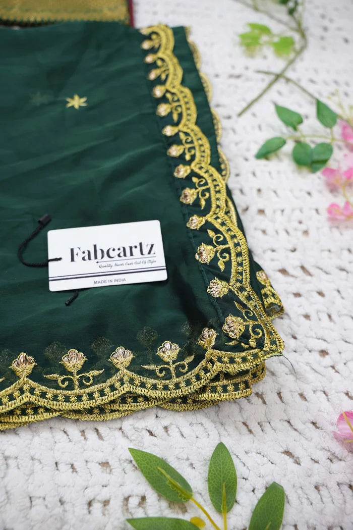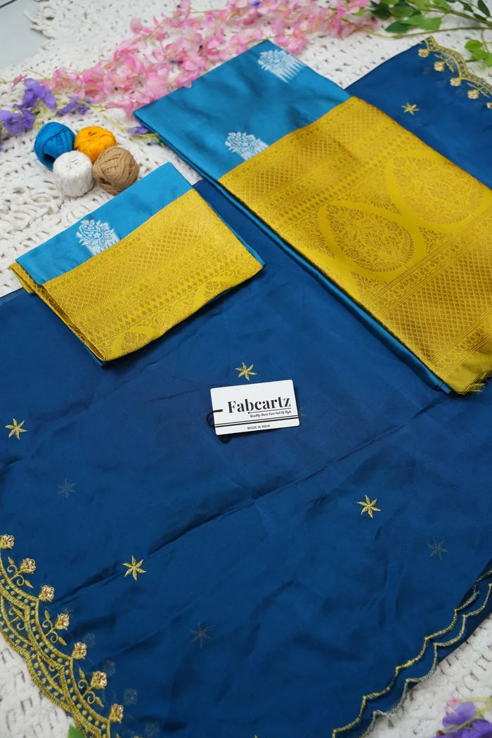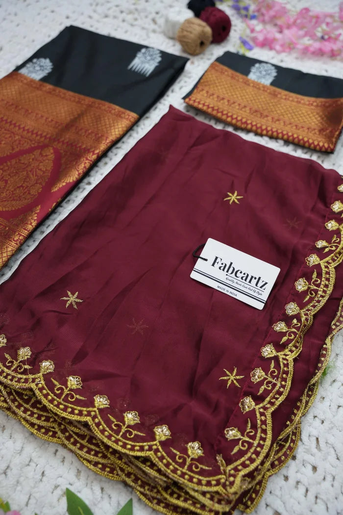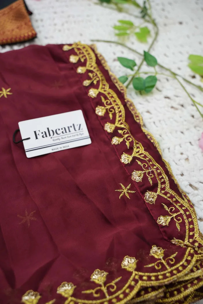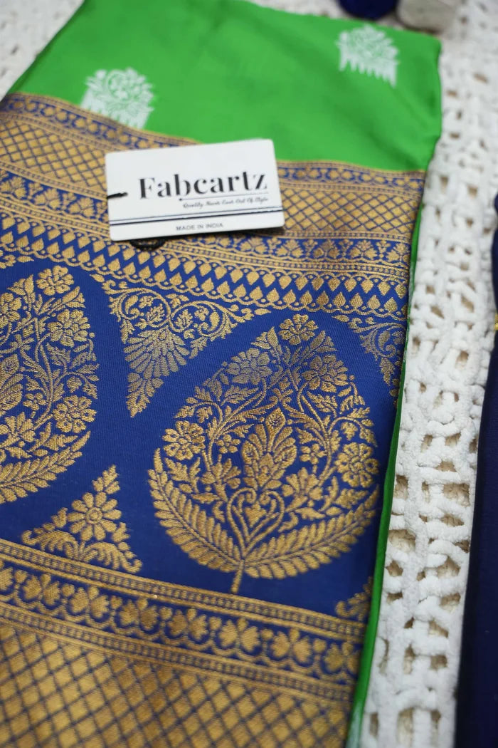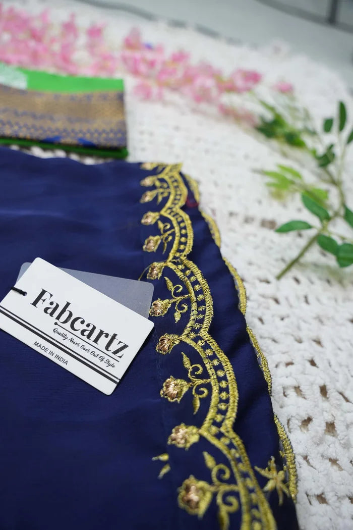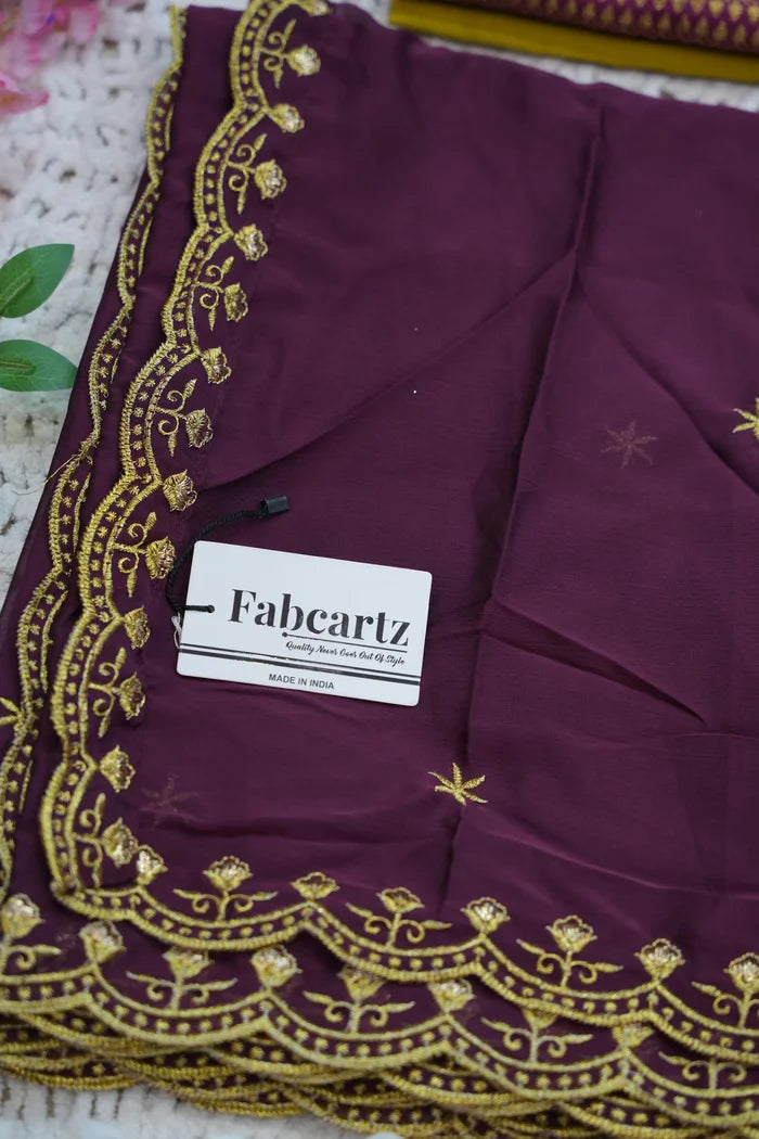 Crafted from Taffeta Satin (Litchi Silk) with intricate Zari work, offering a rich and elegant look.