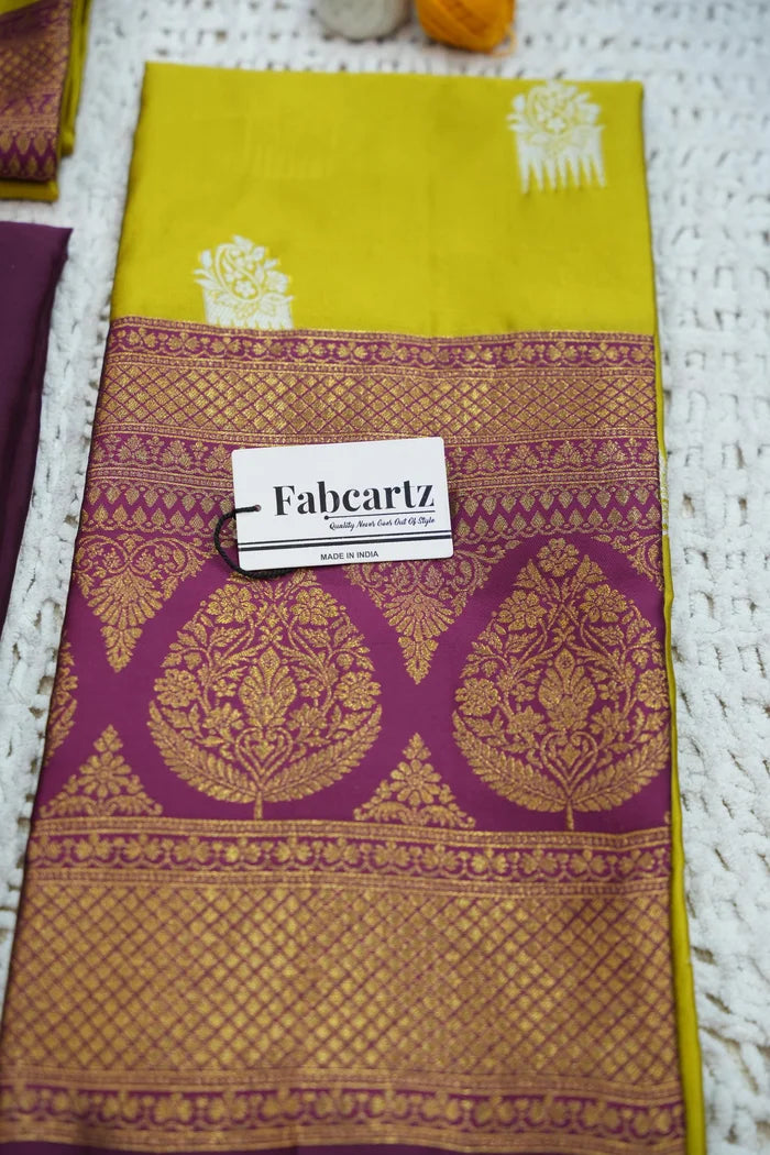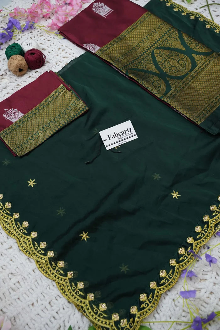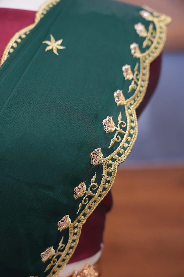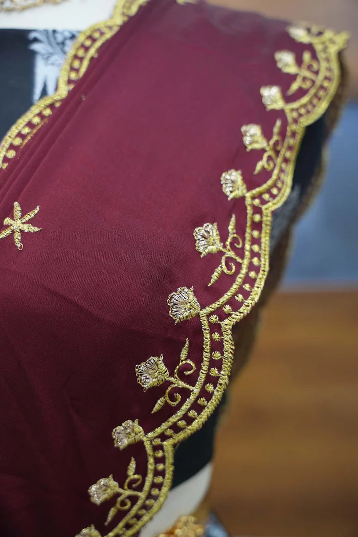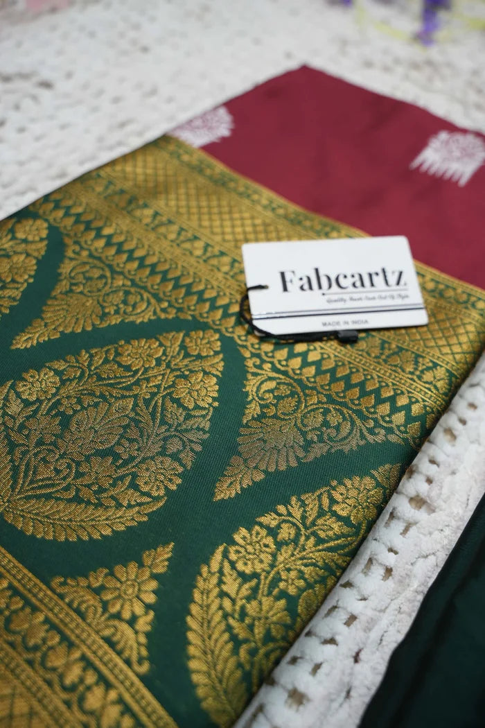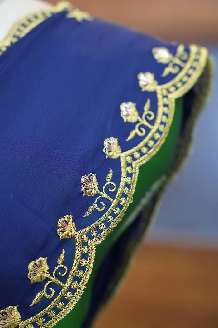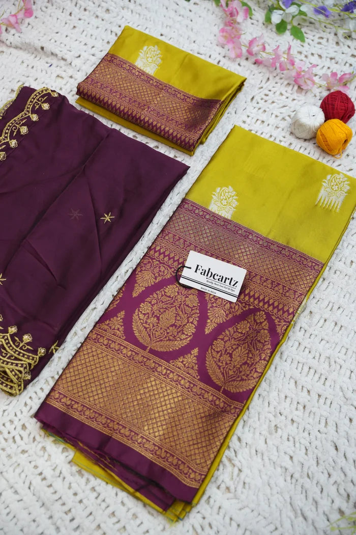 Crafted from Taffeta Satin (Litchi Silk) with intricate Zari work, offering a rich and elegant look.
