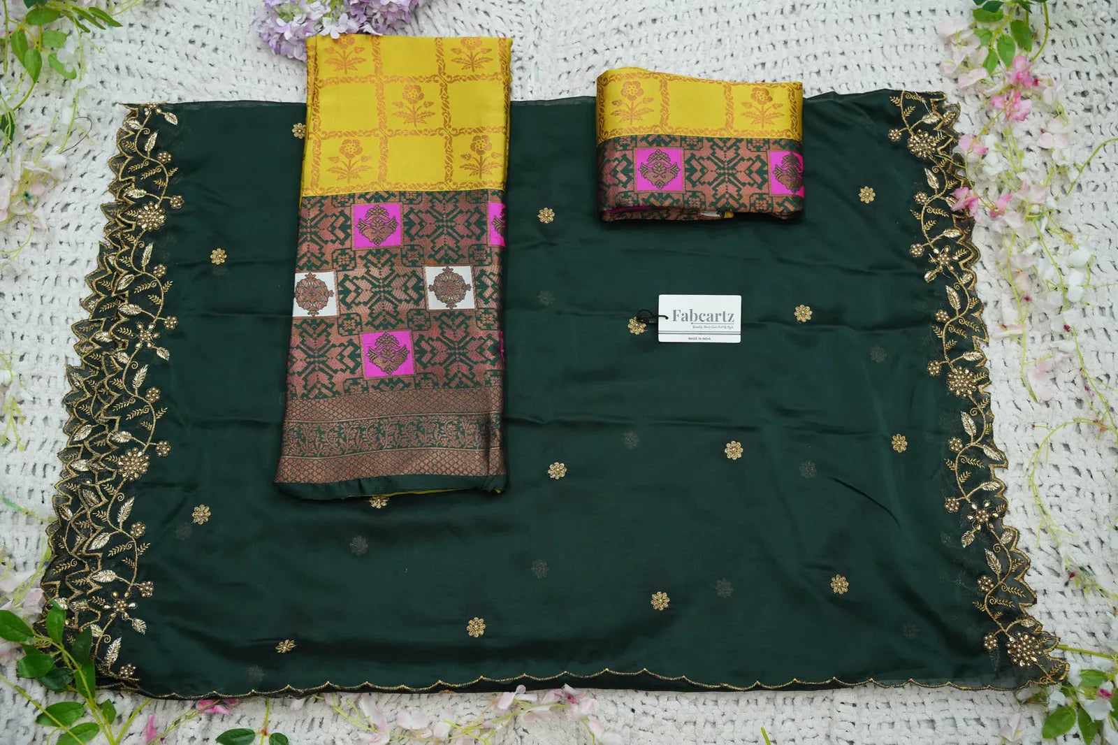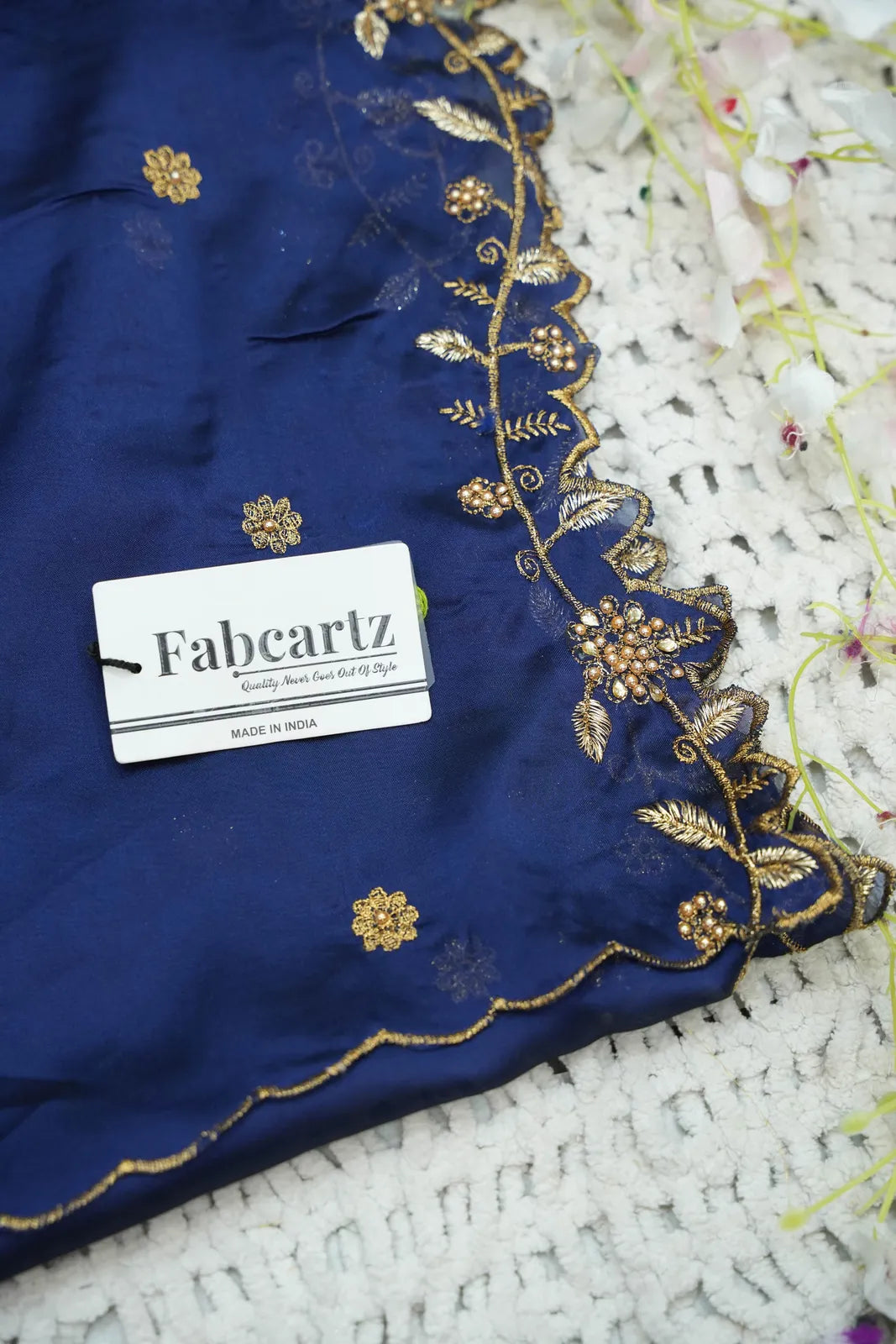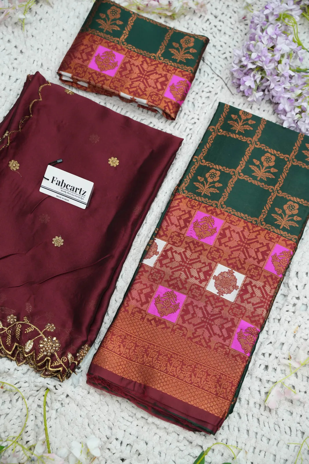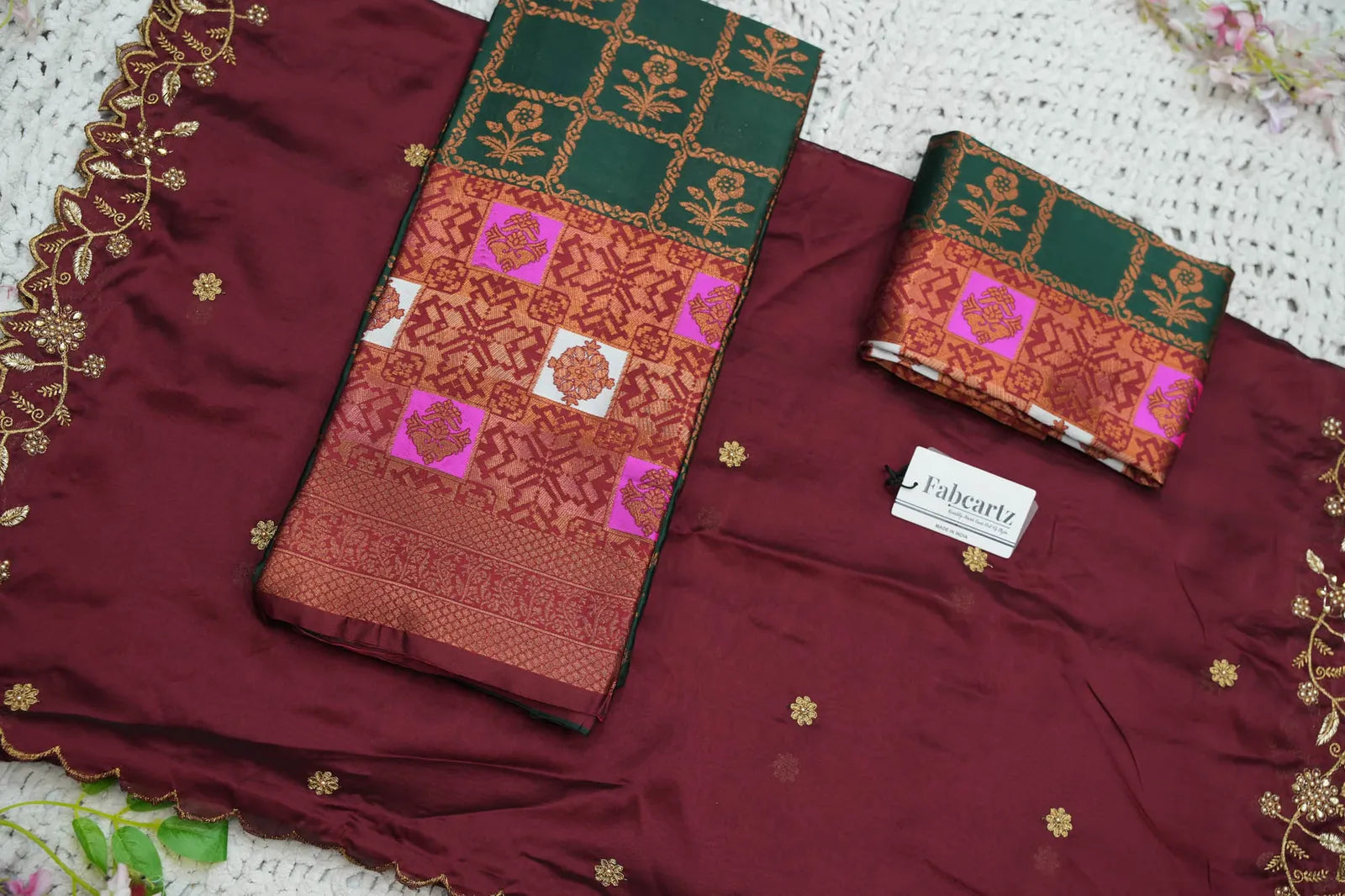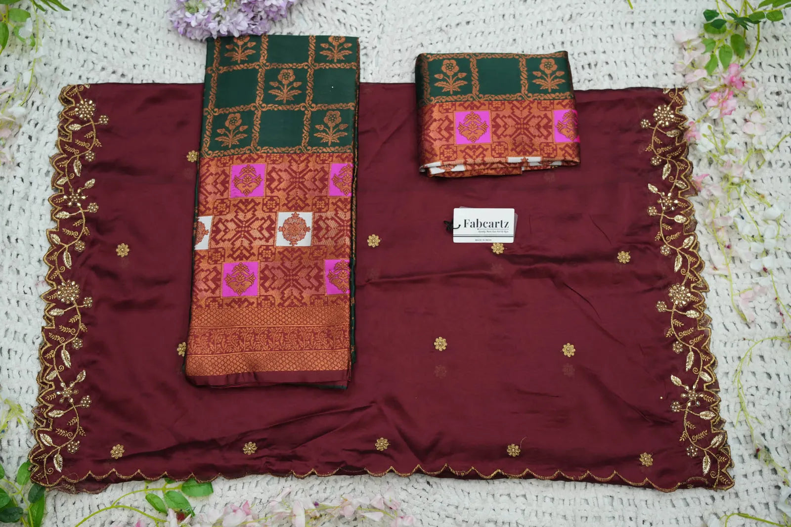 Crafted from Taffeta Satin (Litchi Silk) with intricate Zari work, offering a rich and elegant look.
