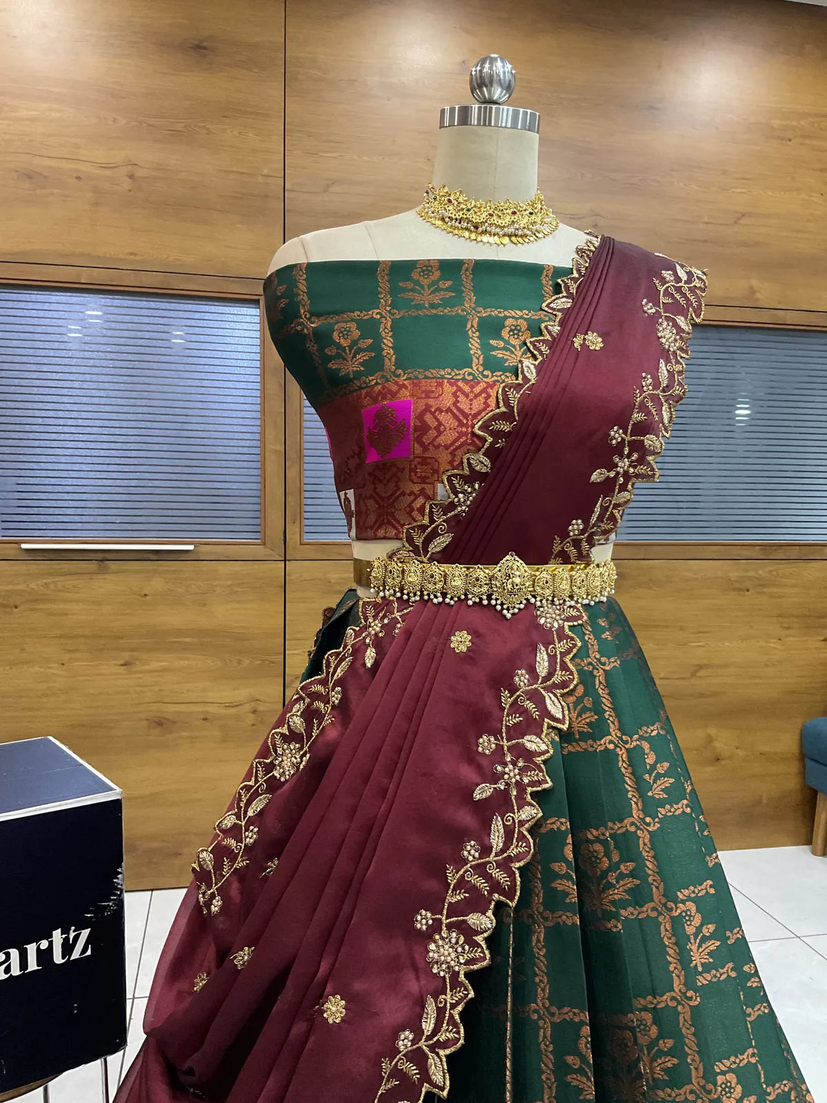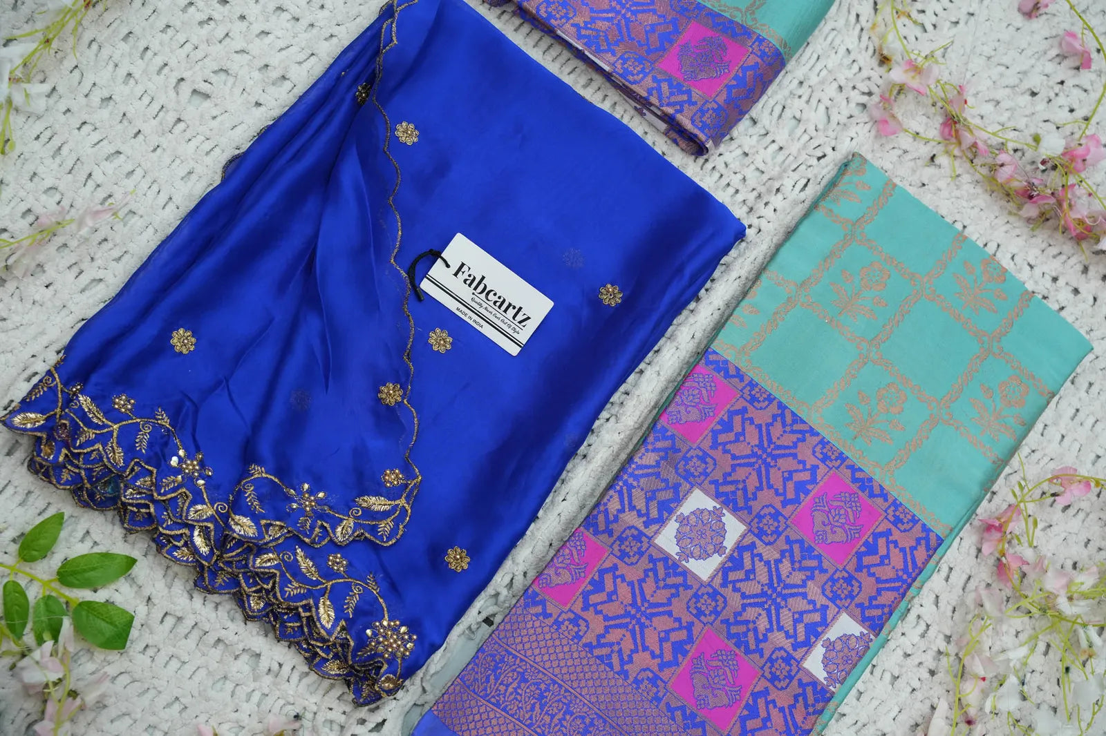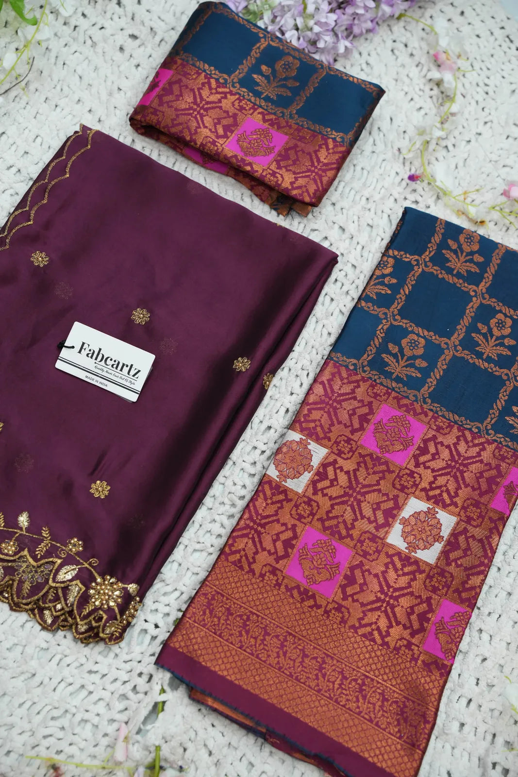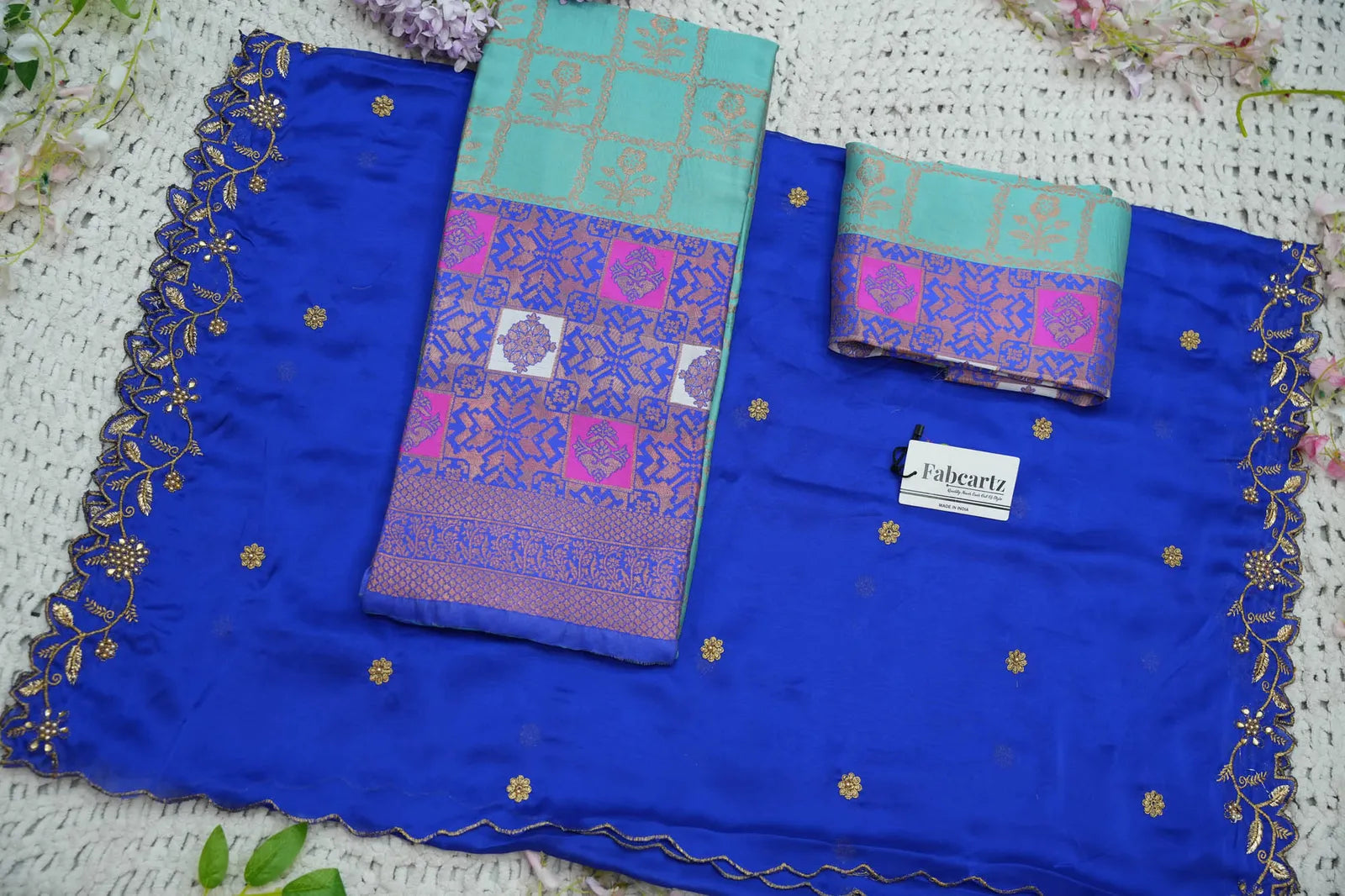 Crafted from Taffeta Satin (Litchi Silk) with intricate Zari work, offering a rich and elegant look.