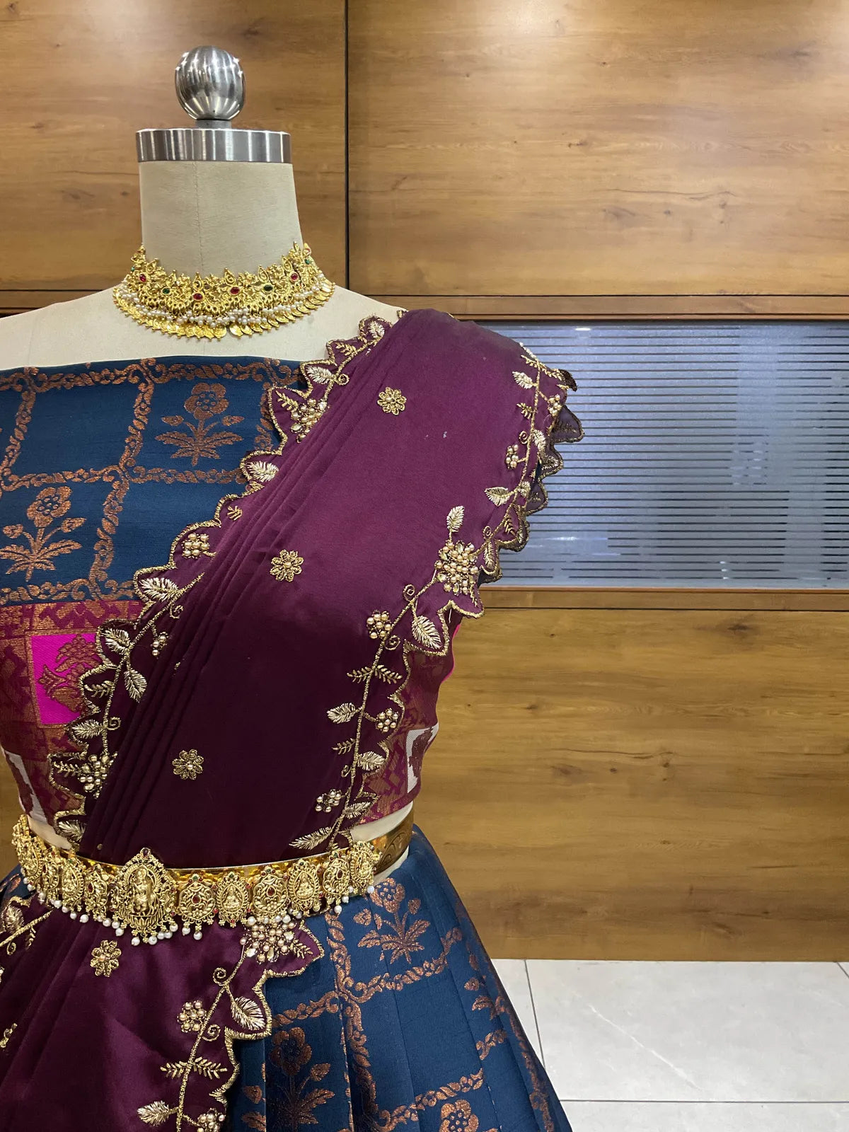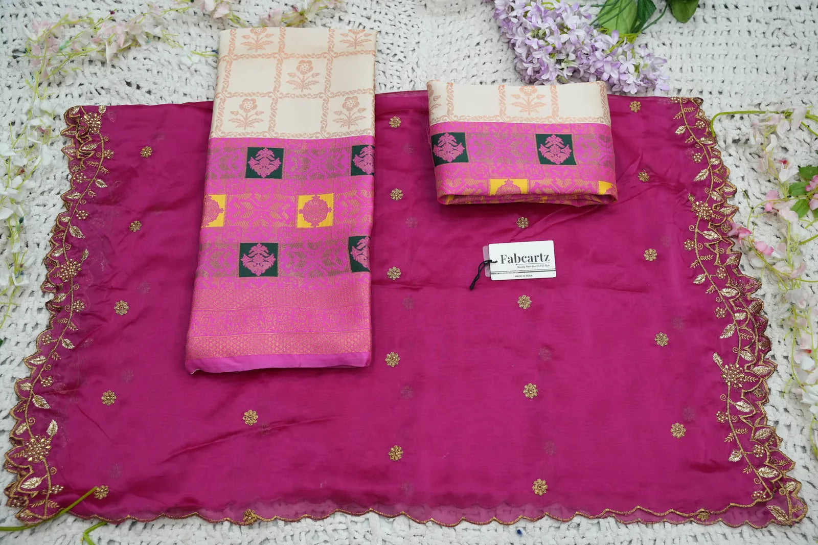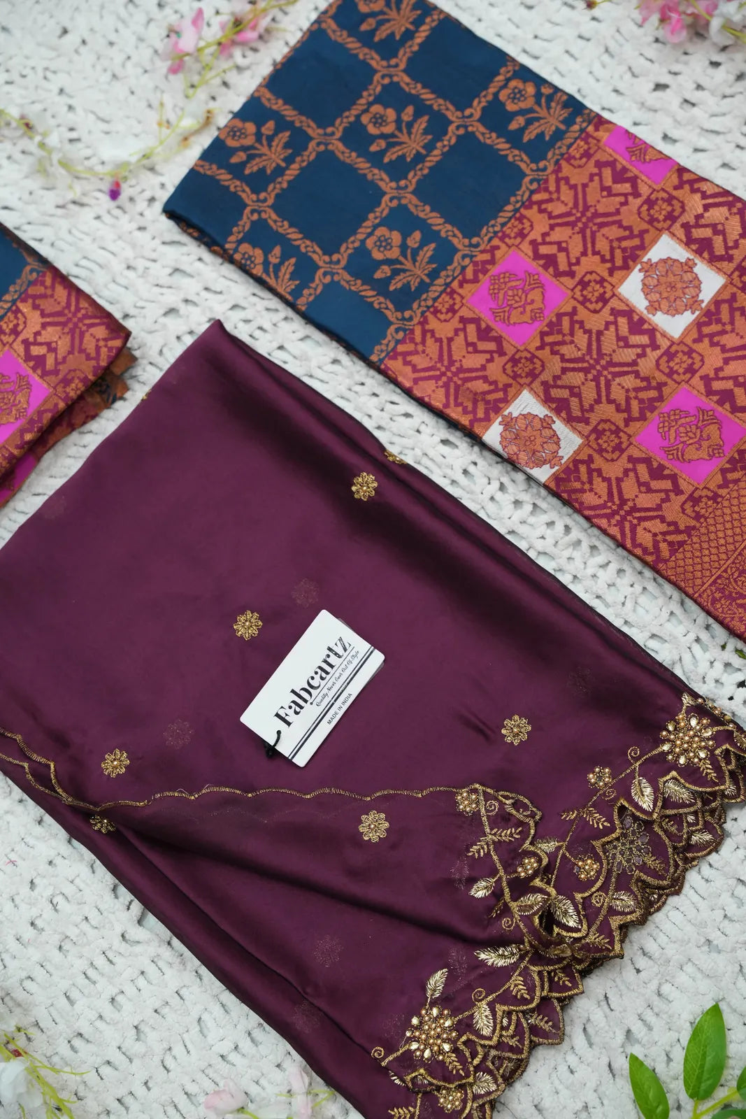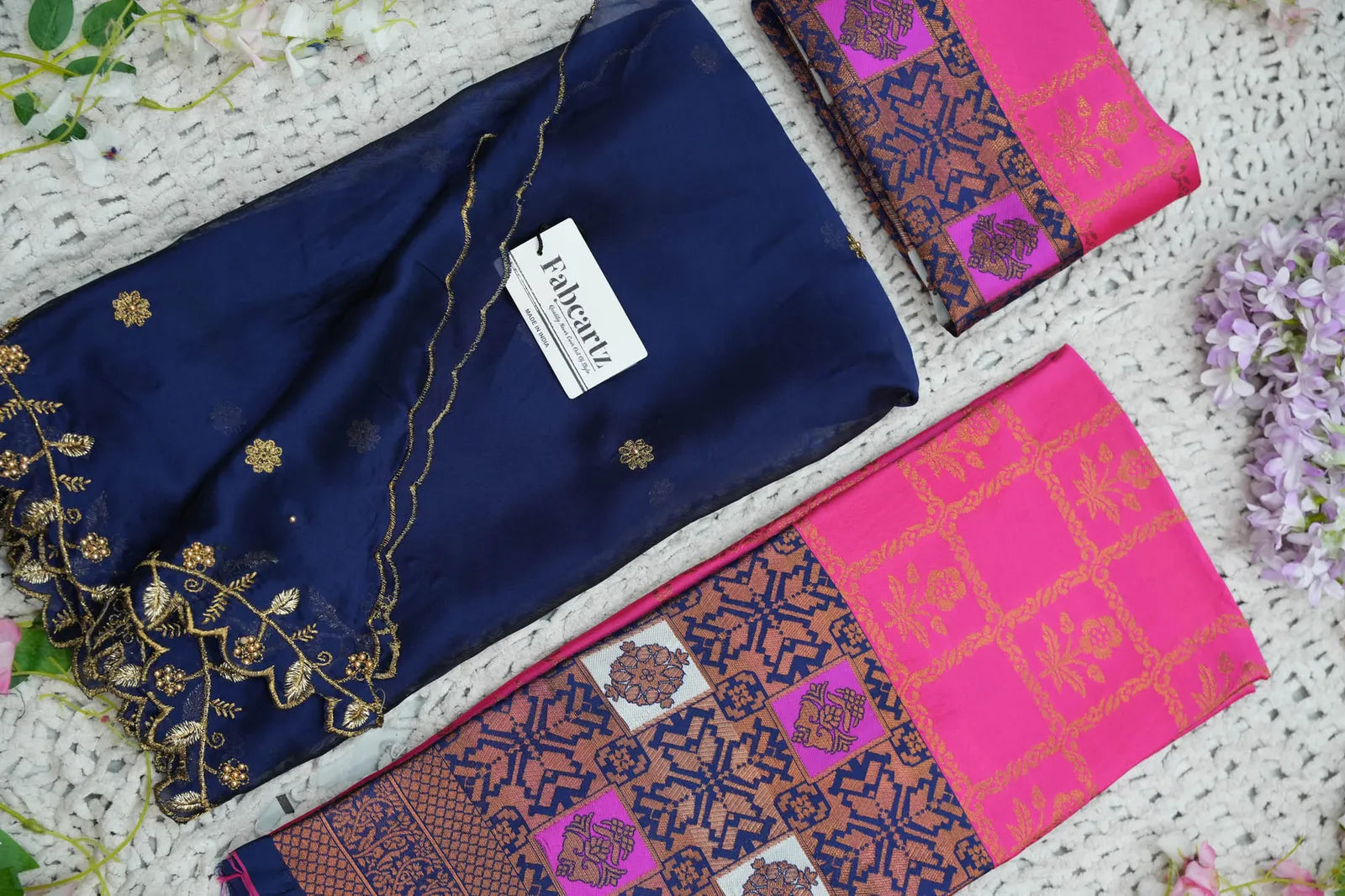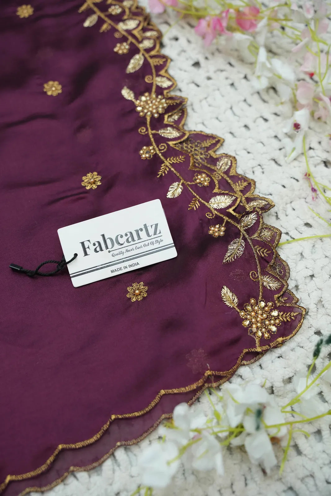 Crafted from Taffeta Satin (Litchi Silk) with intricate Zari work, offering a rich and elegant look.