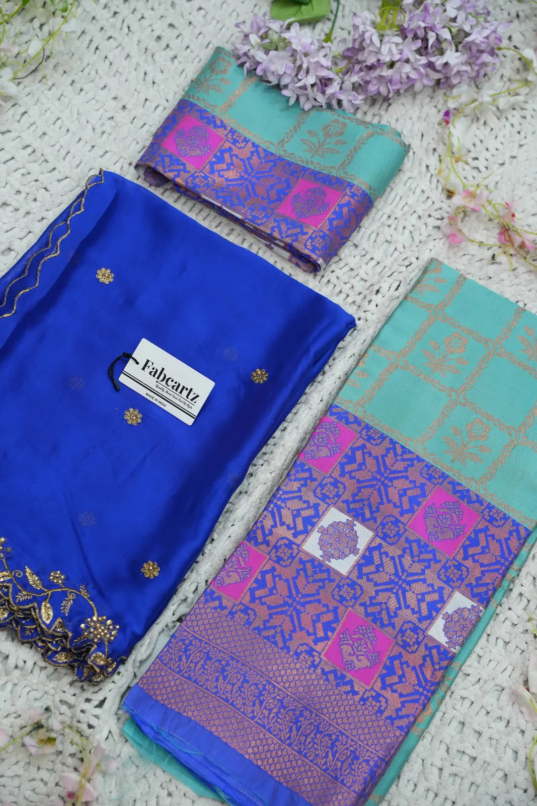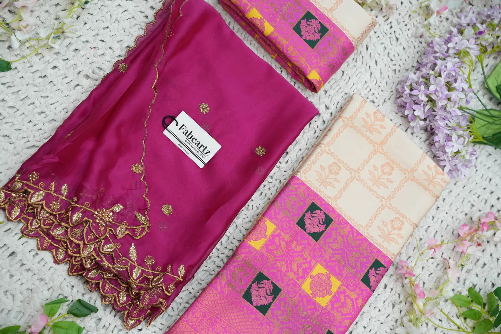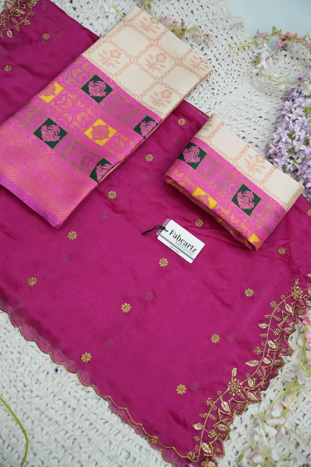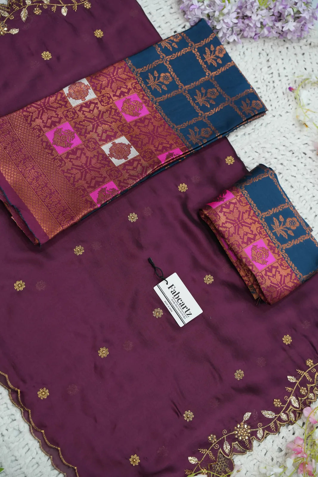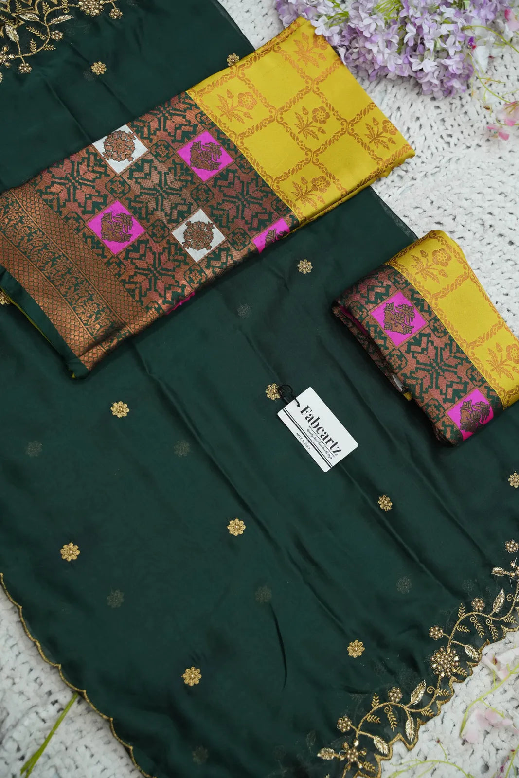 Crafted from Taffeta Satin (Litchi Silk) with intricate Zari work, offering a rich and elegant look.