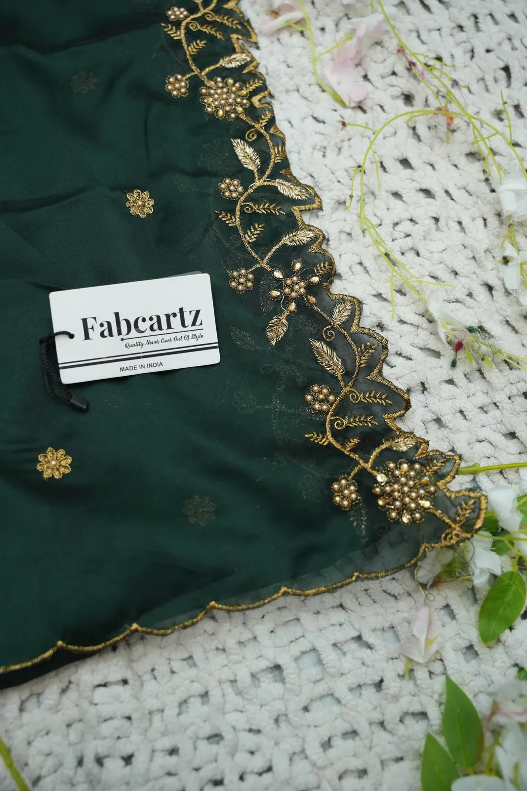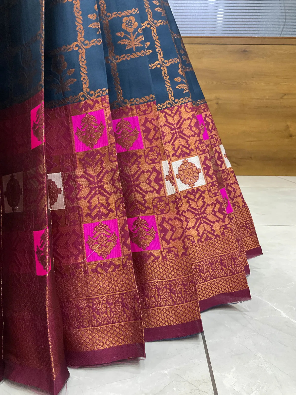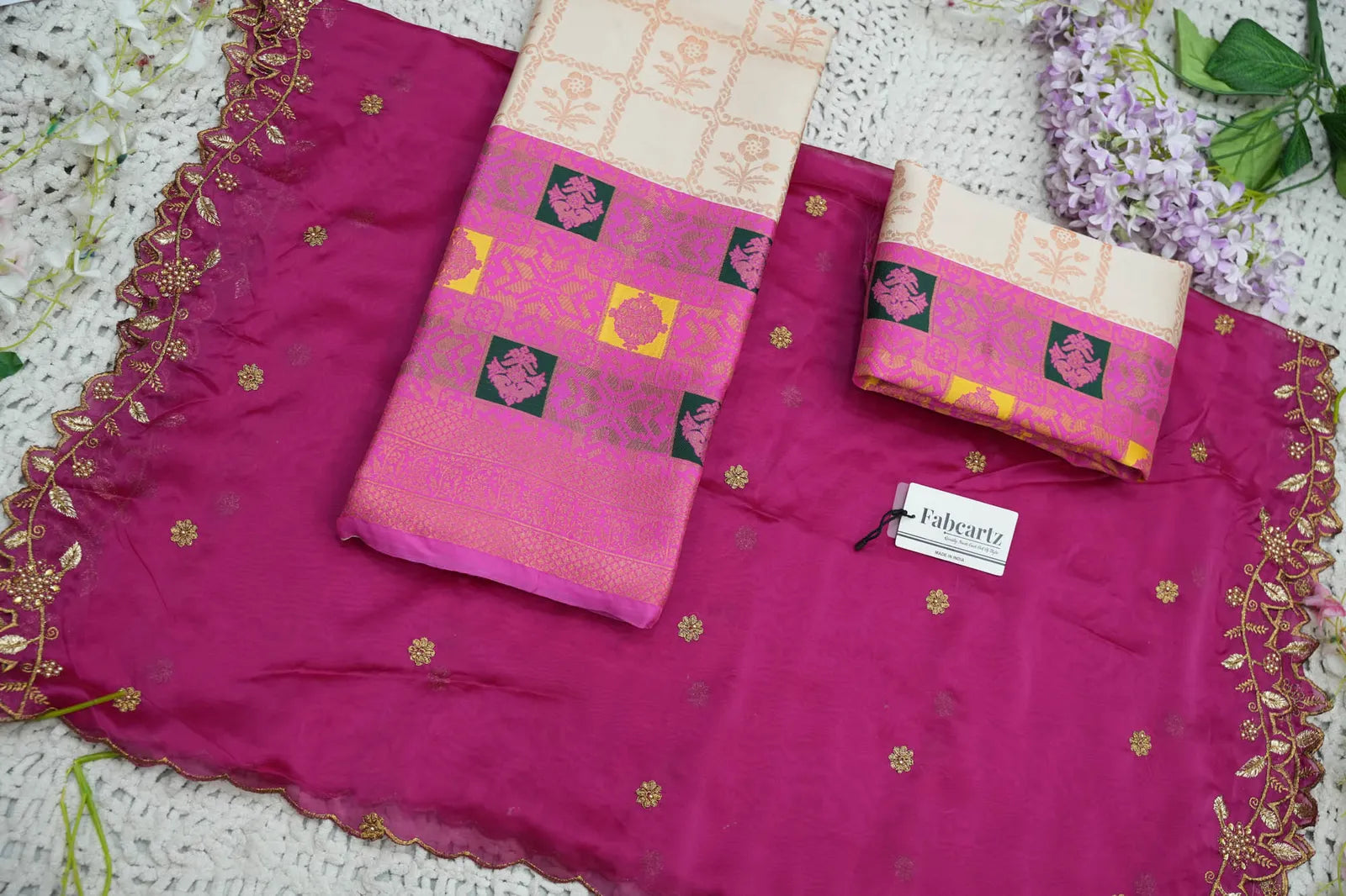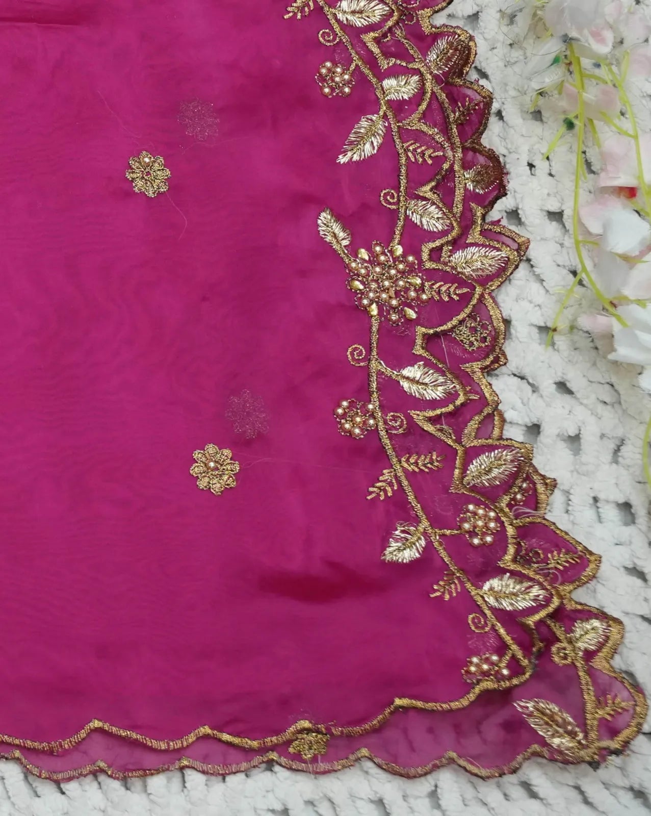Crafted from Taffeta Satin (Litchi Silk) with intricate Zari work, offering a rich and elegant look.