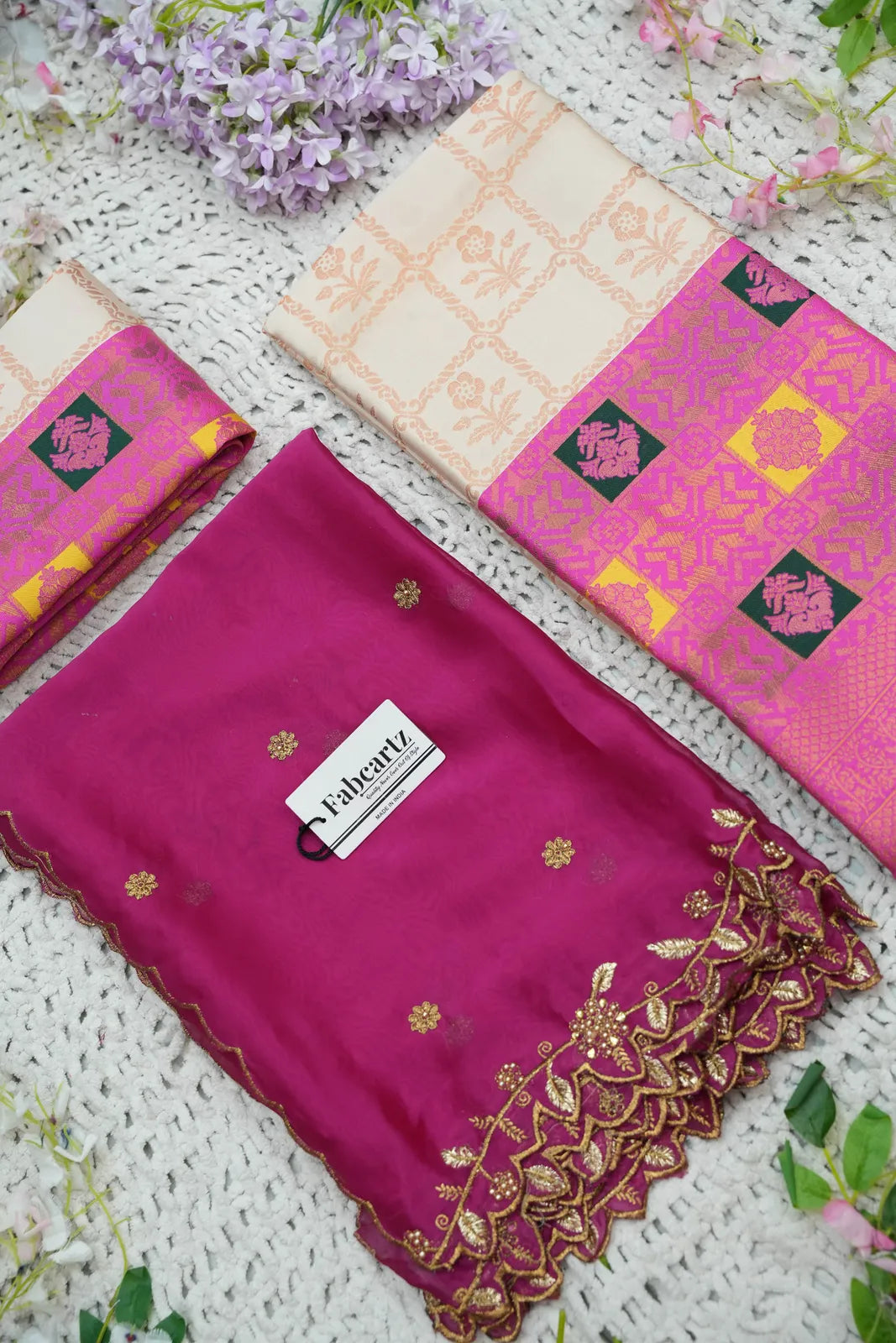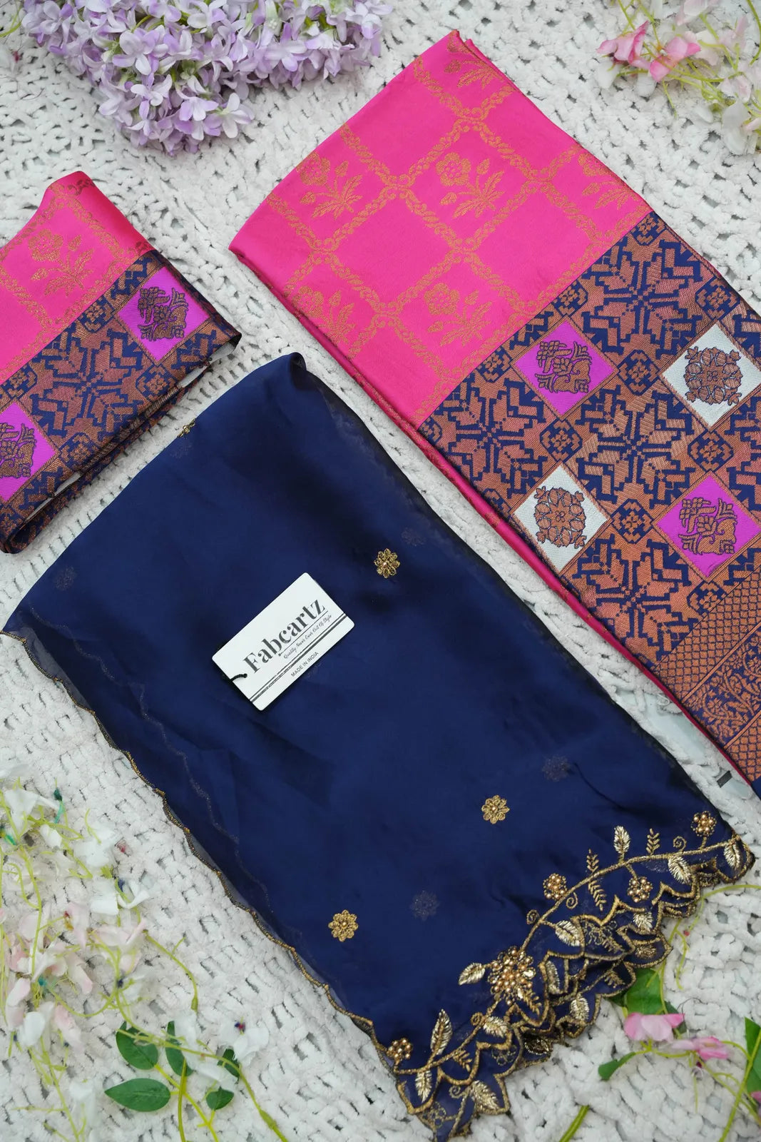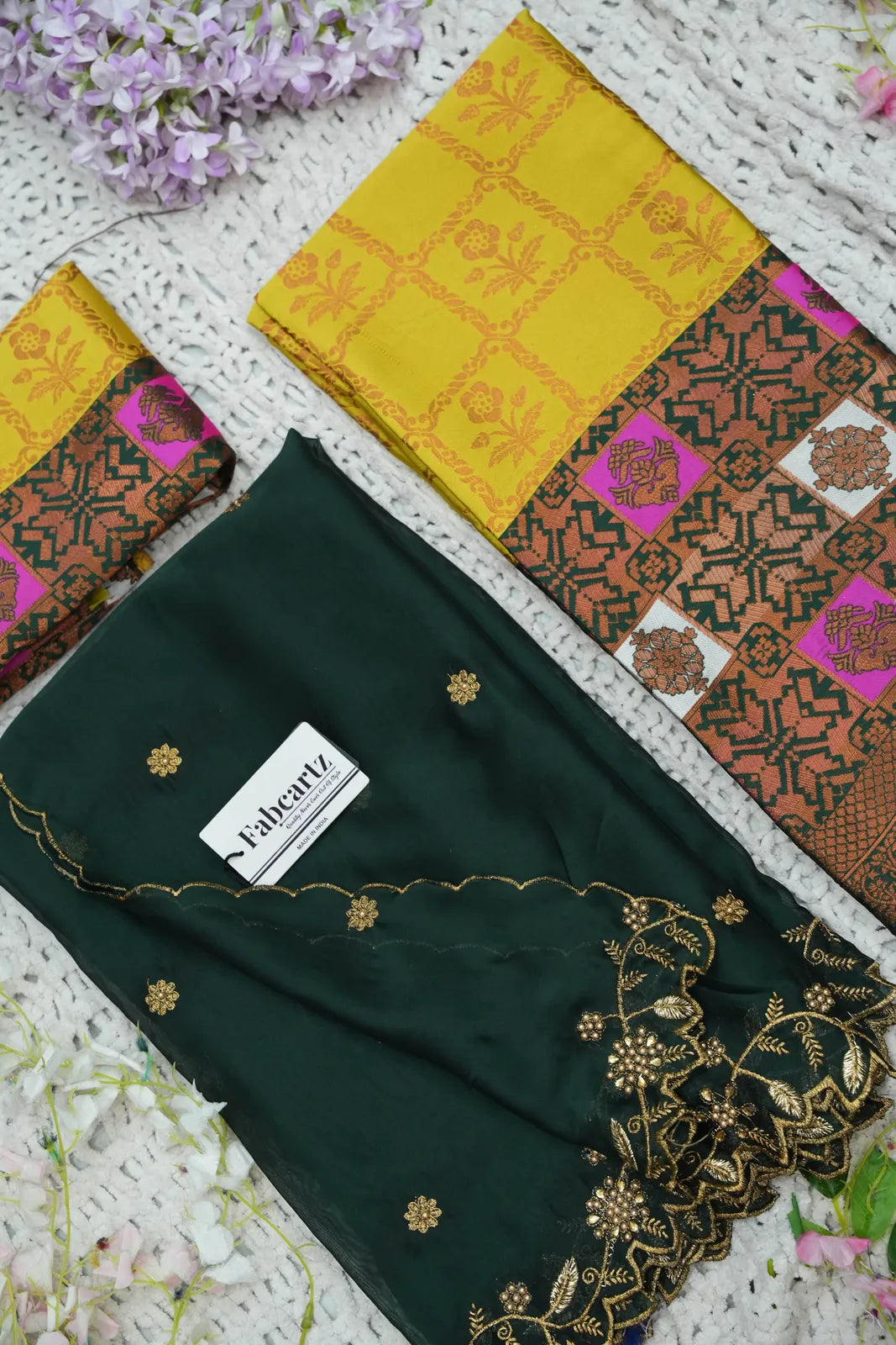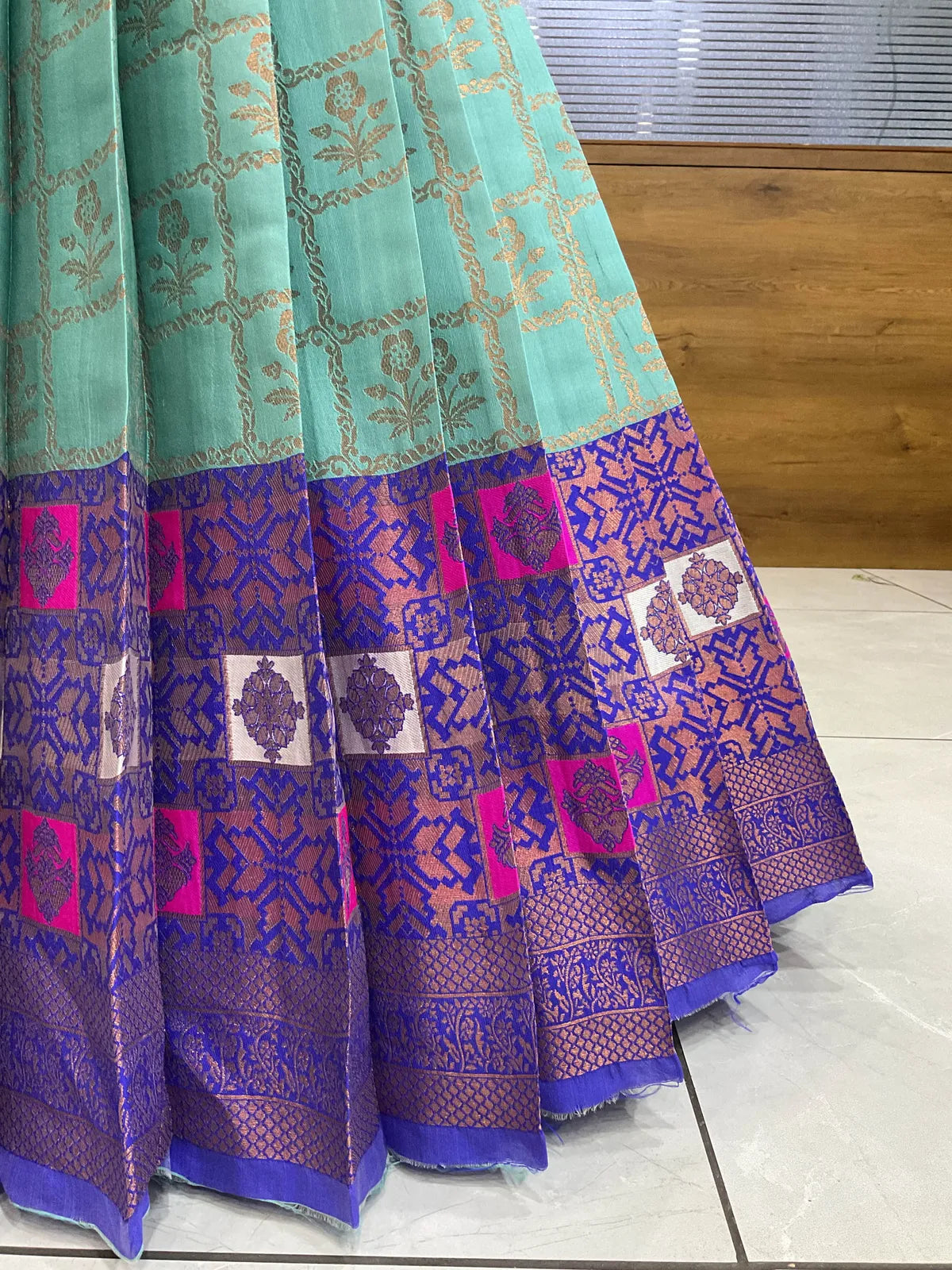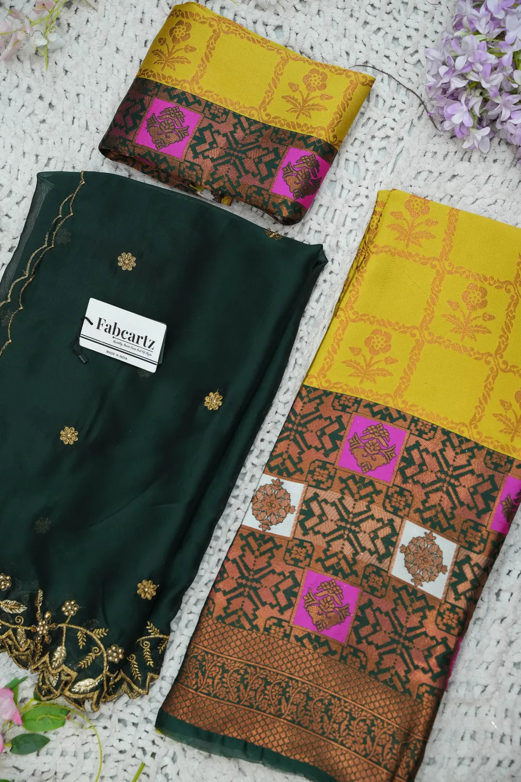 Crafted from Taffeta Satin (Litchi Silk) with intricate Zari work, offering a rich and elegant look.