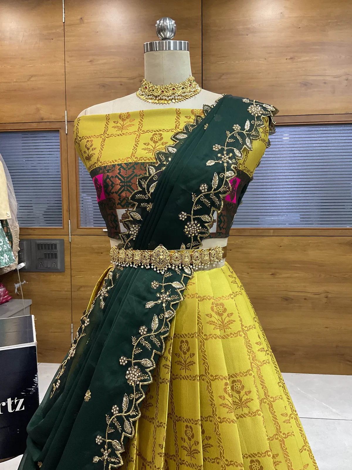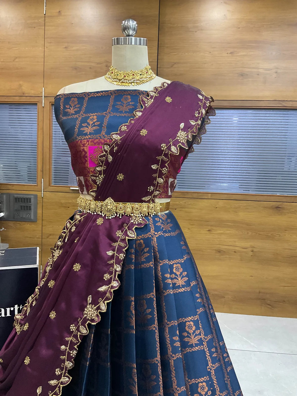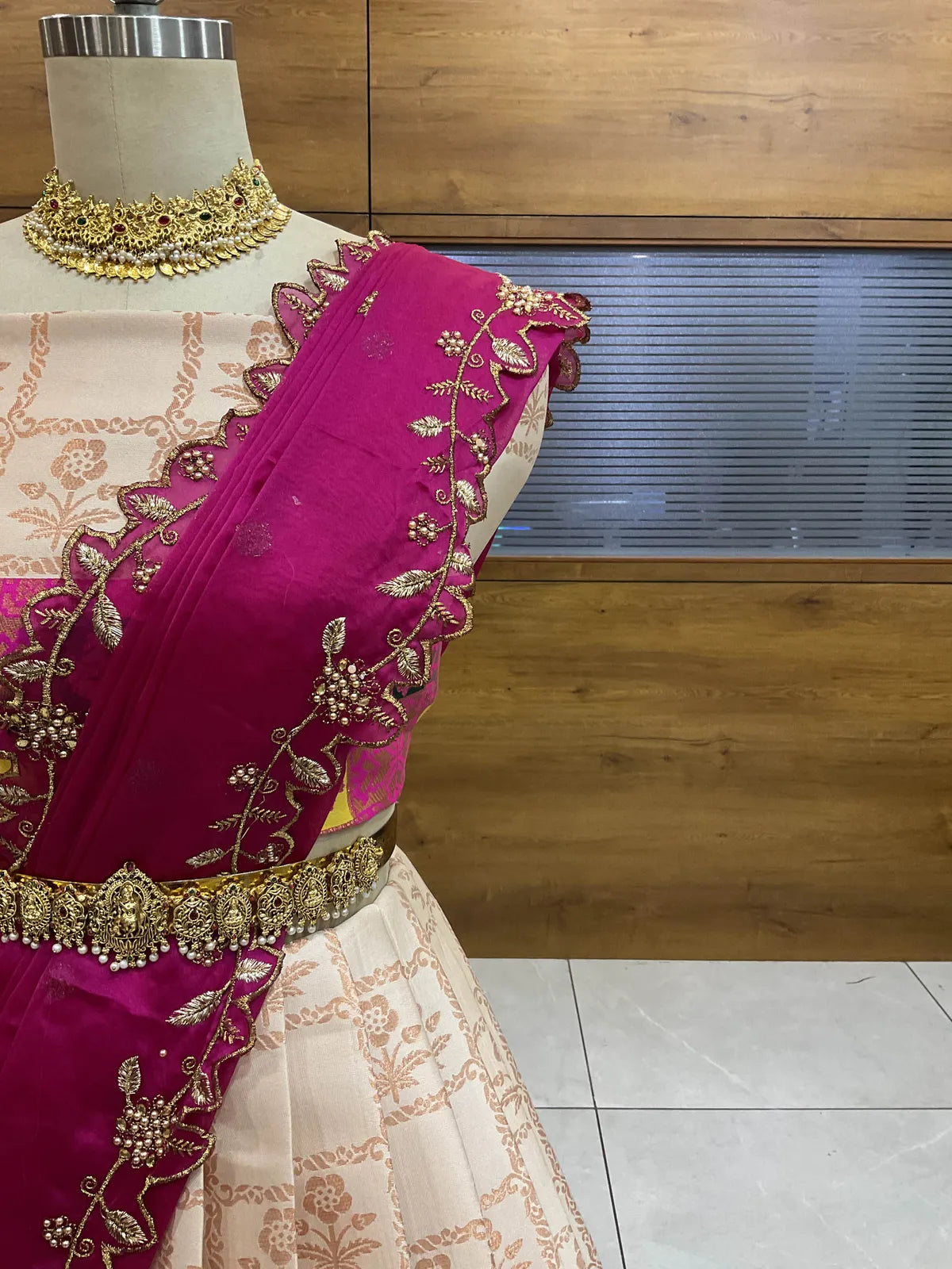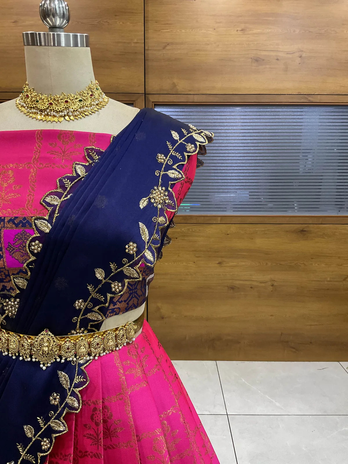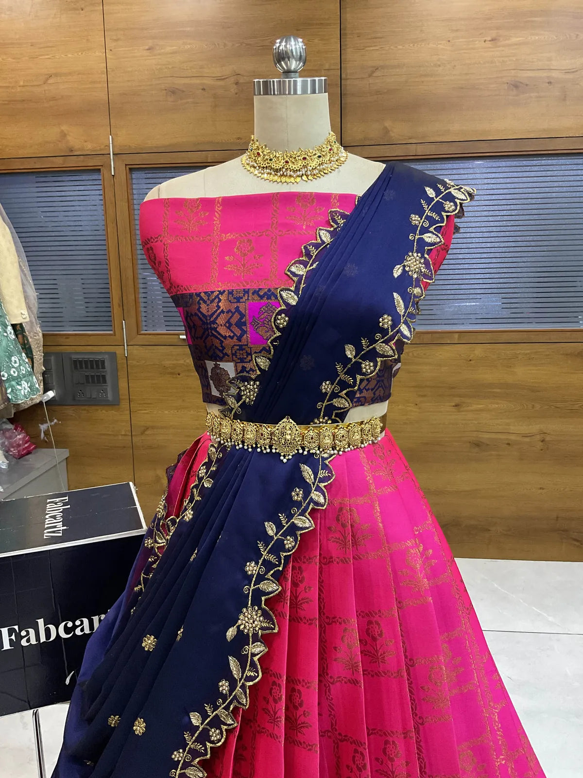 (ButtaBomma) South Indian Festival Traditional Half Saree with Embroidered Blouse & Dupatta