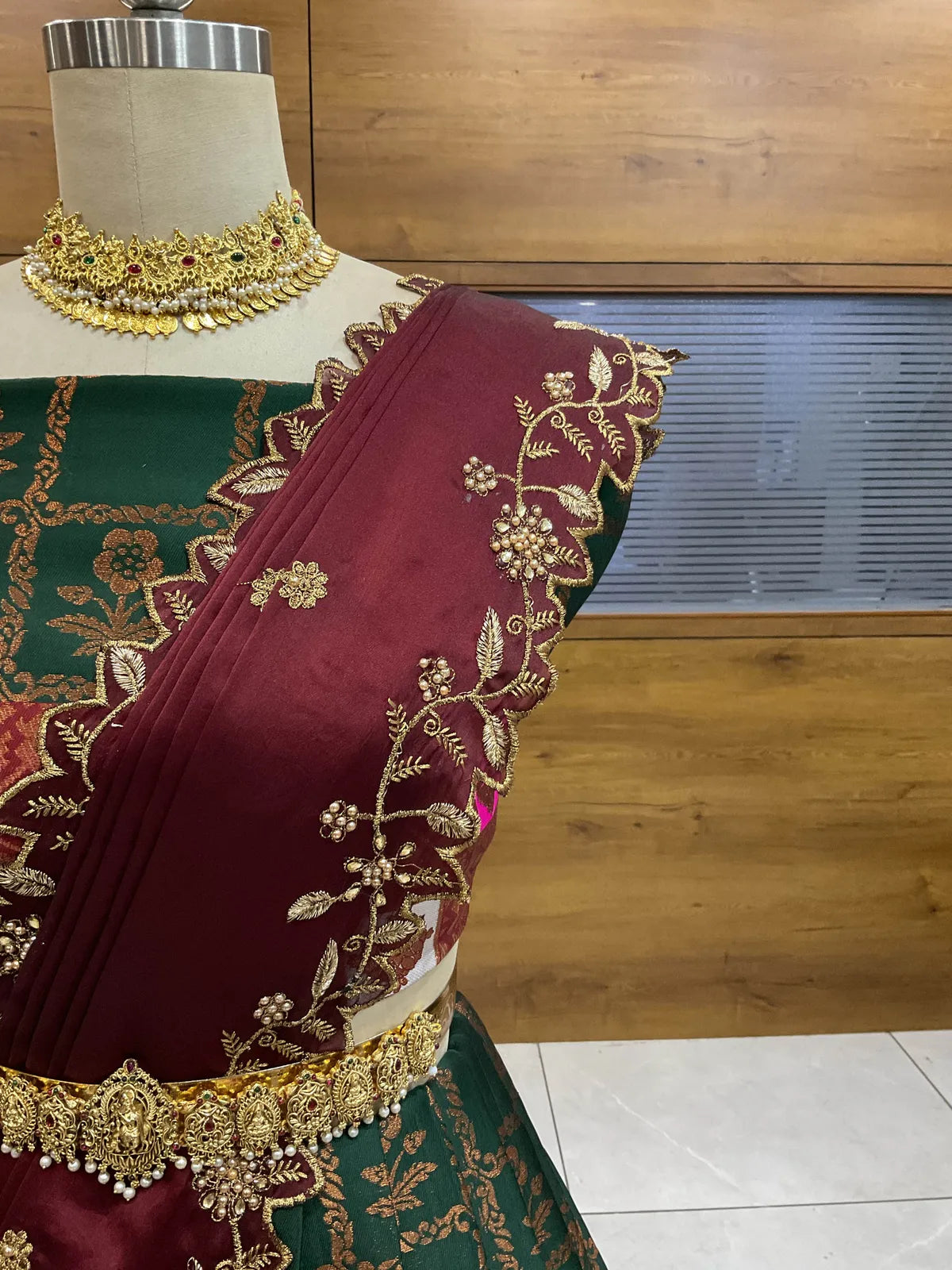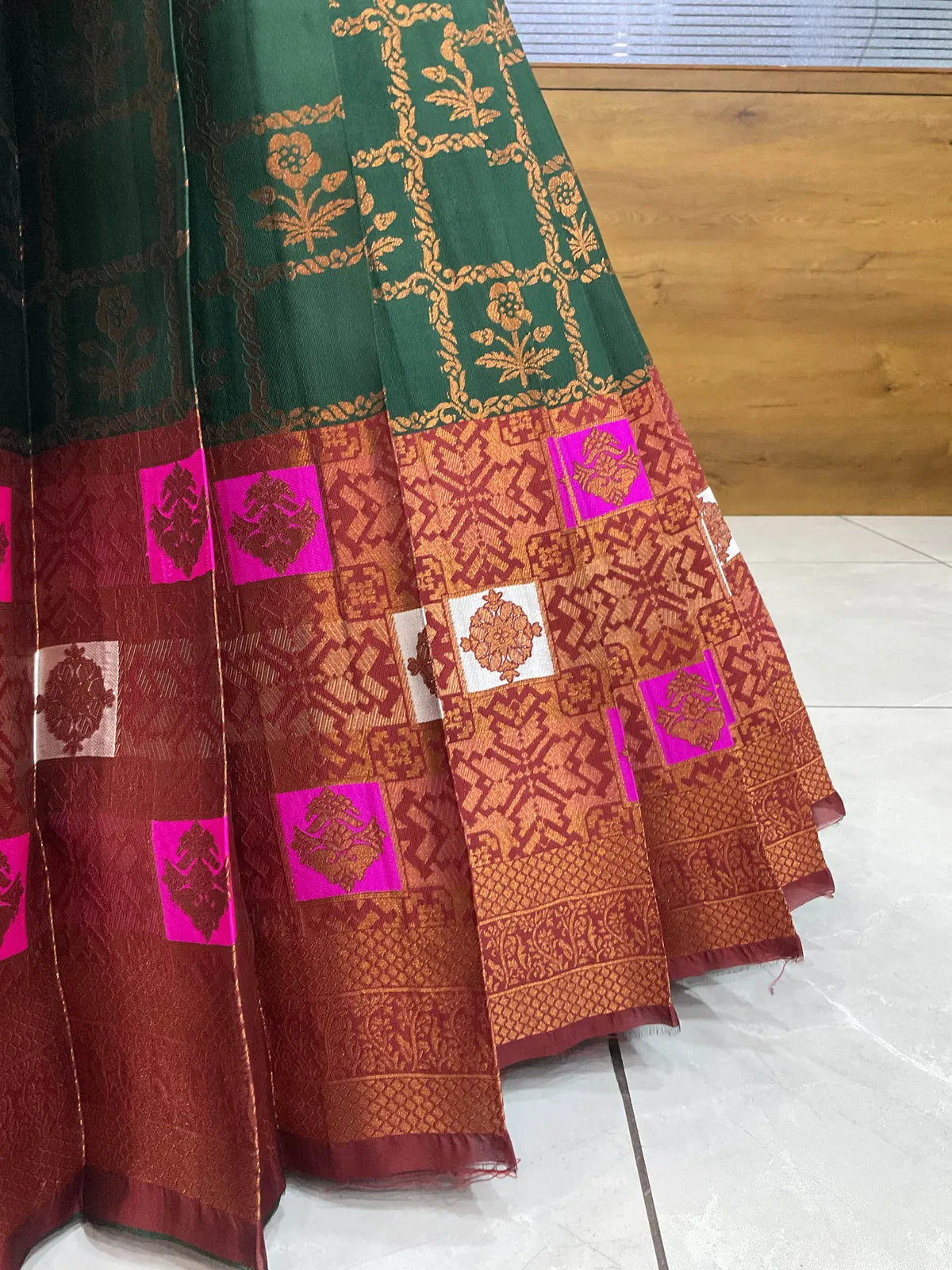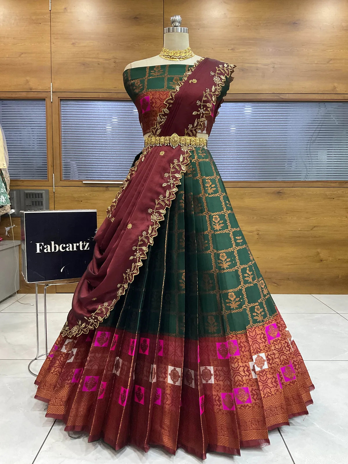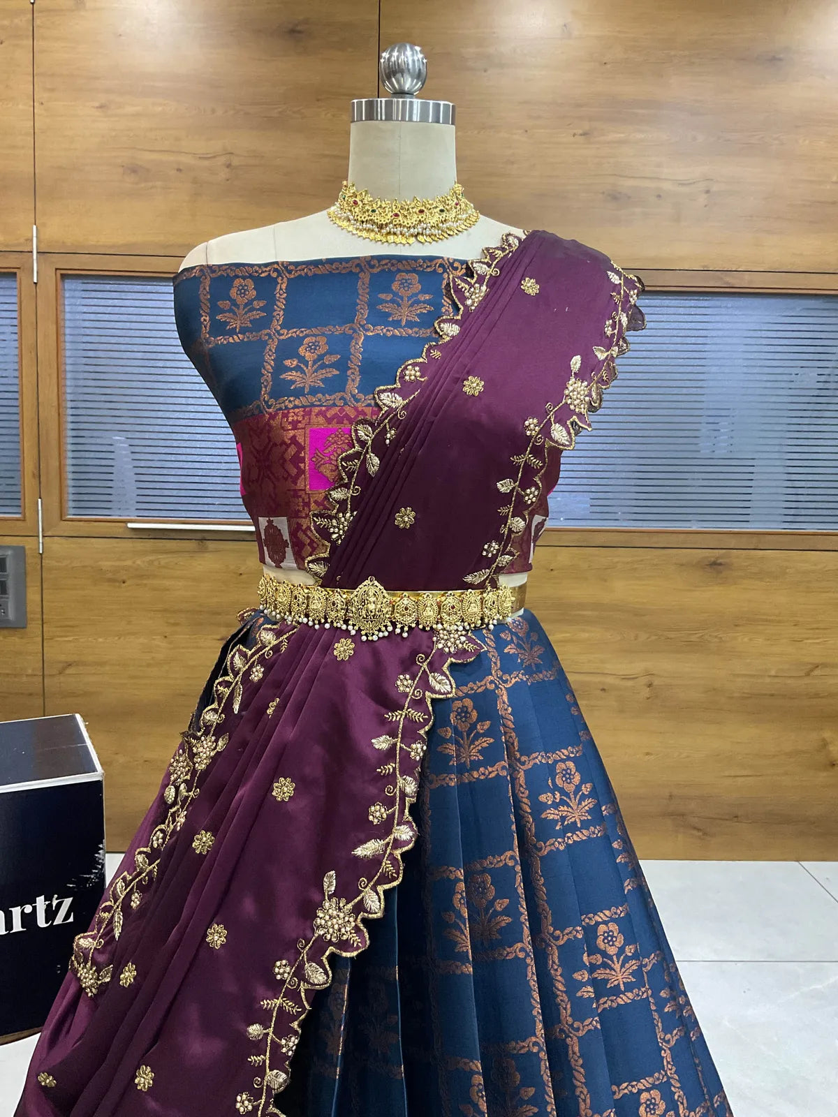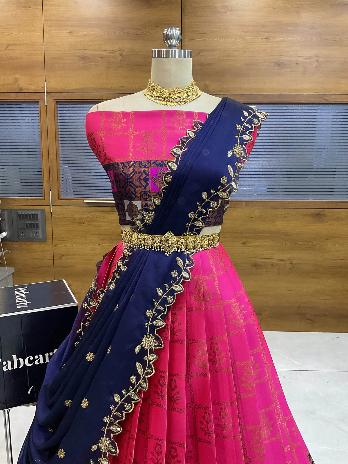(ButtaBomma) South Indian Festival Traditional Half Saree with Embroidered Blouse & Dupatta