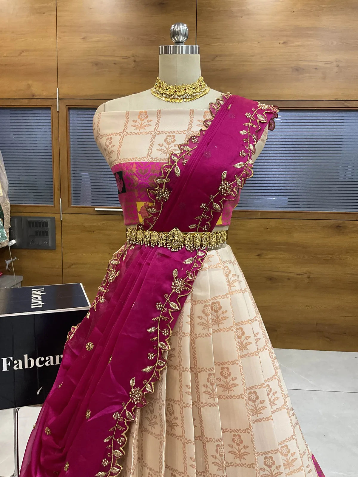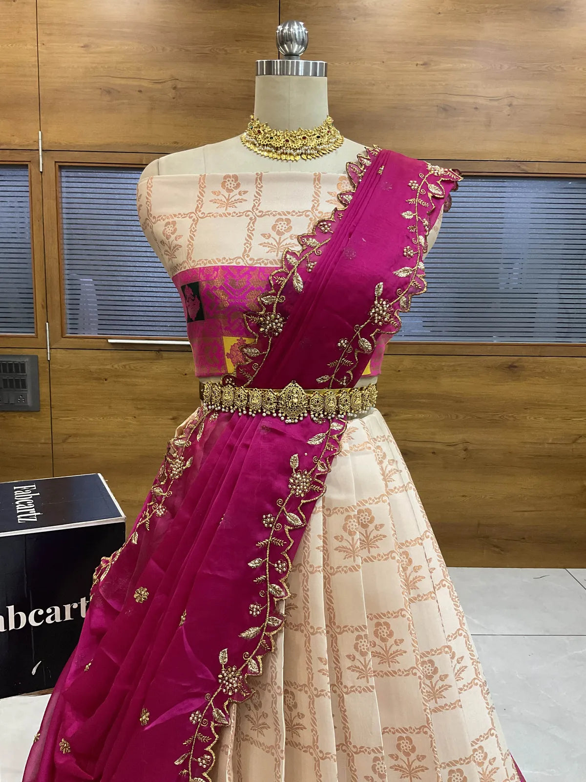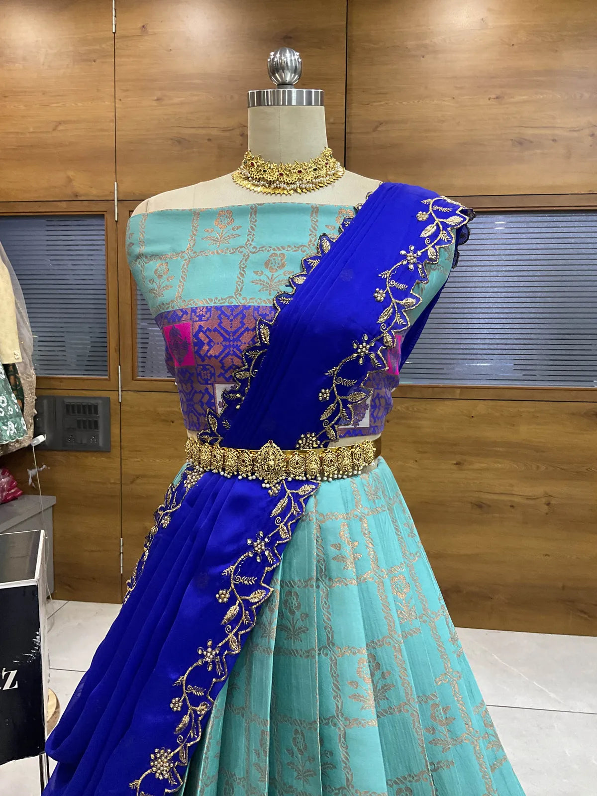 (Adhira) South Indian Festival Traditional Half Saree with Embroidered Blouse & Dupatta
