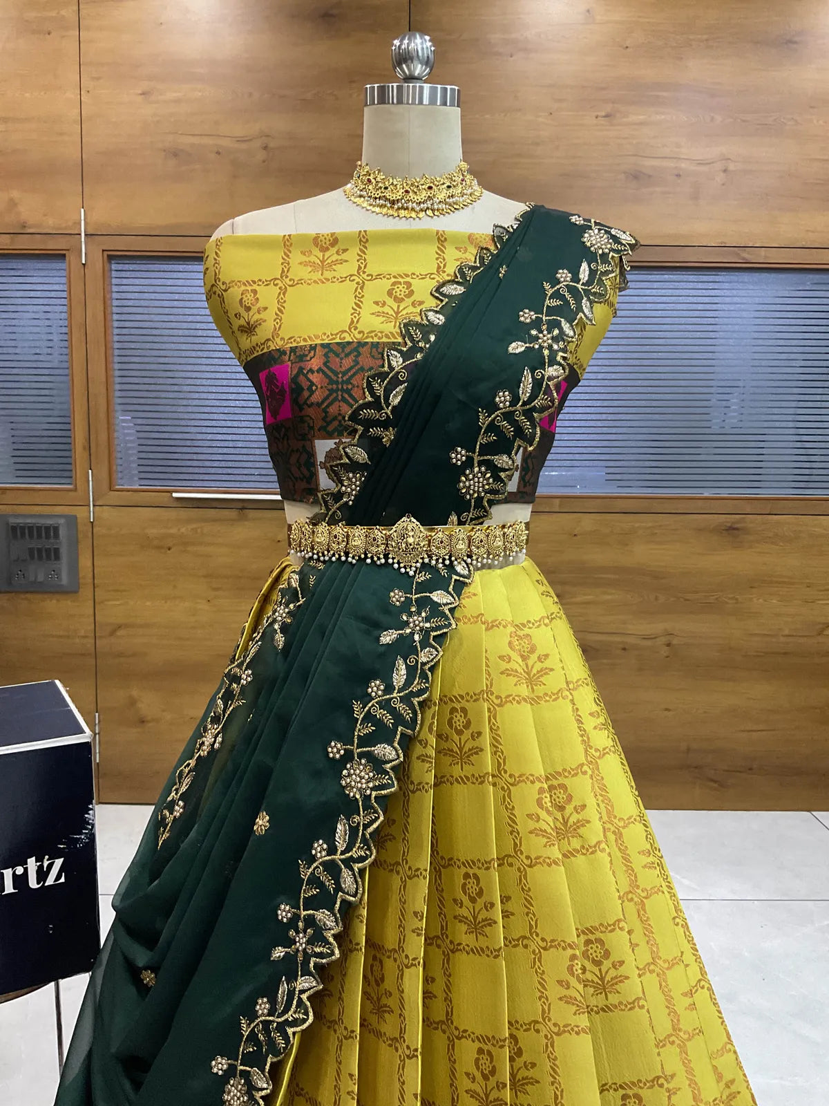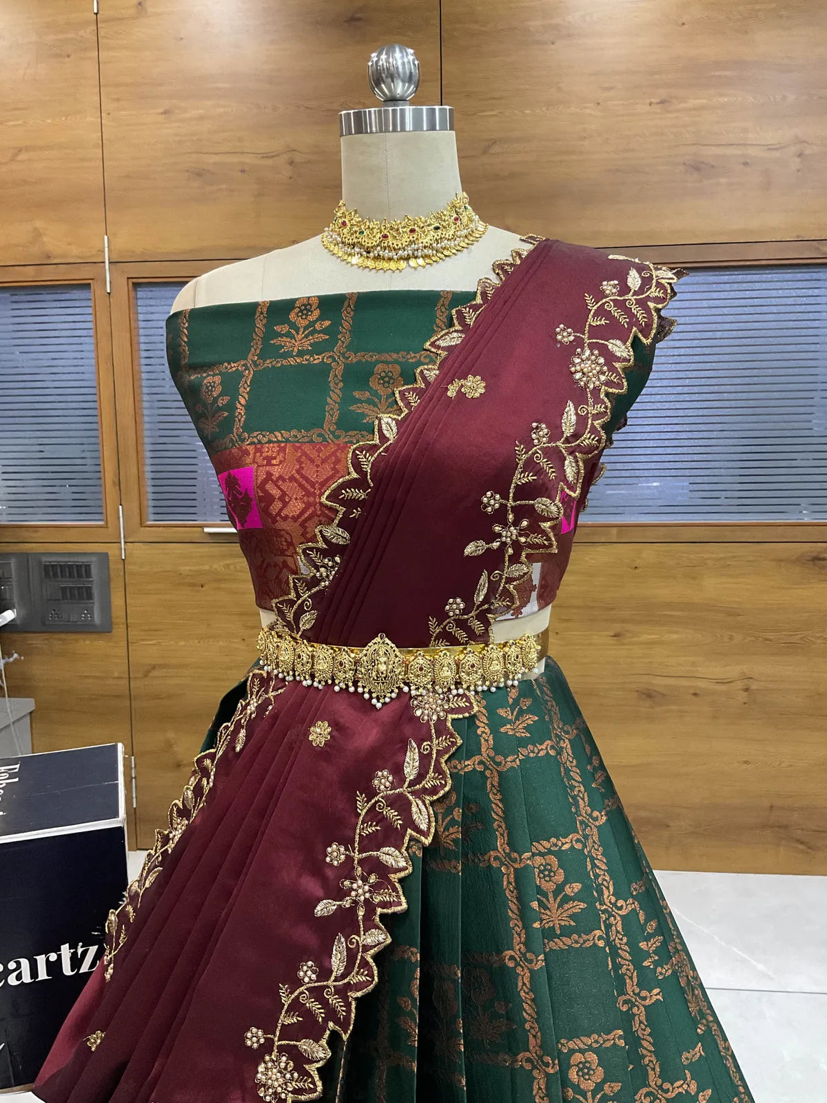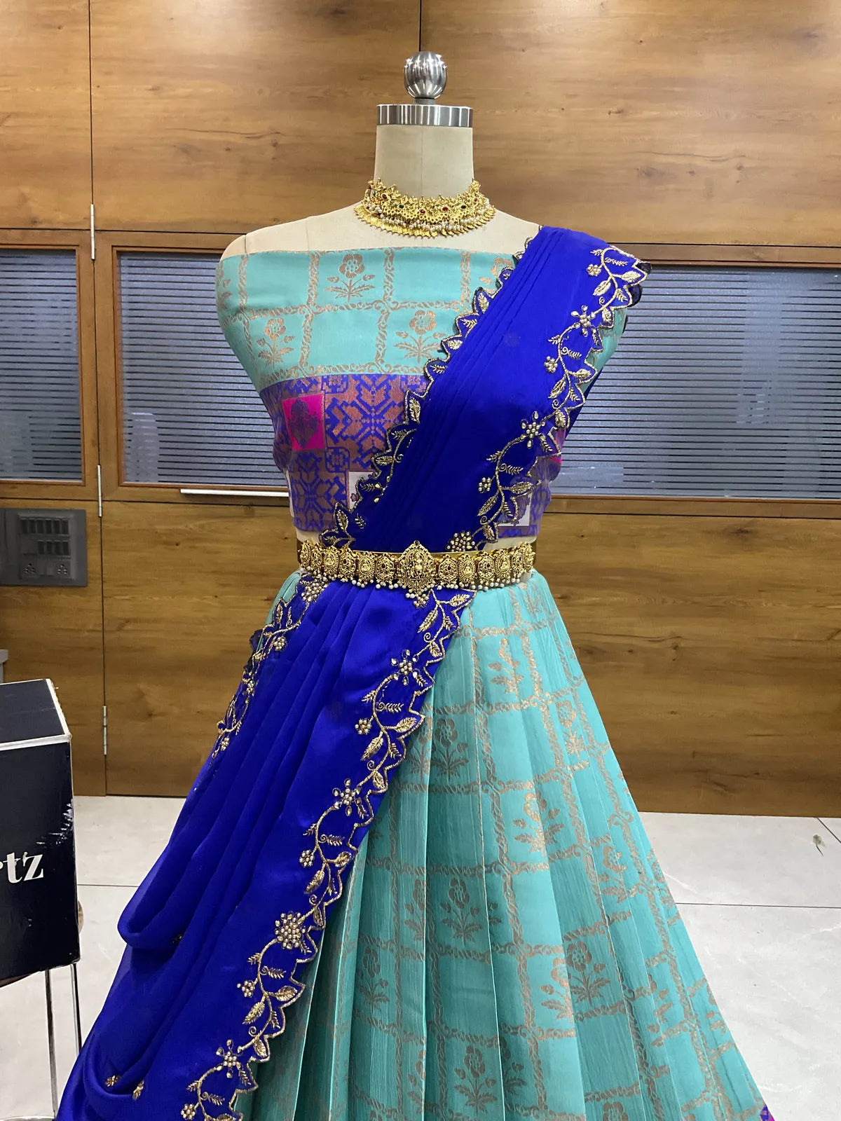 (Adhira) South Indian Festival Traditional Half Saree with Embroidered Blouse & Dupatta