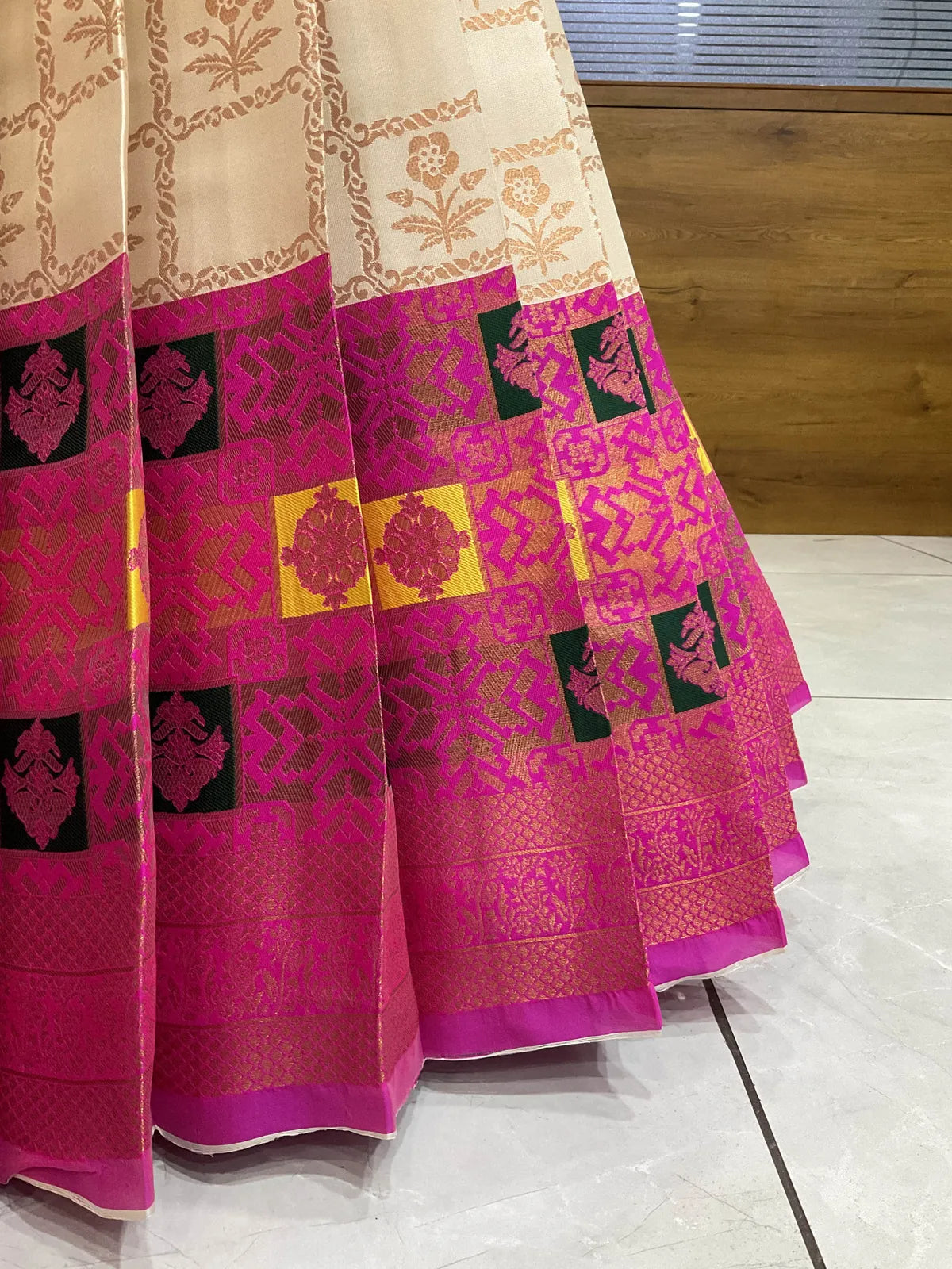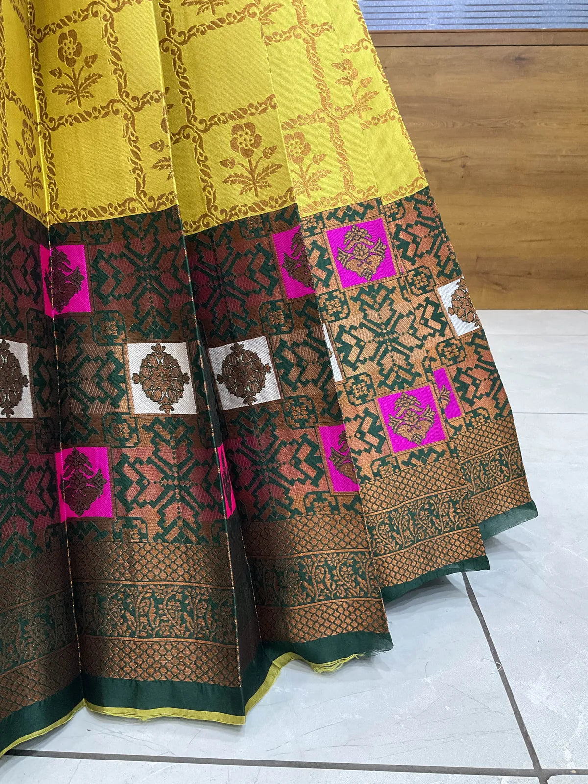 (MultiRango) South Indian Festival Traditional Half Saree with Embroidered Blouse & Dupatta