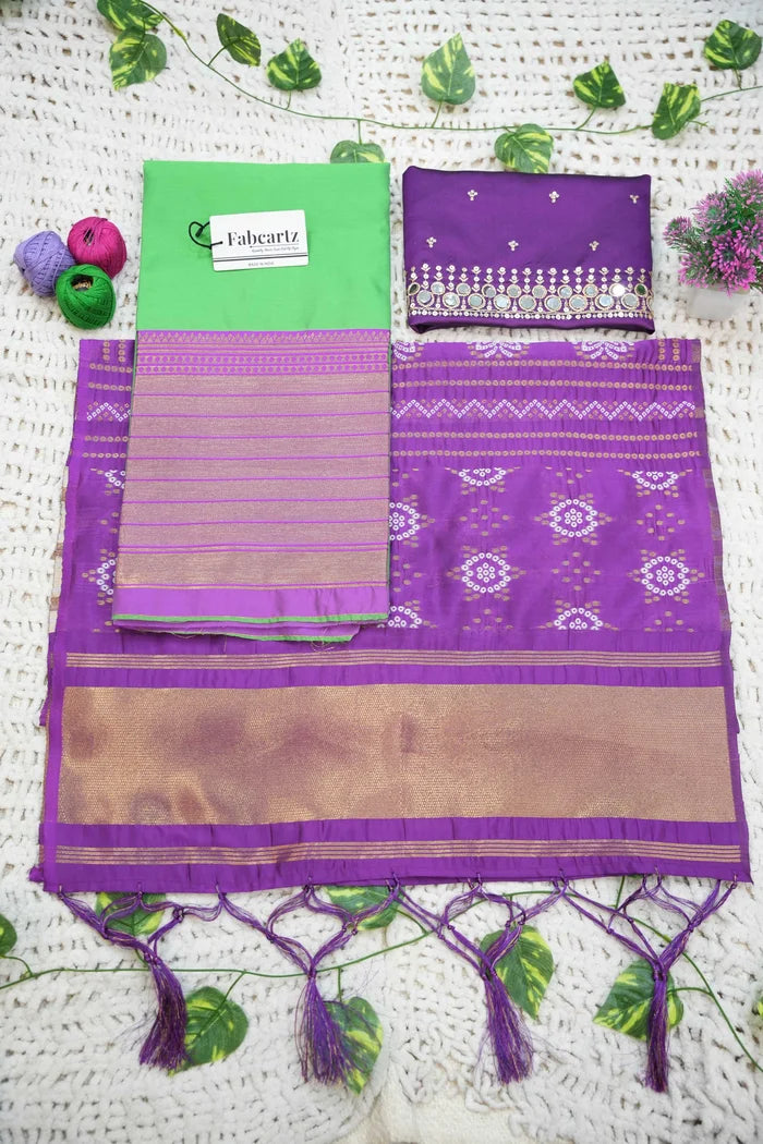 (ButtaBomma) South Indian Festival Traditional Half Saree with Embroidered Blouse & Dupatta