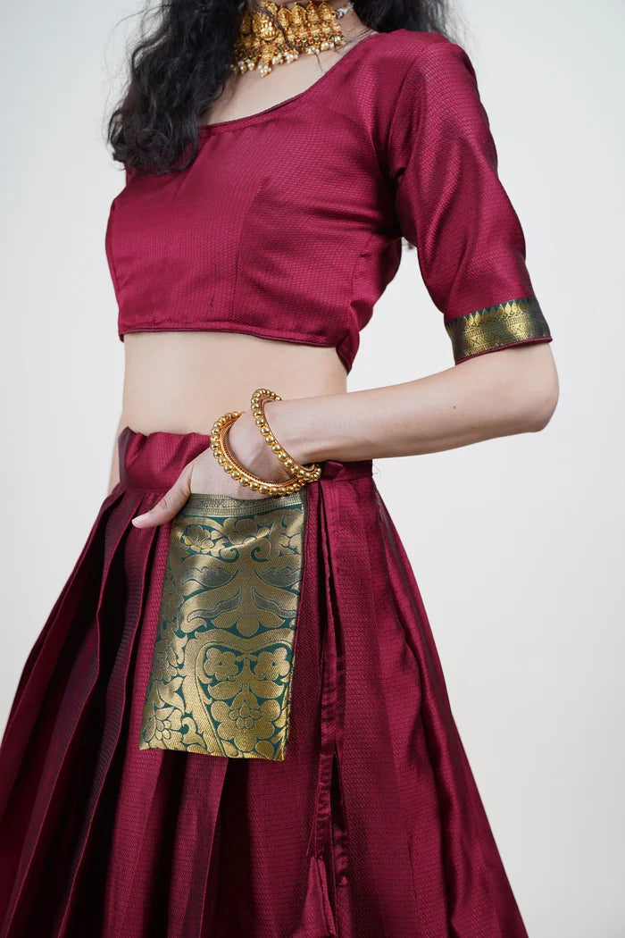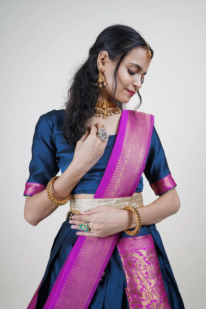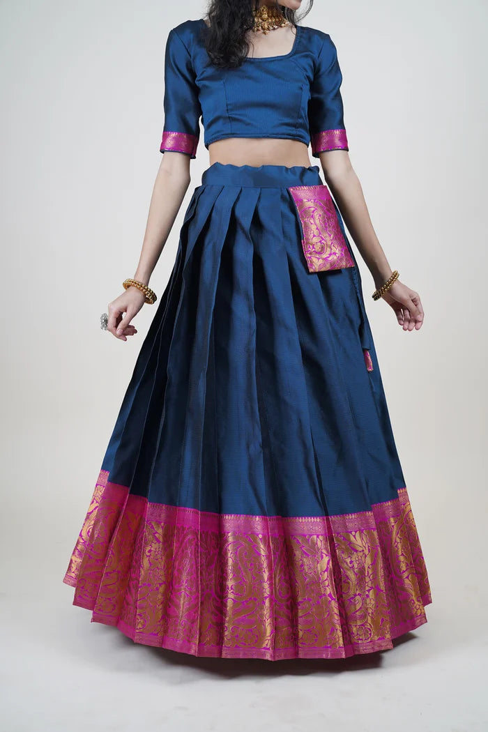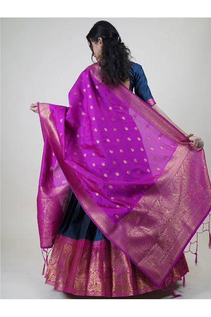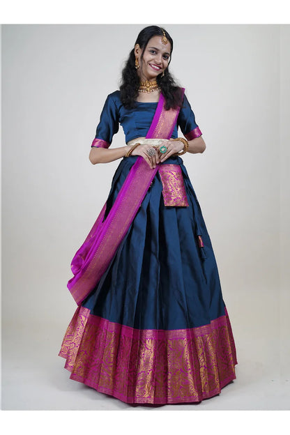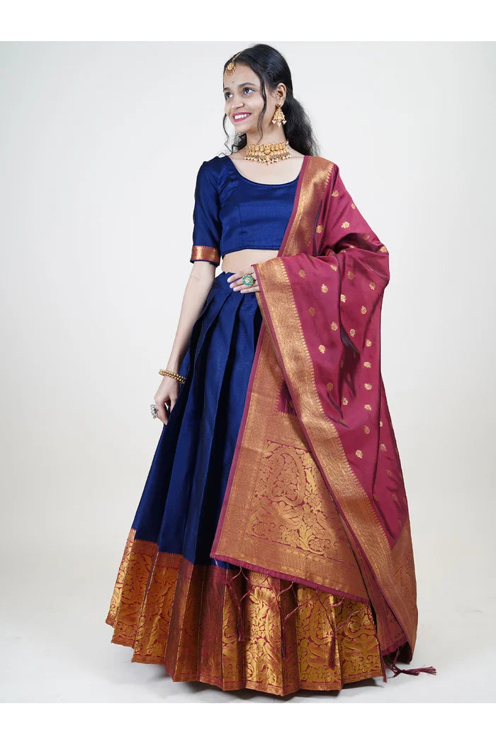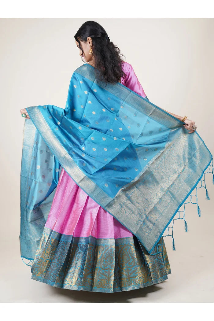 (ButtaBomma) South Indian Festival Traditional Half Saree with Embroidered Blouse & Dupatta