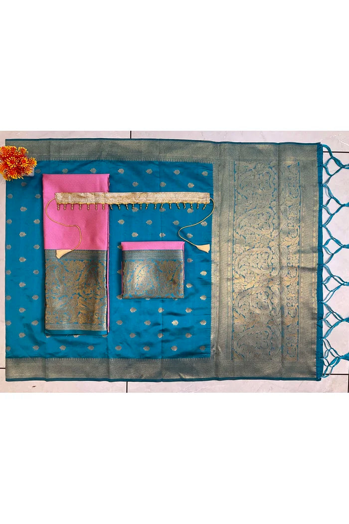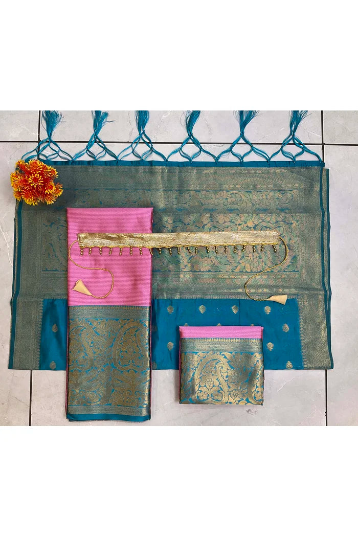 Crafted from Taffeta Satin (Litchi Silk) with intricate Zari work, offering a rich and elegant look.