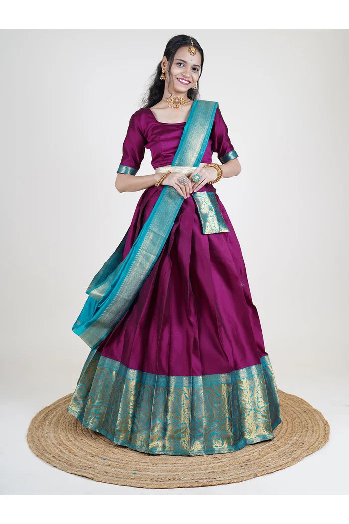 (Adhira) South Indian Festival Traditional Half Saree with Embroidered Blouse & Dupatta