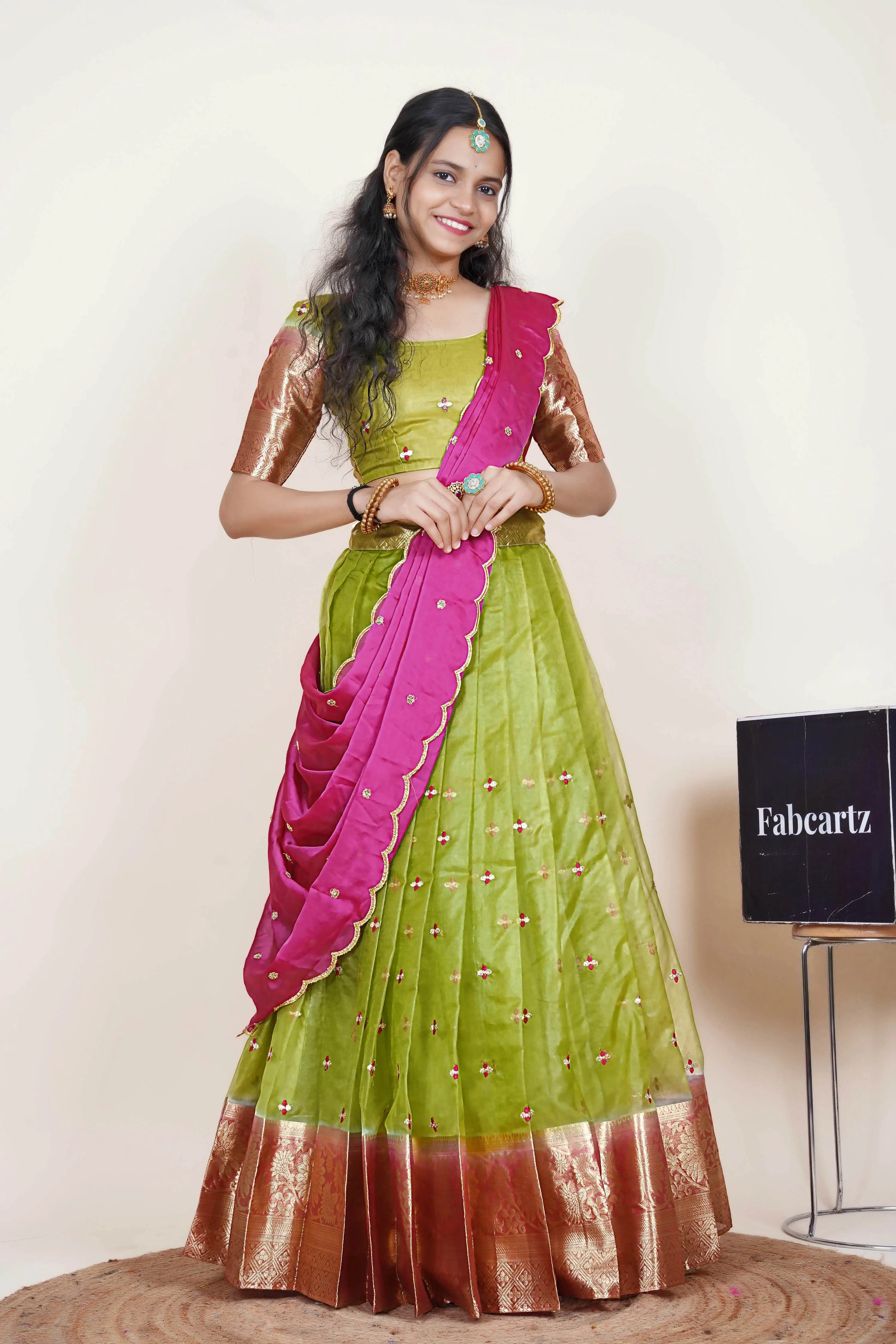 (Adhira) South Indian Festival Traditional Half Saree with Embroidered Blouse & Dupatta