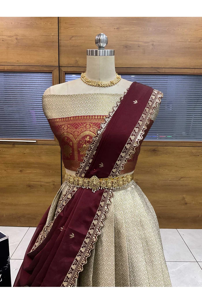 (Adhira) South Indian Festival Traditional Half Saree with Embroidered Blouse & Dupatta