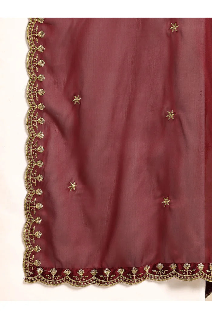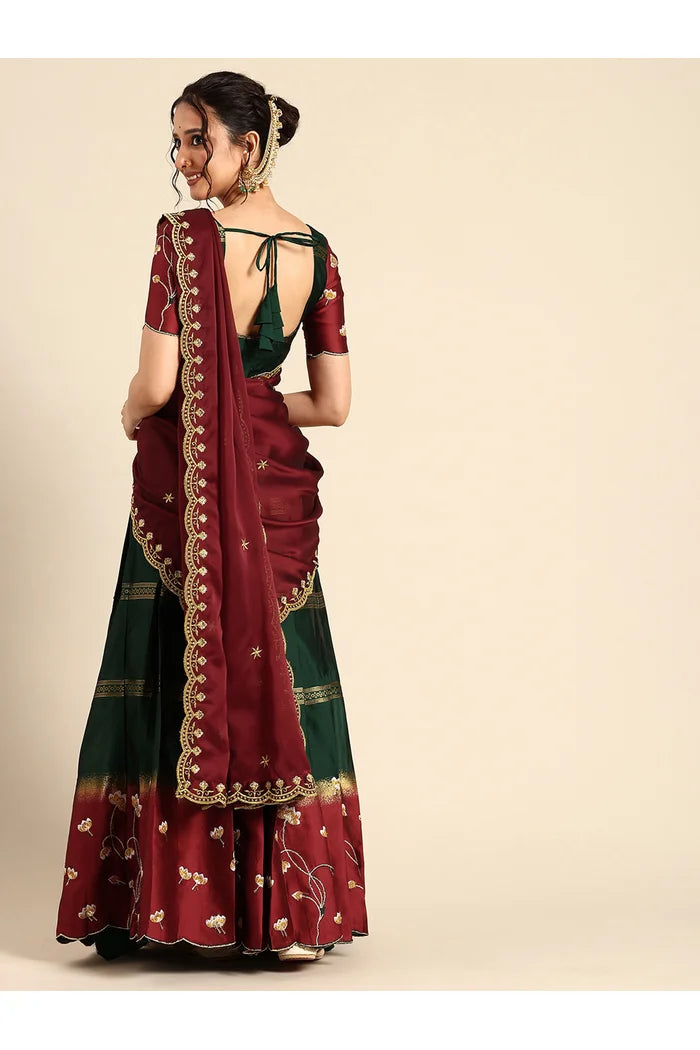 Crafted from Taffeta Satin (Litchi Silk) with intricate Zari work, offering a rich and elegant look.
