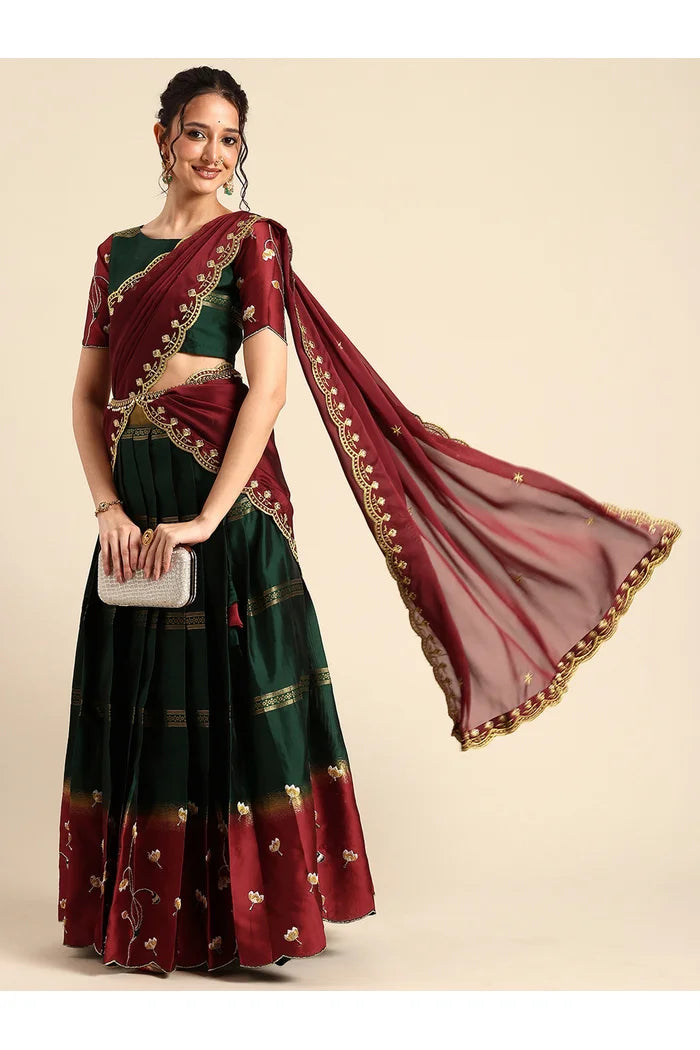 (Adhira) South Indian Festival Traditional Half Saree with Embroidered Blouse & Dupatta