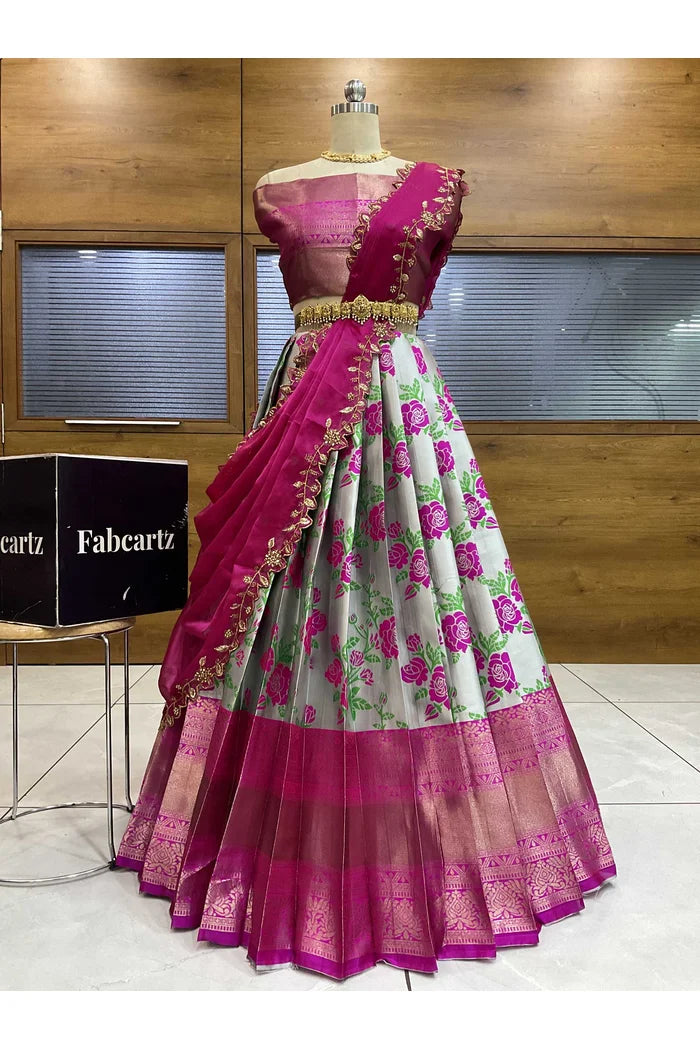 RoseRango Women's Woven Design zari work Half Saree with Embroidered Blouse and Dupatta