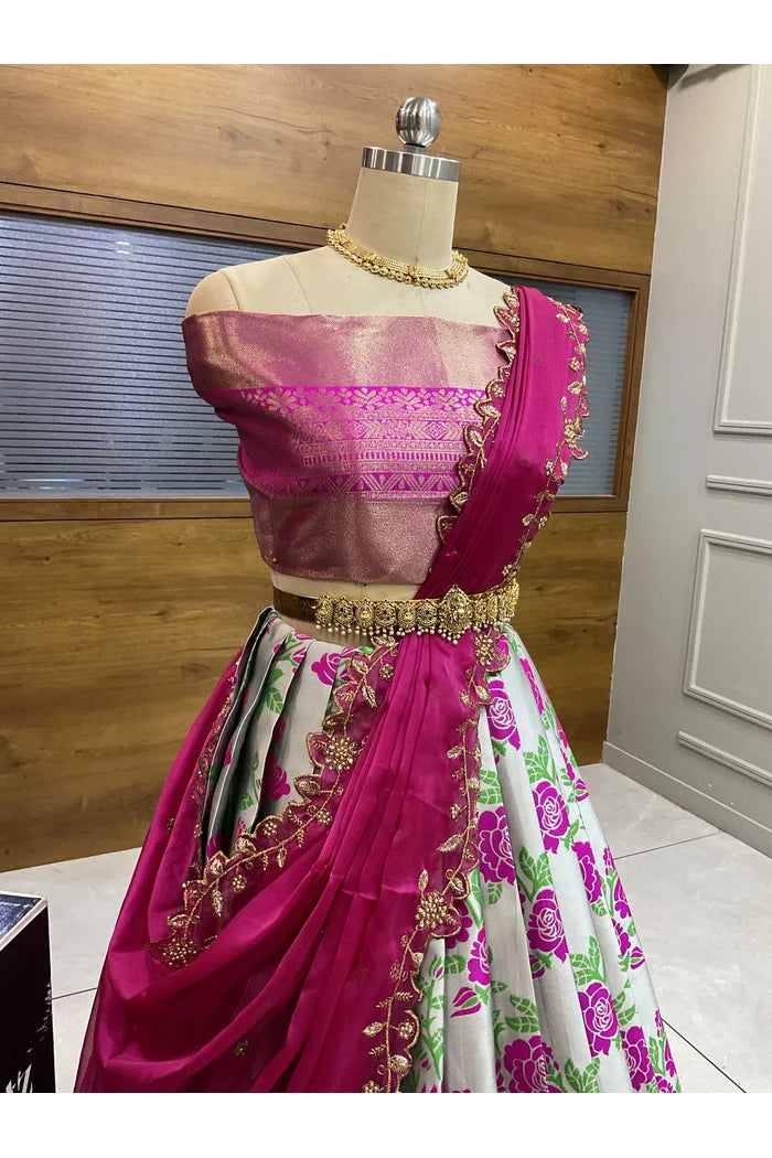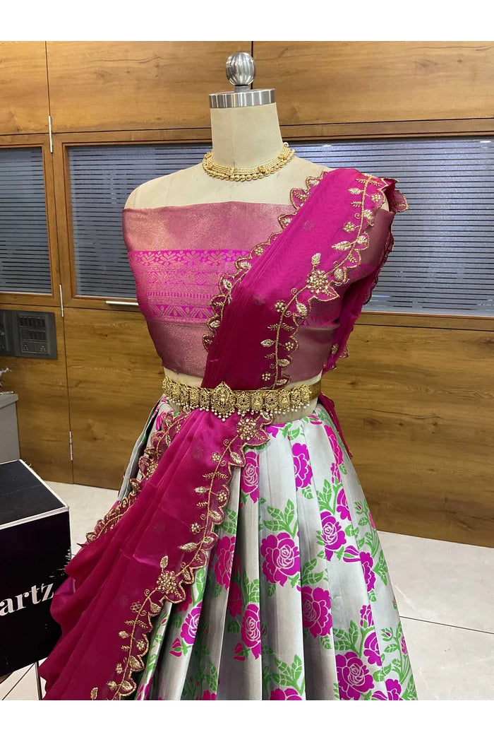 (ButtaBomma) South Indian Festival Traditional Half Saree with Embroidered Blouse & Dupatta