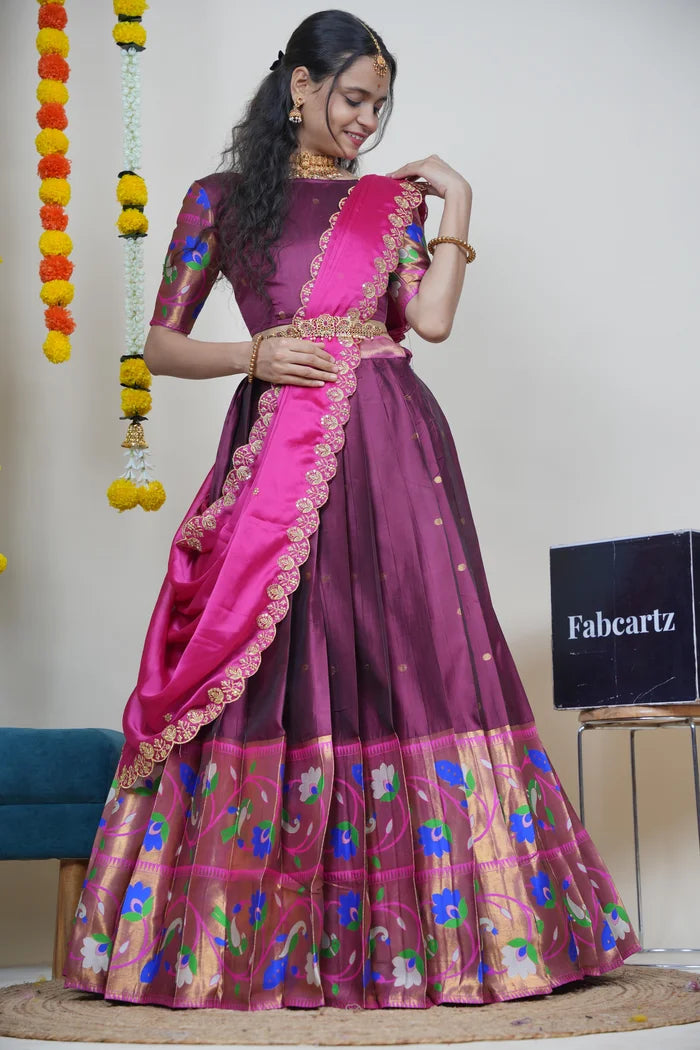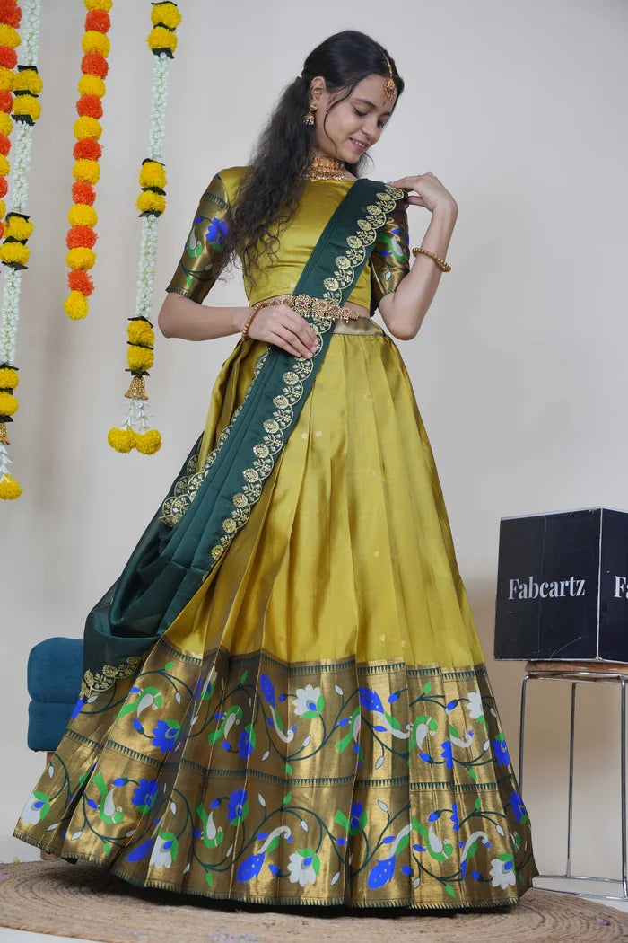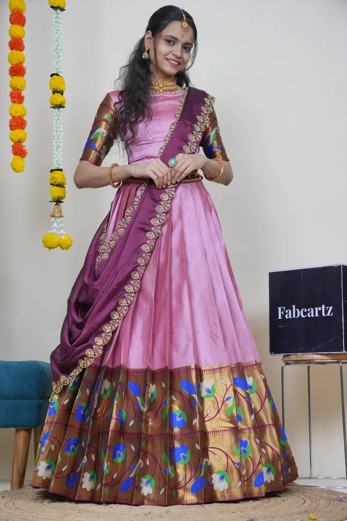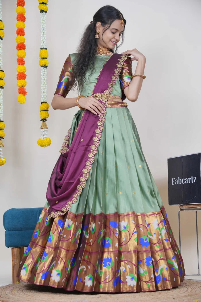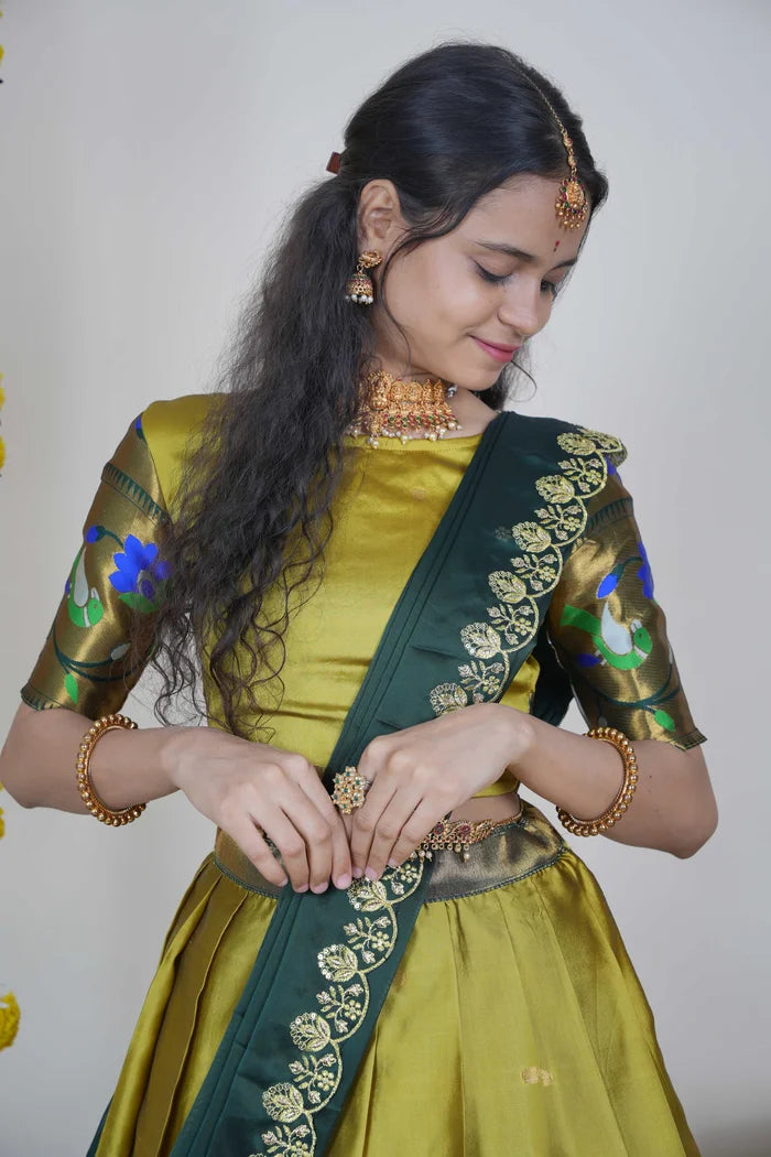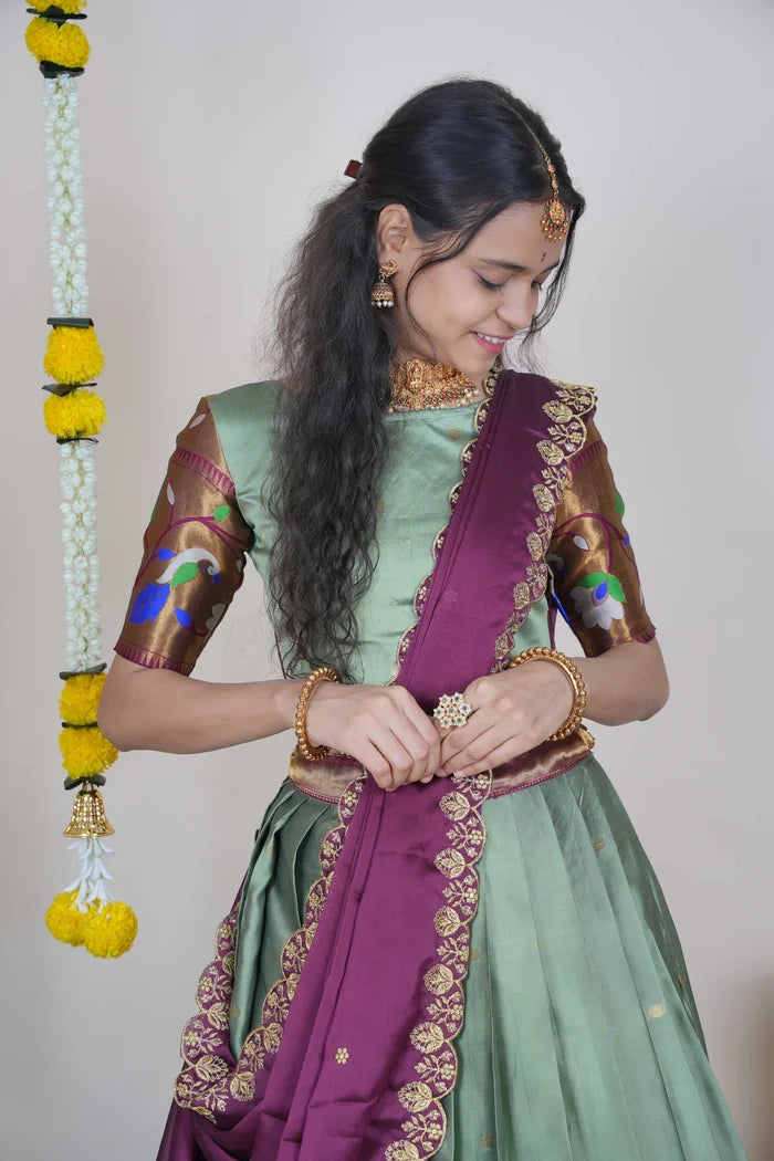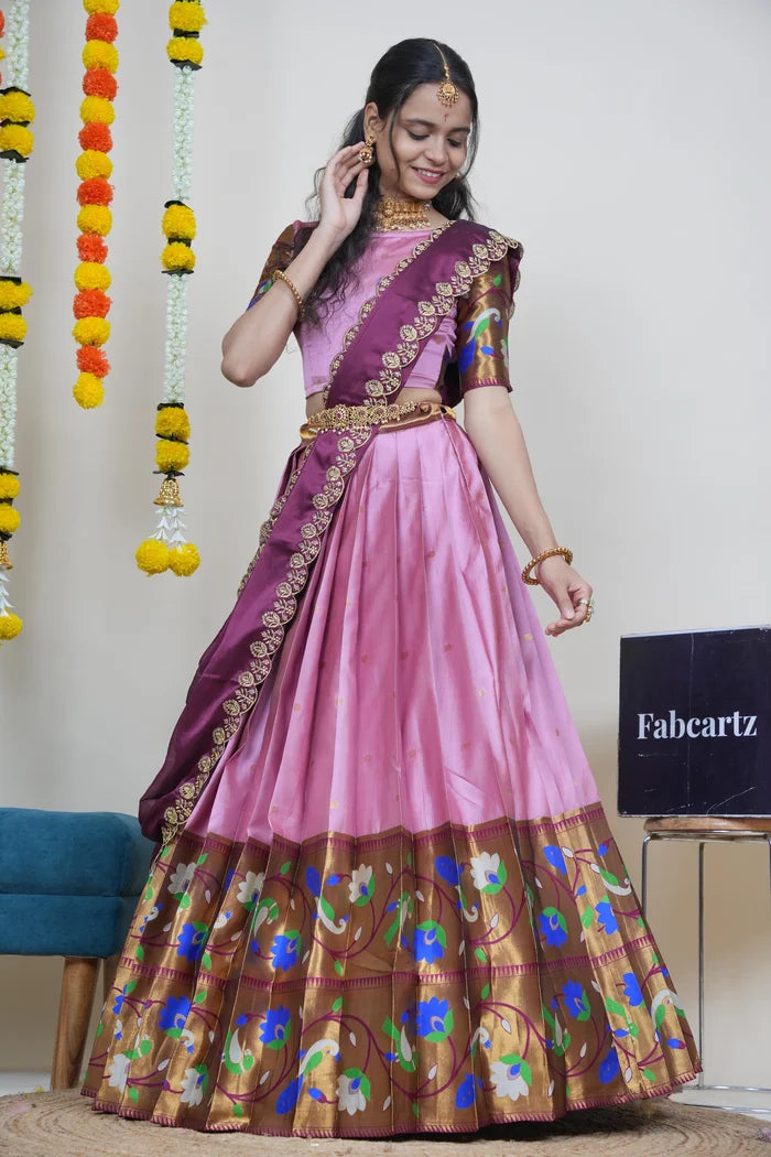 (Adhira) South Indian Festival Traditional Half Saree with Embroidered Blouse & Dupatta
