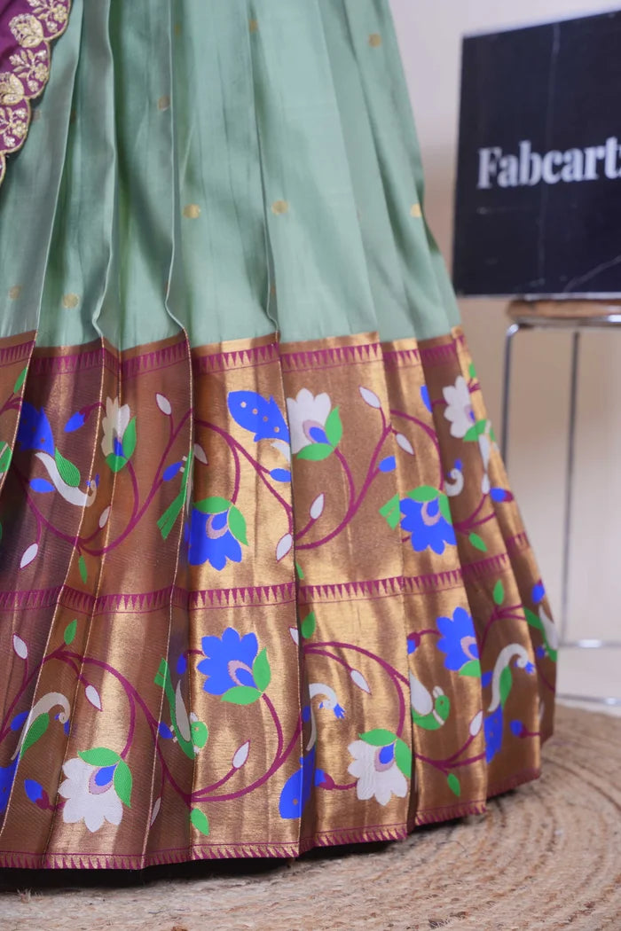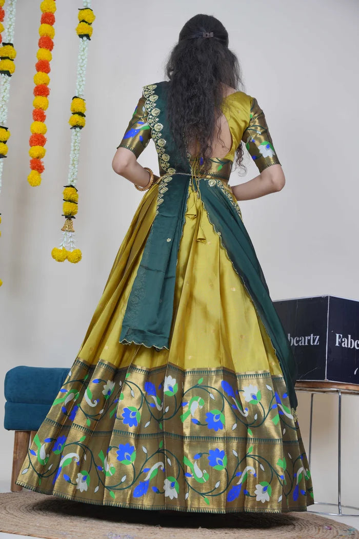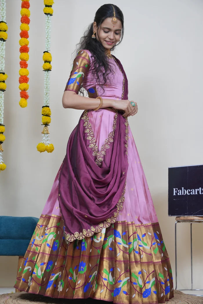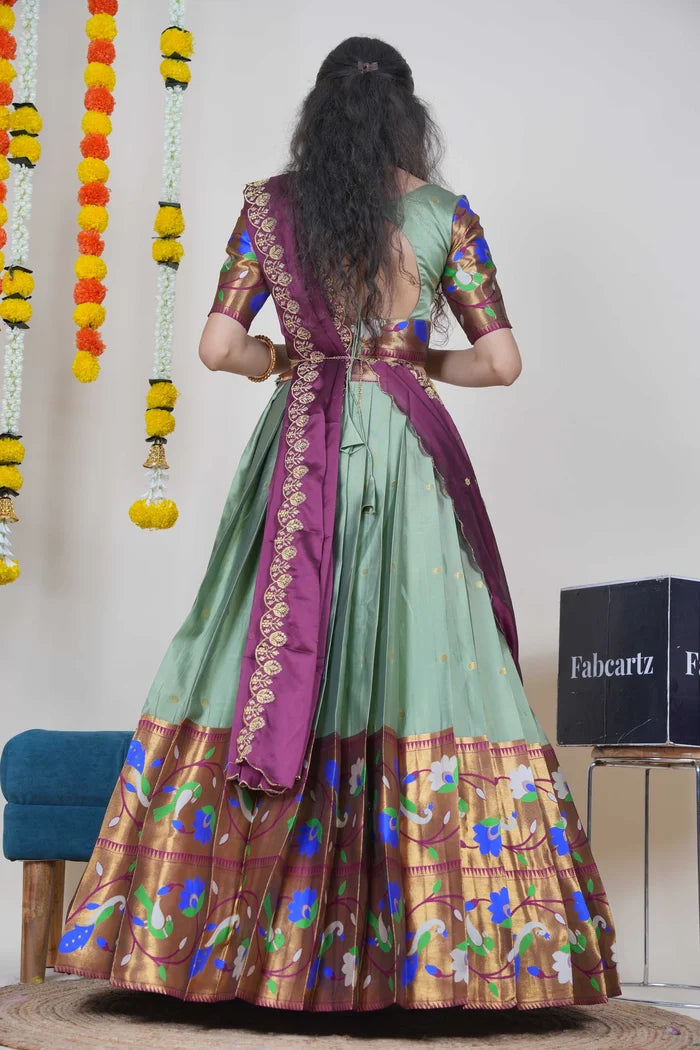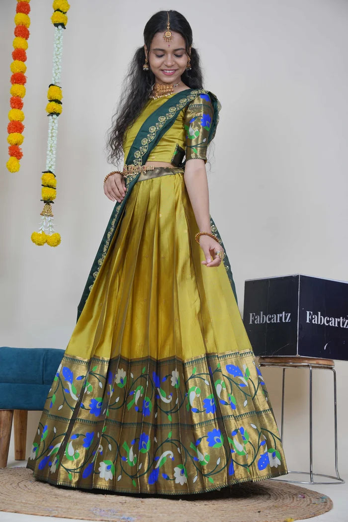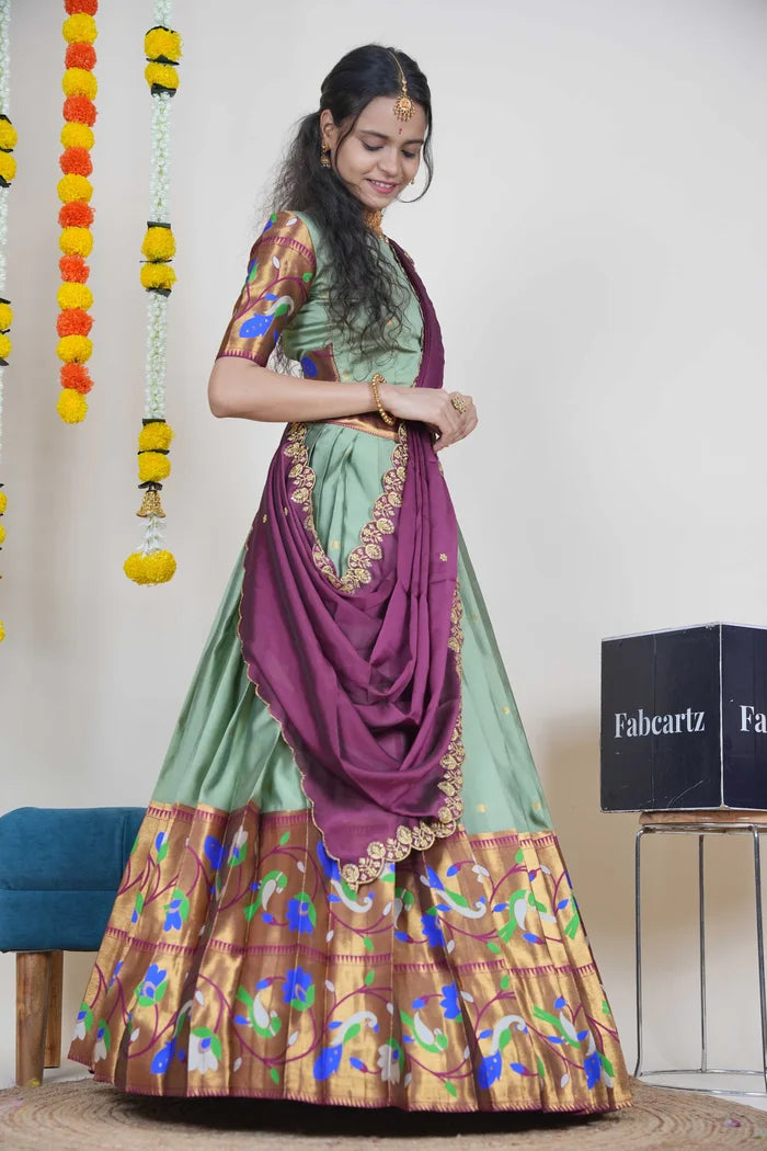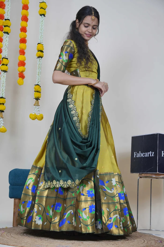 (Adhira) South Indian Festival Traditional Half Saree with Embroidered Blouse & Dupatta