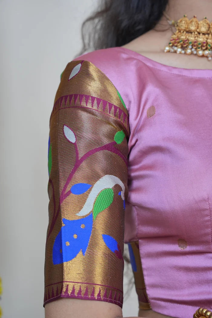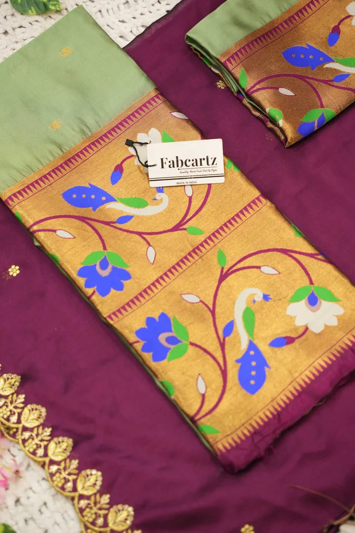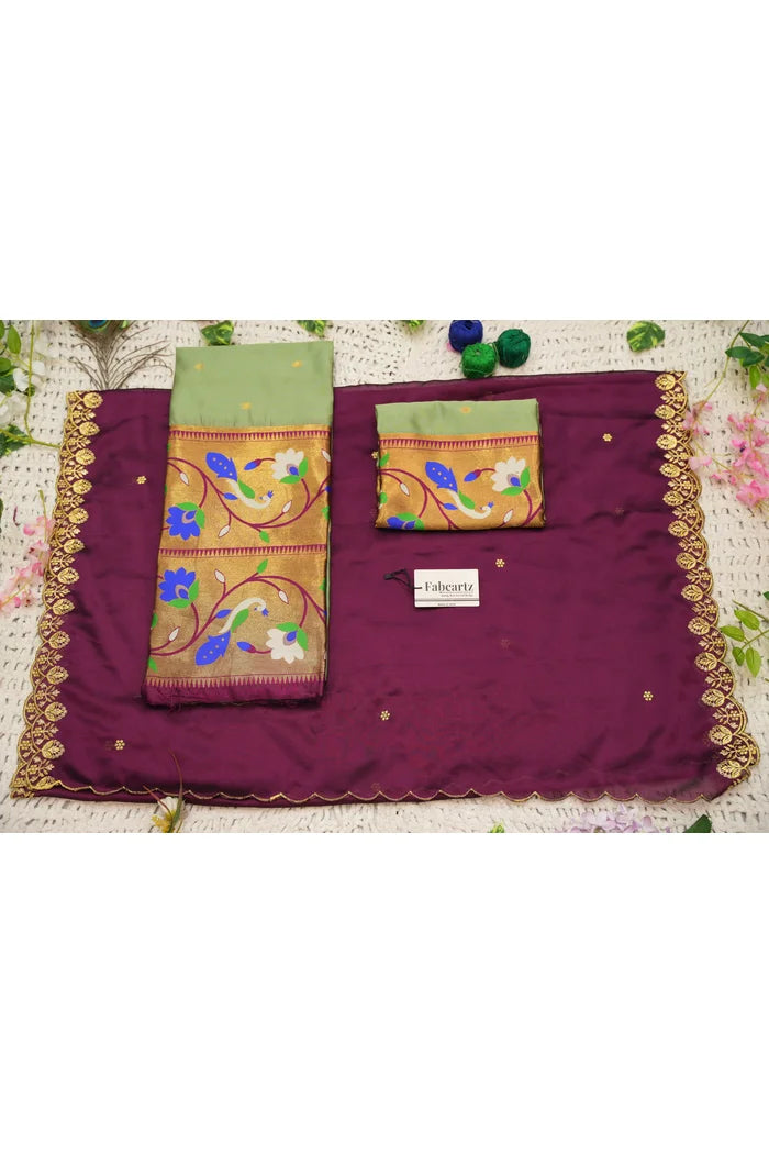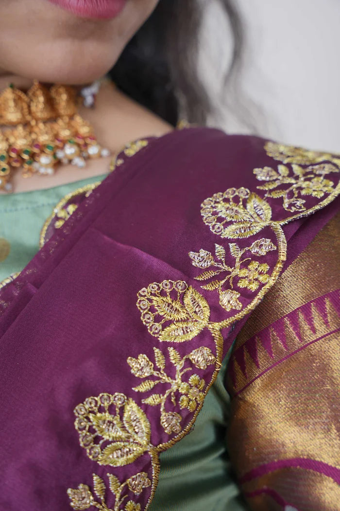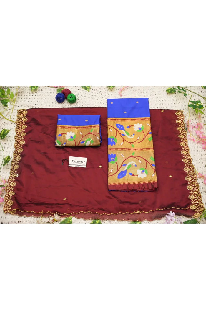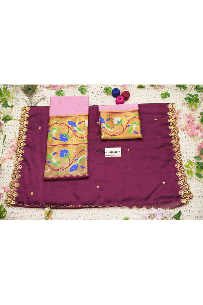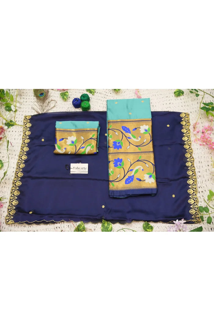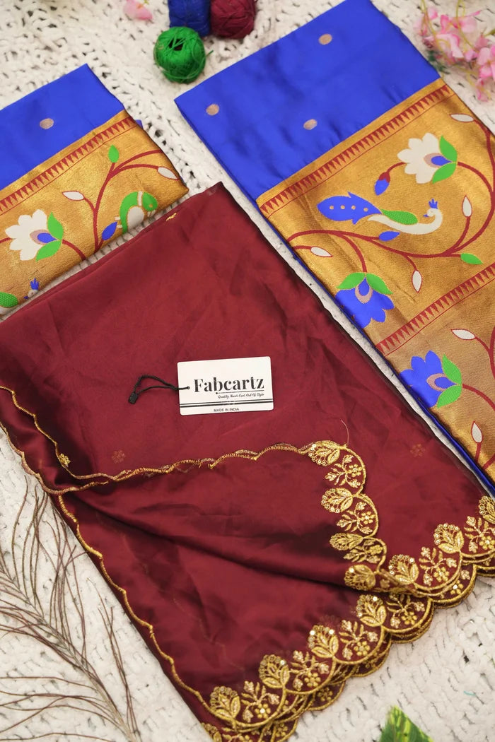 Crafted from Taffeta Satin (Litchi Silk) with intricate Zari work, offering a rich and elegant look.