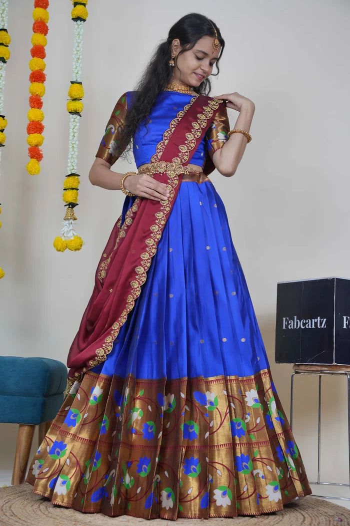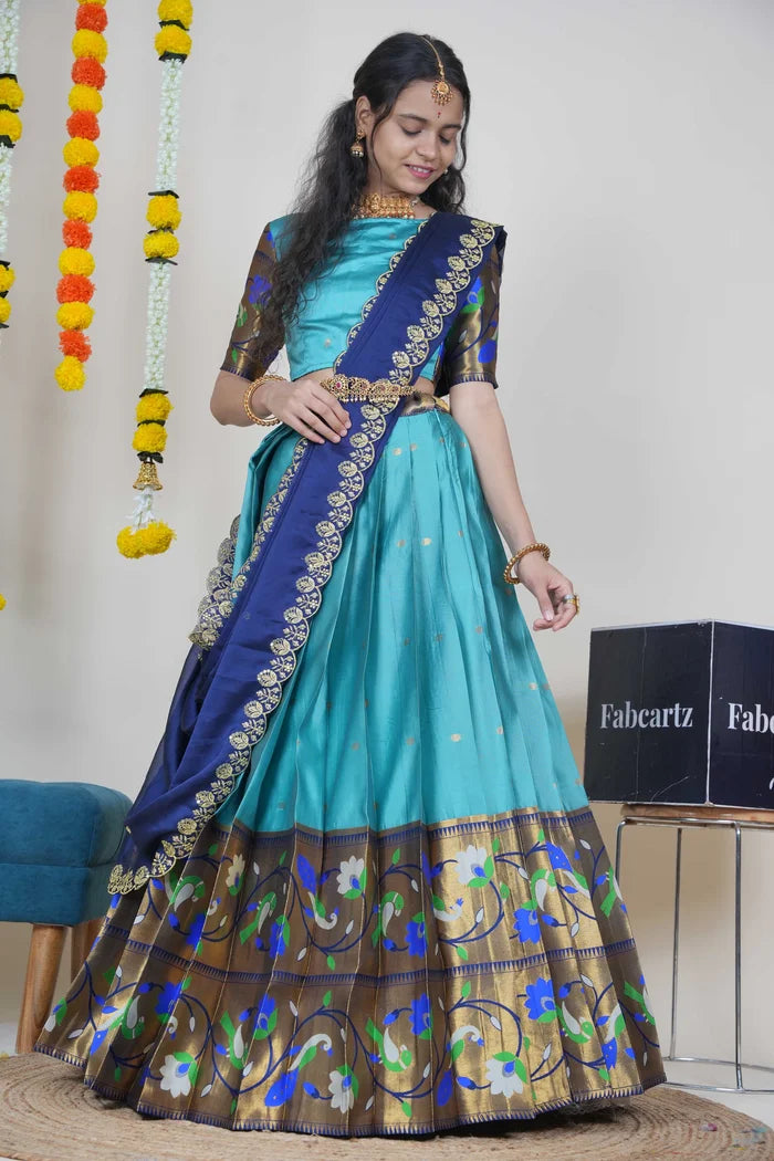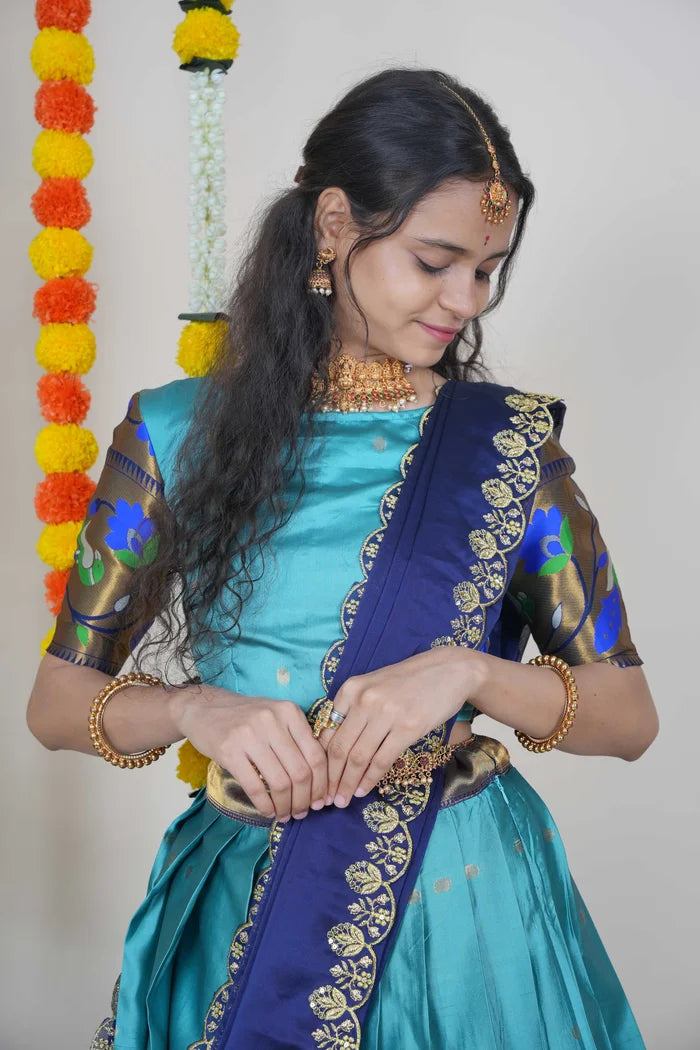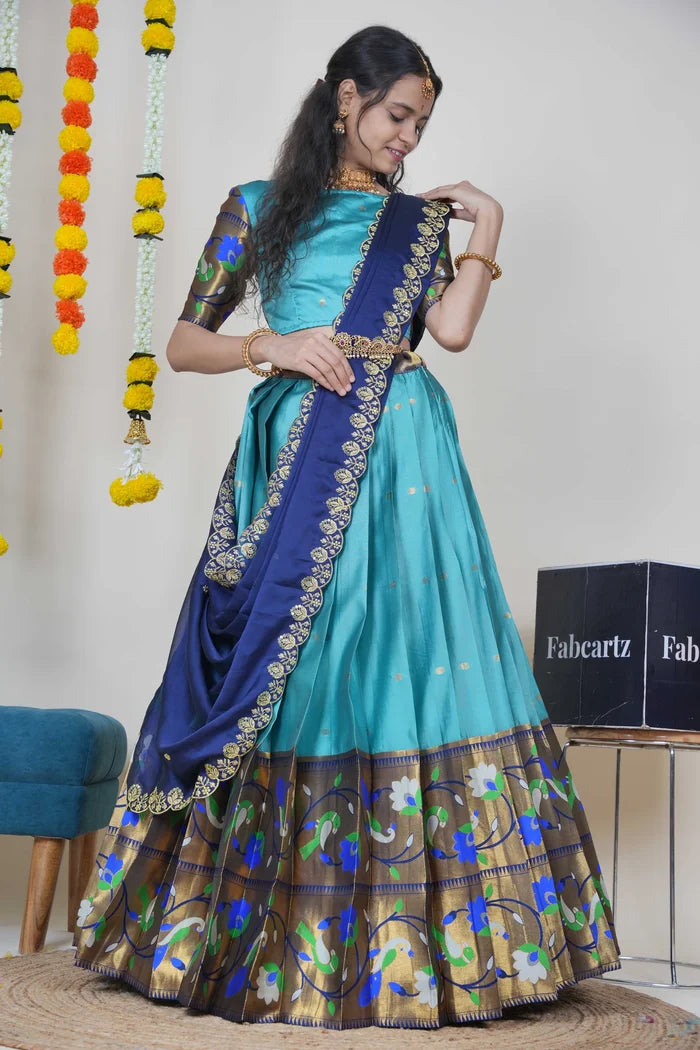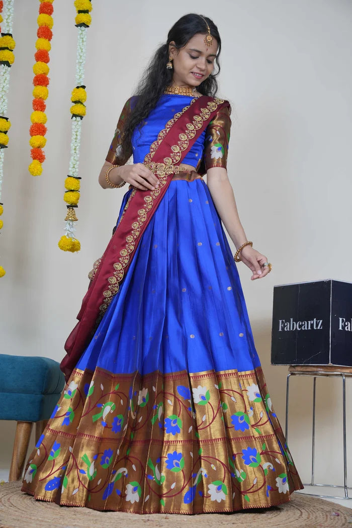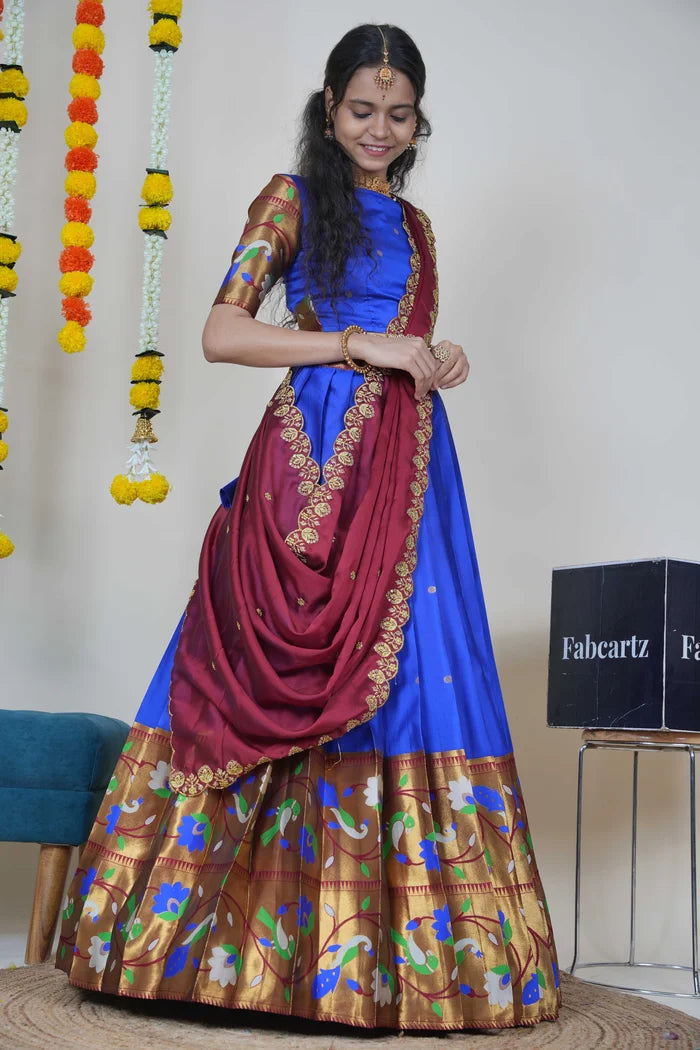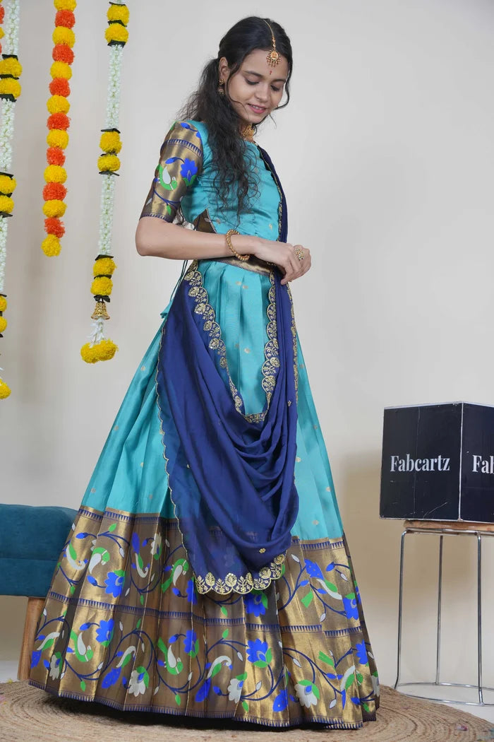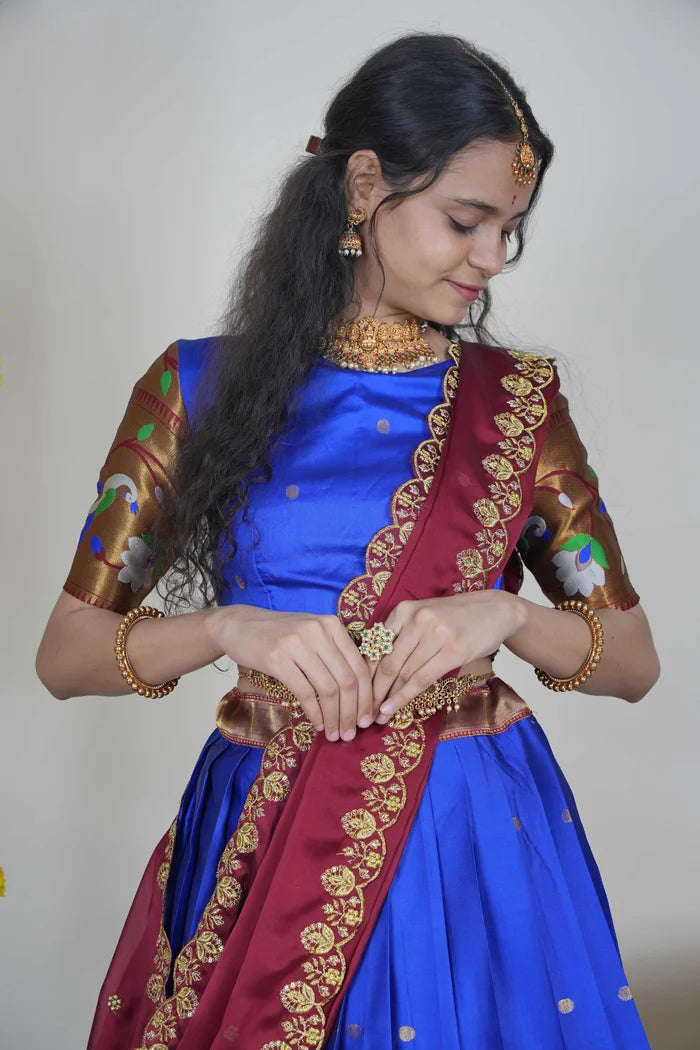 (ButtaBomma) South Indian Festival Traditional Half Saree with Embroidered Blouse & Dupatta