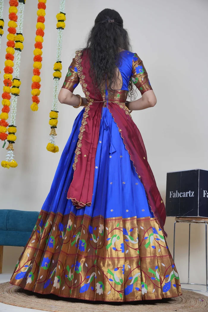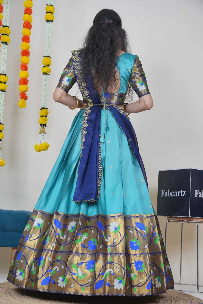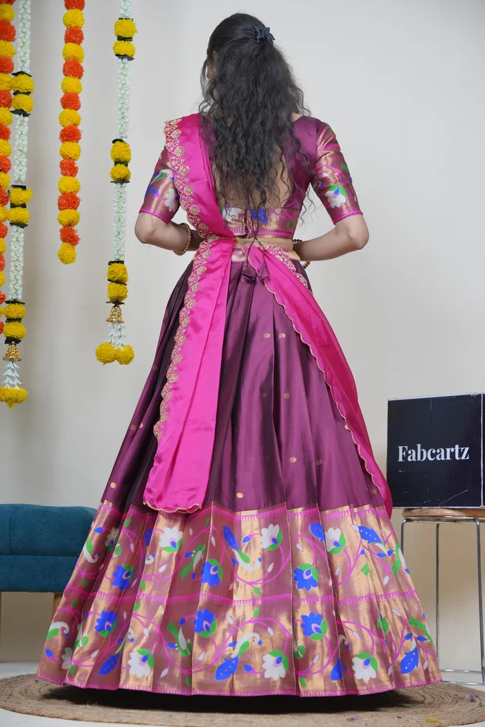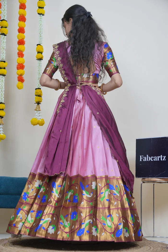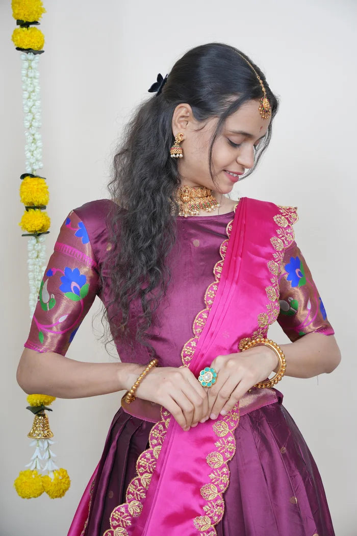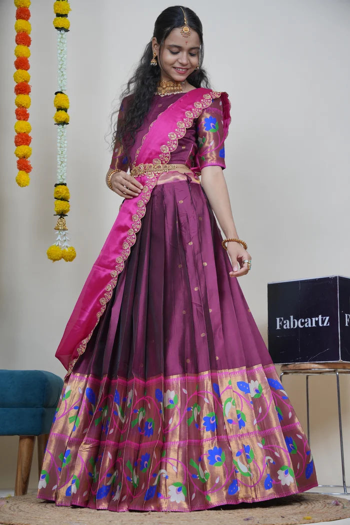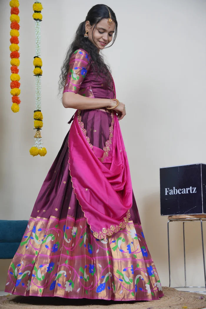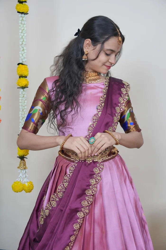 (ButtaBomma) South Indian Festival Traditional Half Saree with Embroidered Blouse & Dupatta