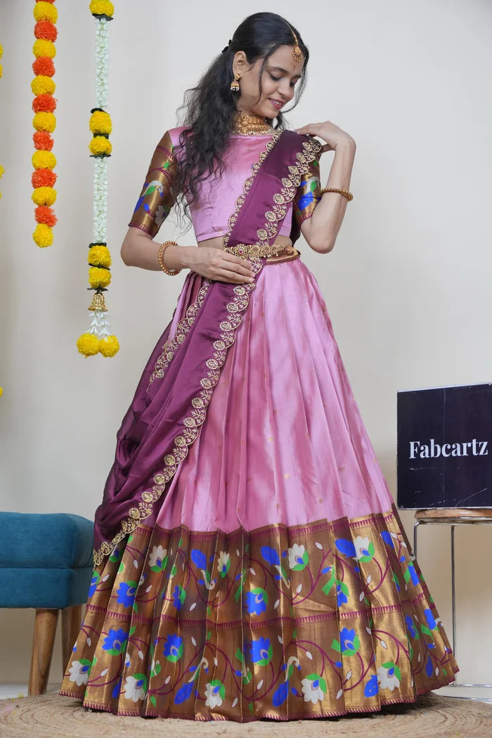 Rupmani Women's Woven Design zari work Half Saree with Embroidered Blouse and Dupatta