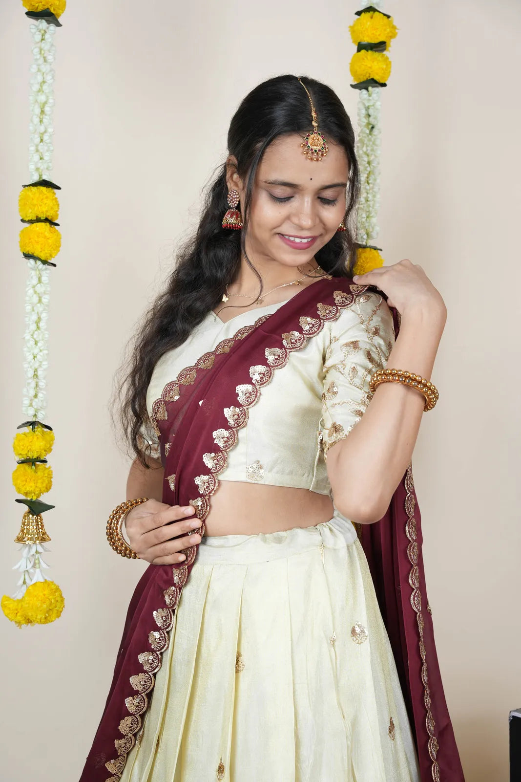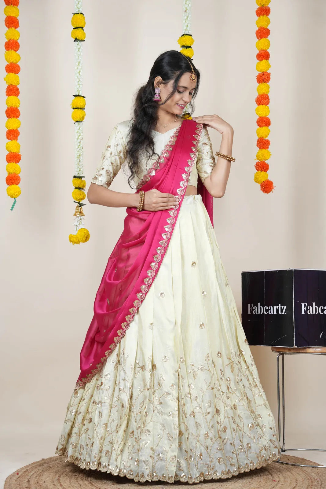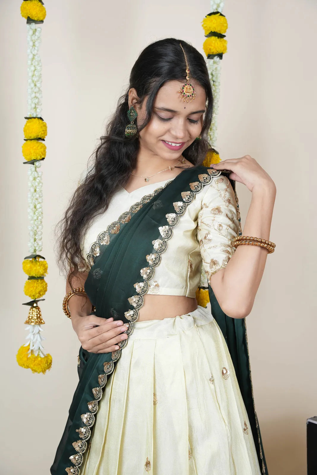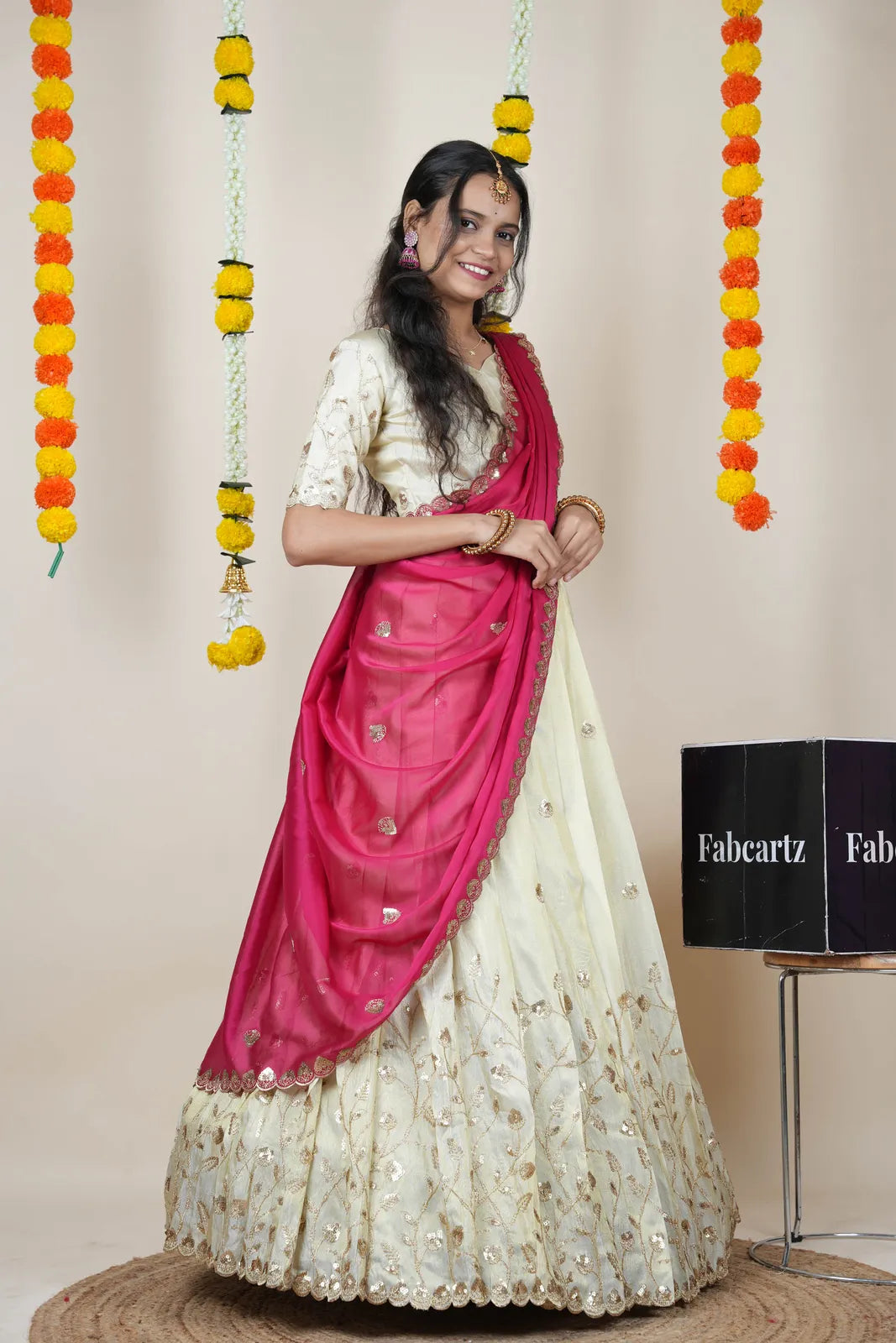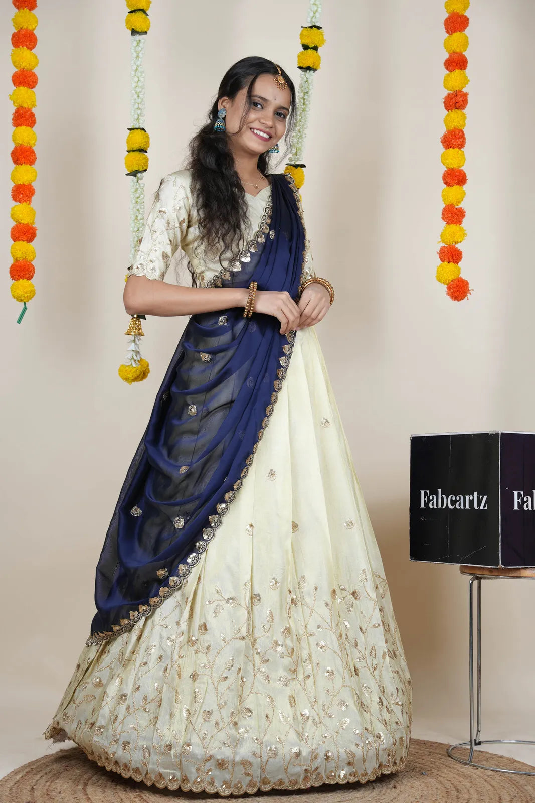 (Adhira) South Indian Festival Traditional Half Saree with Embroidered Blouse & Dupatta