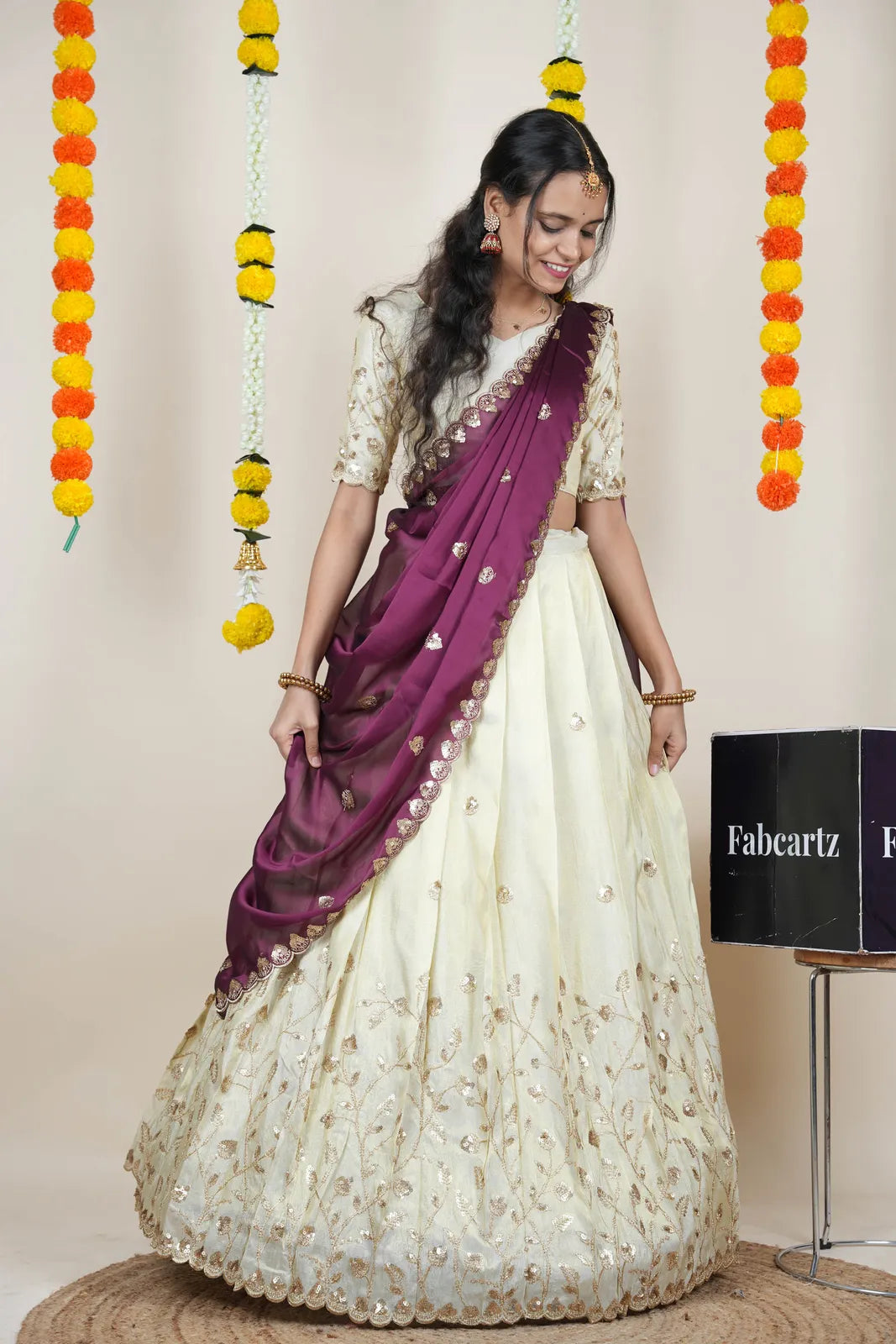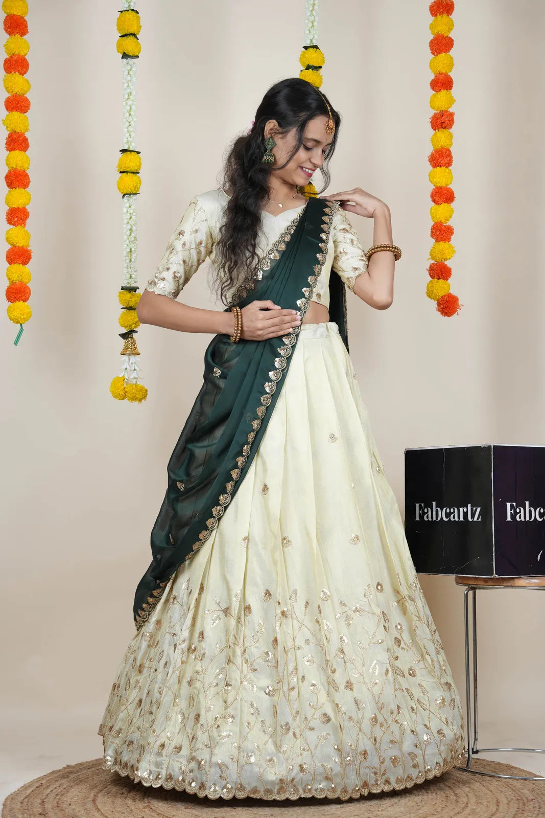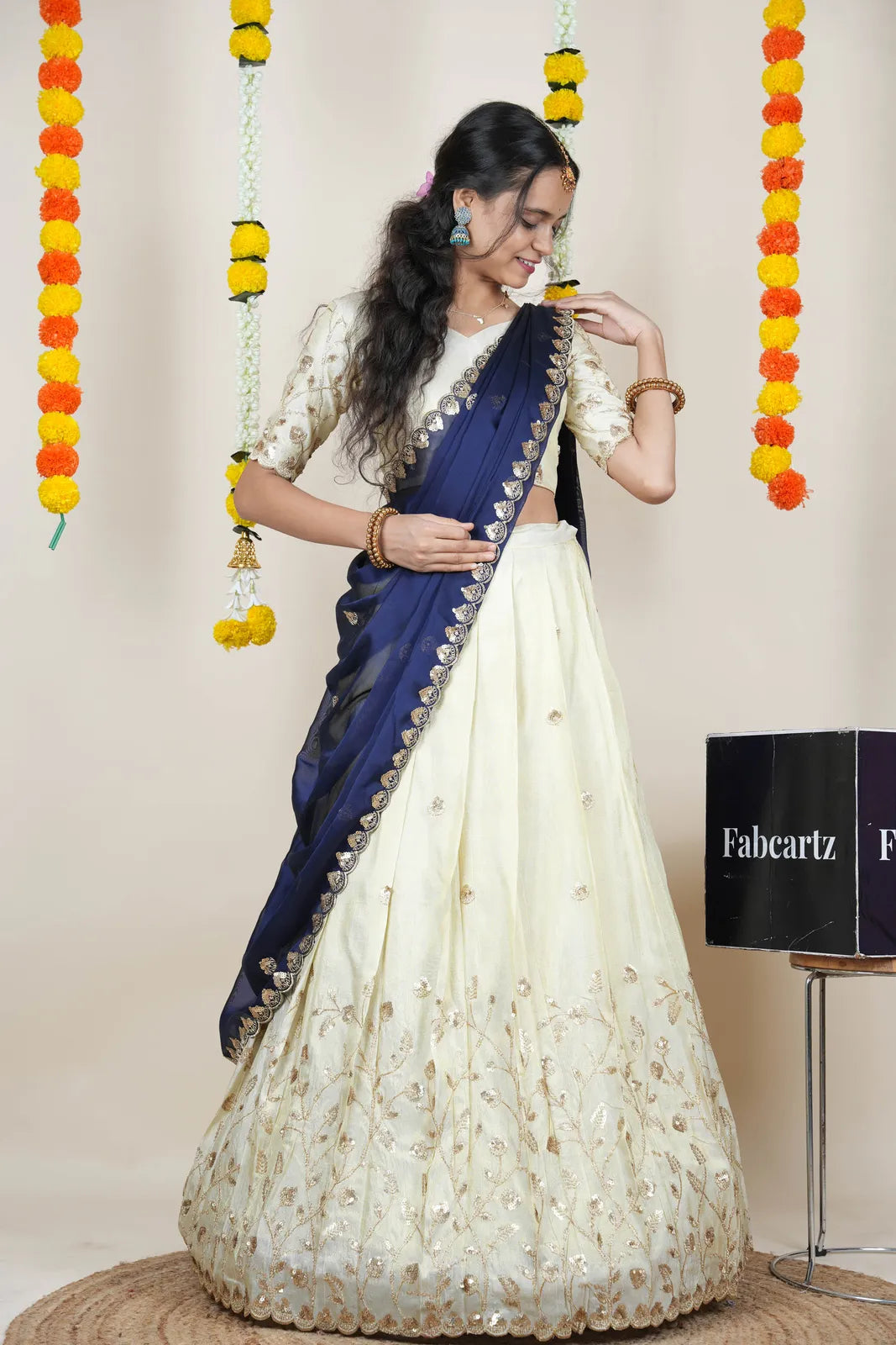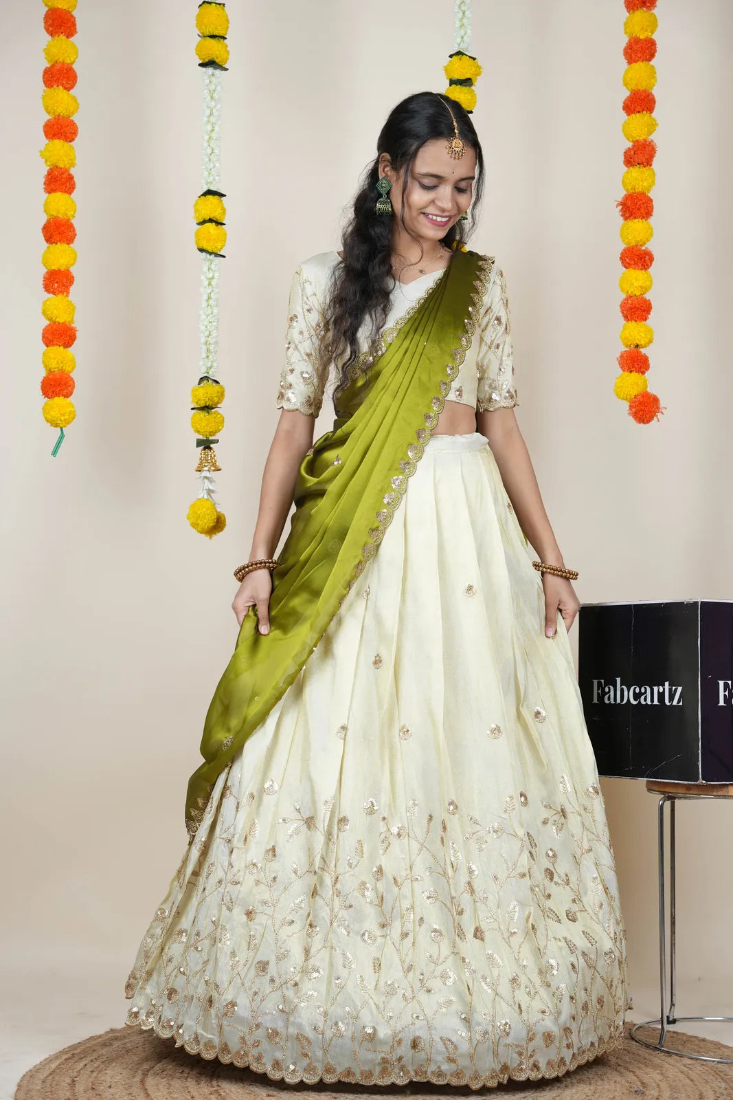 (Adhira) South Indian Festival Traditional Half Saree with Embroidered Blouse & Dupatta