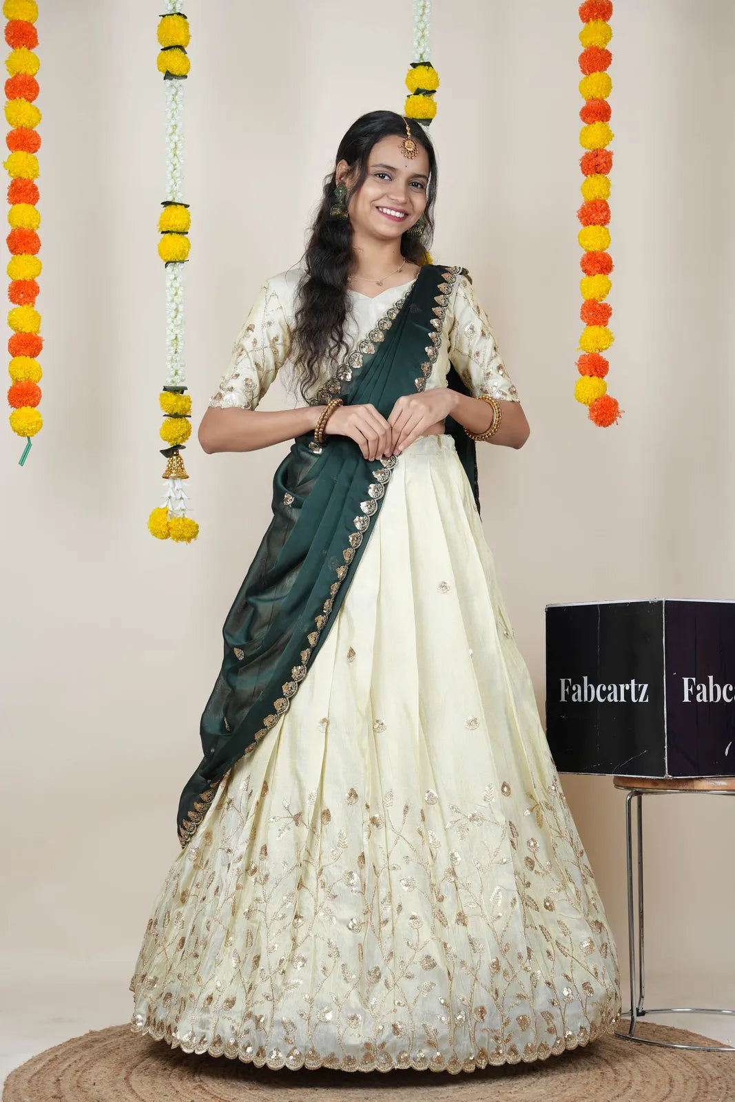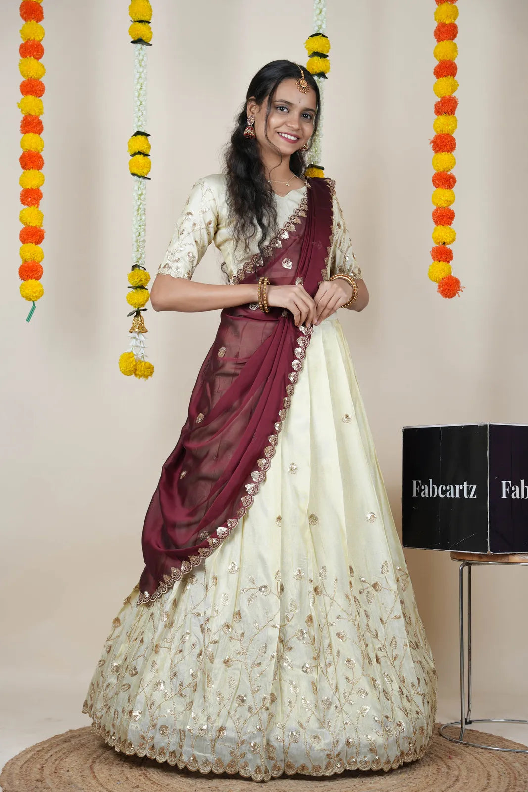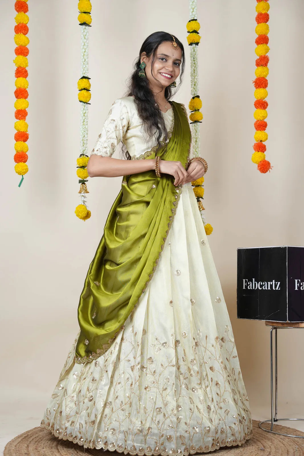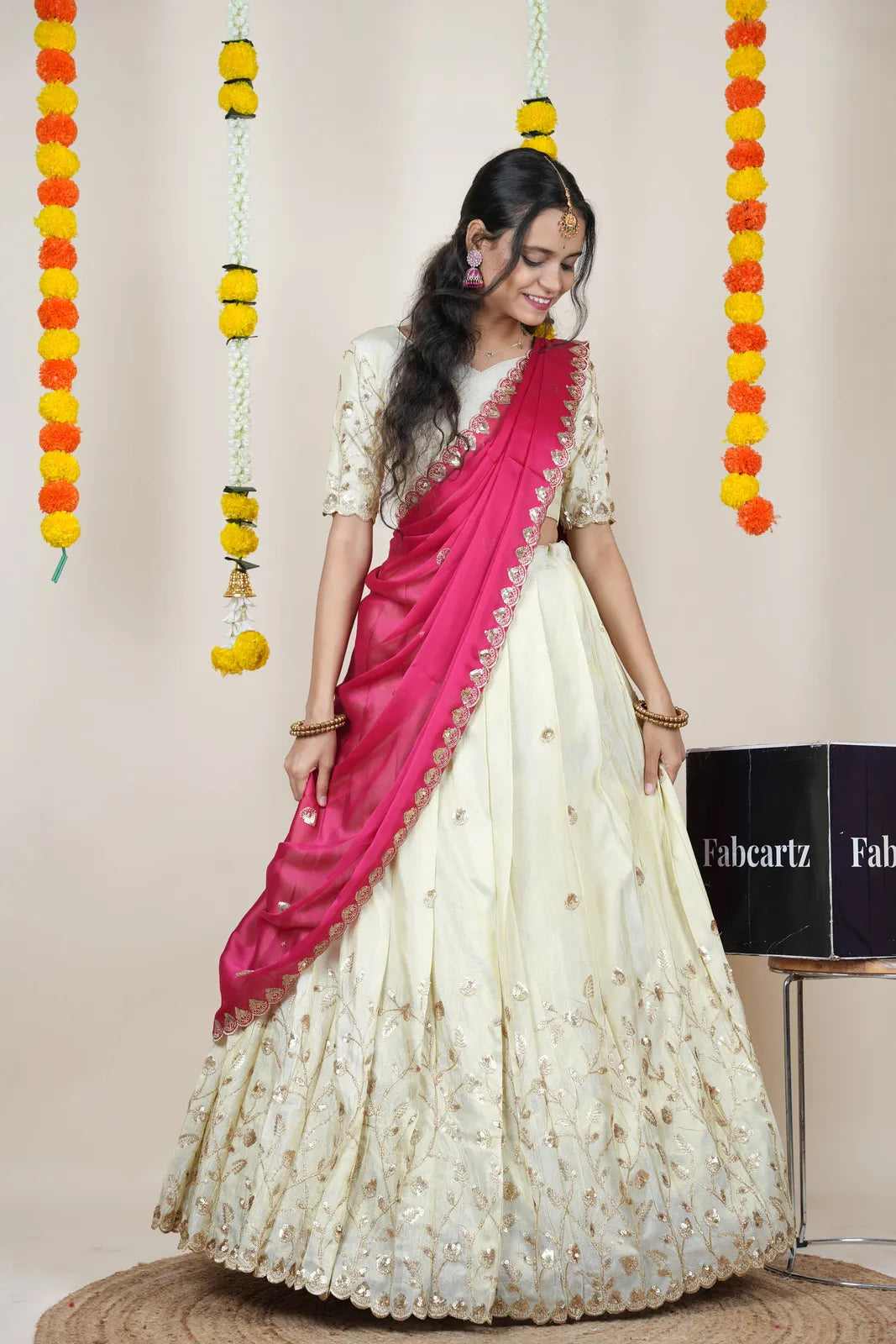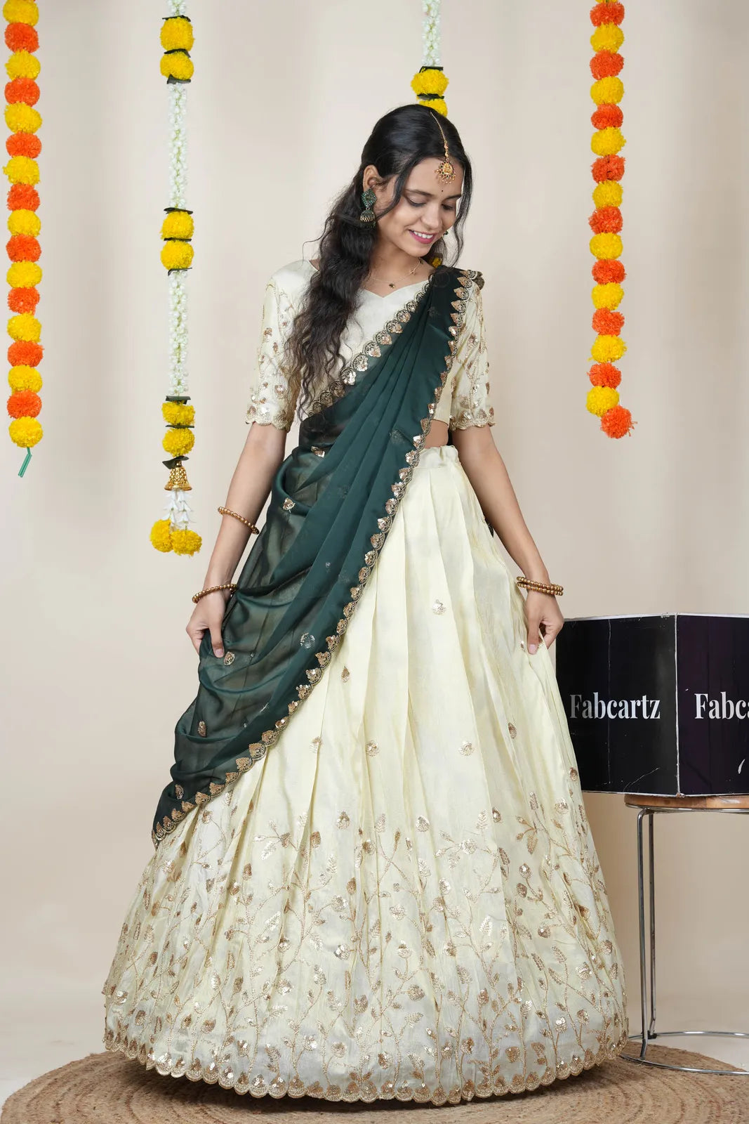 (Adhira) South Indian Festival Traditional Half Saree with Embroidered Blouse & Dupatta