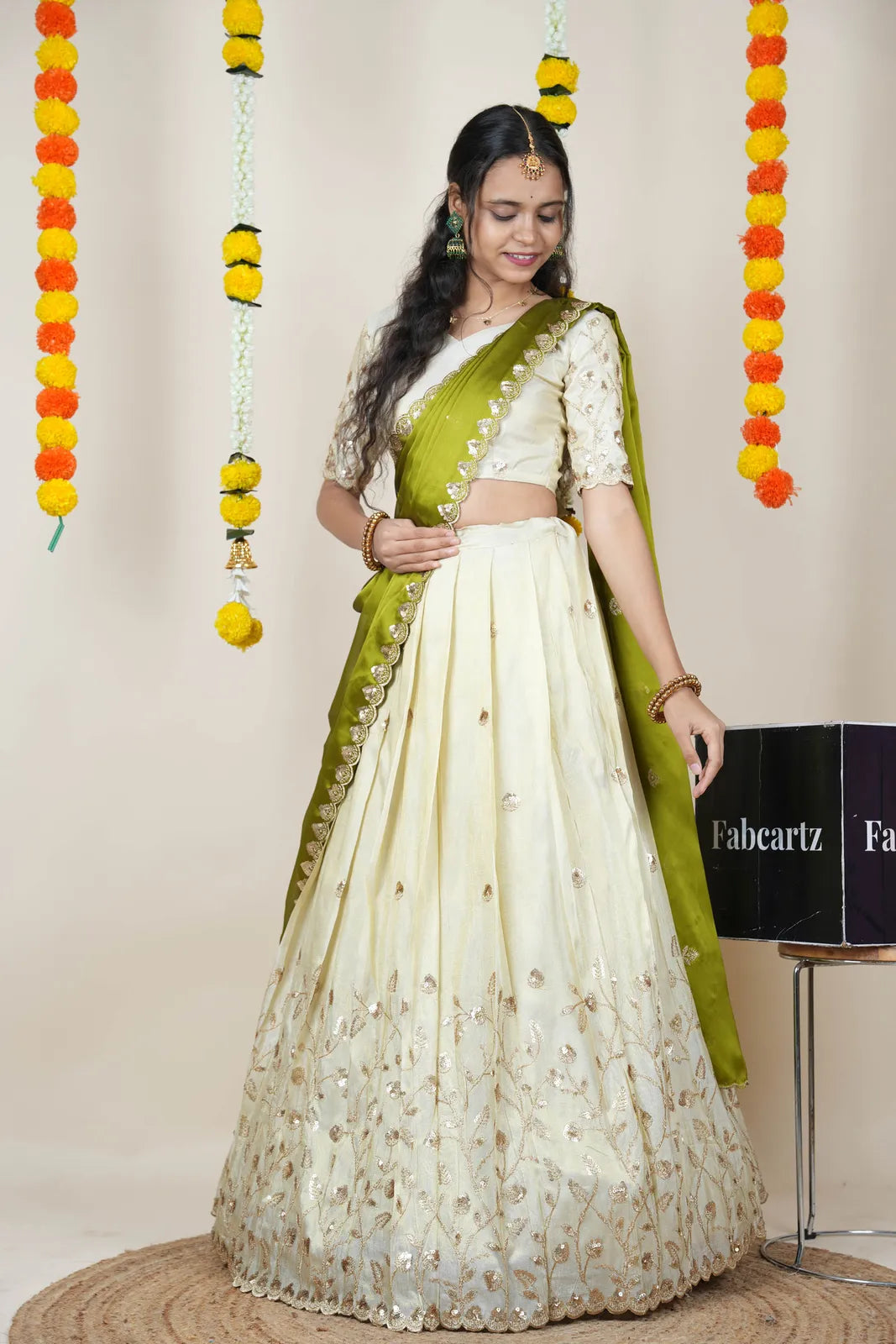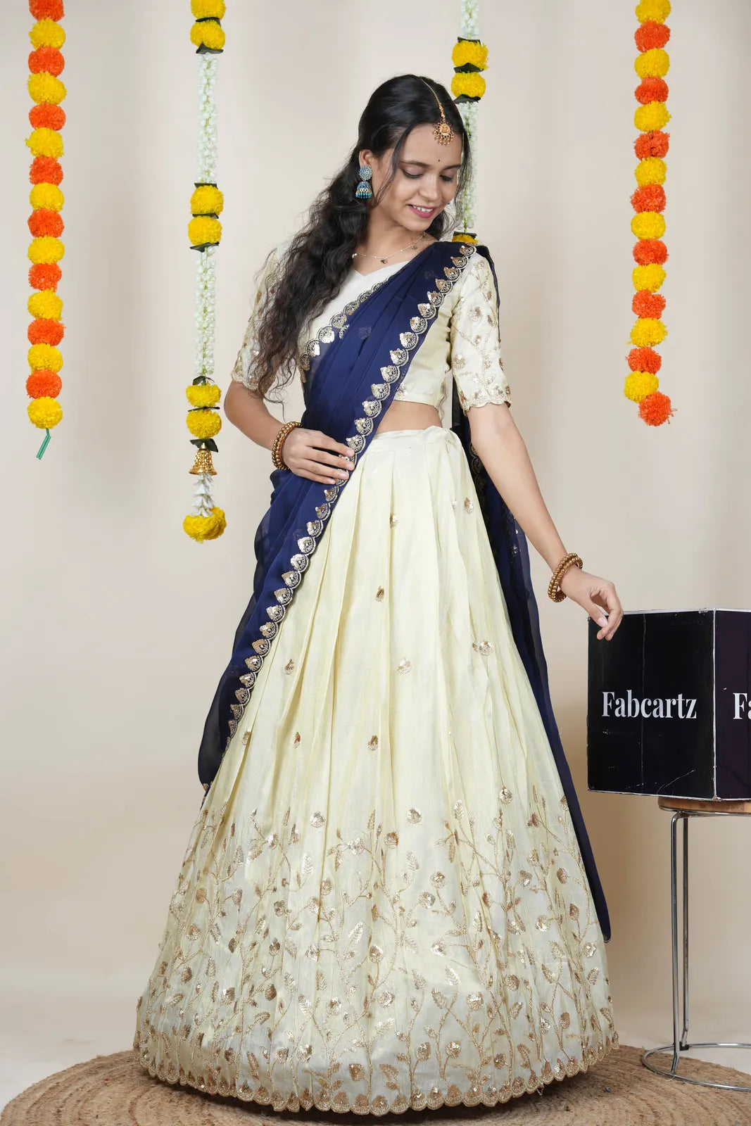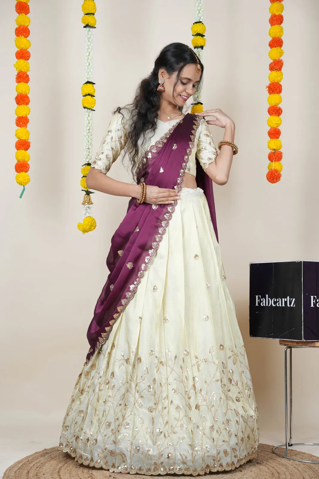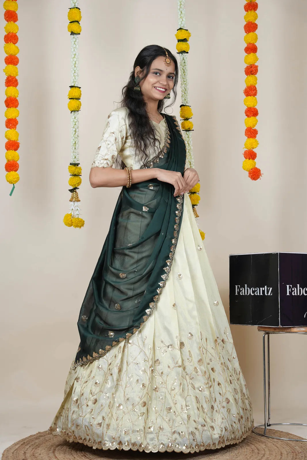 (Adhira) South Indian Festival Traditional Half Saree with Embroidered Blouse & Dupatta