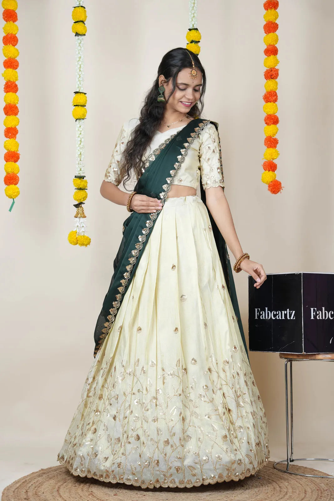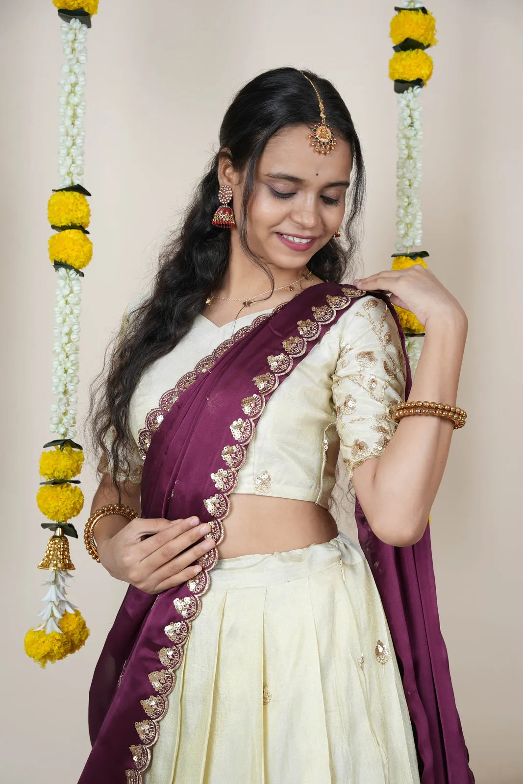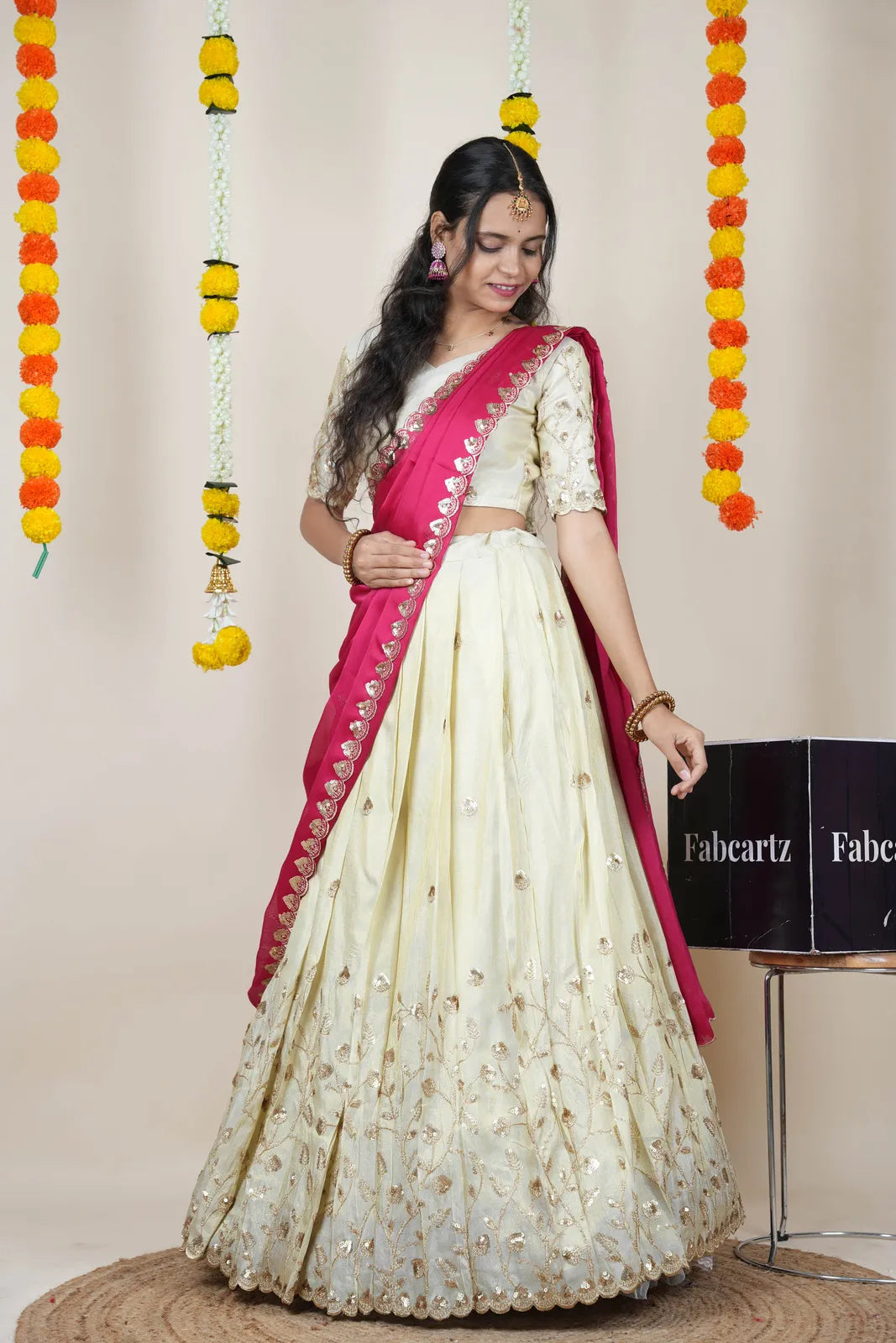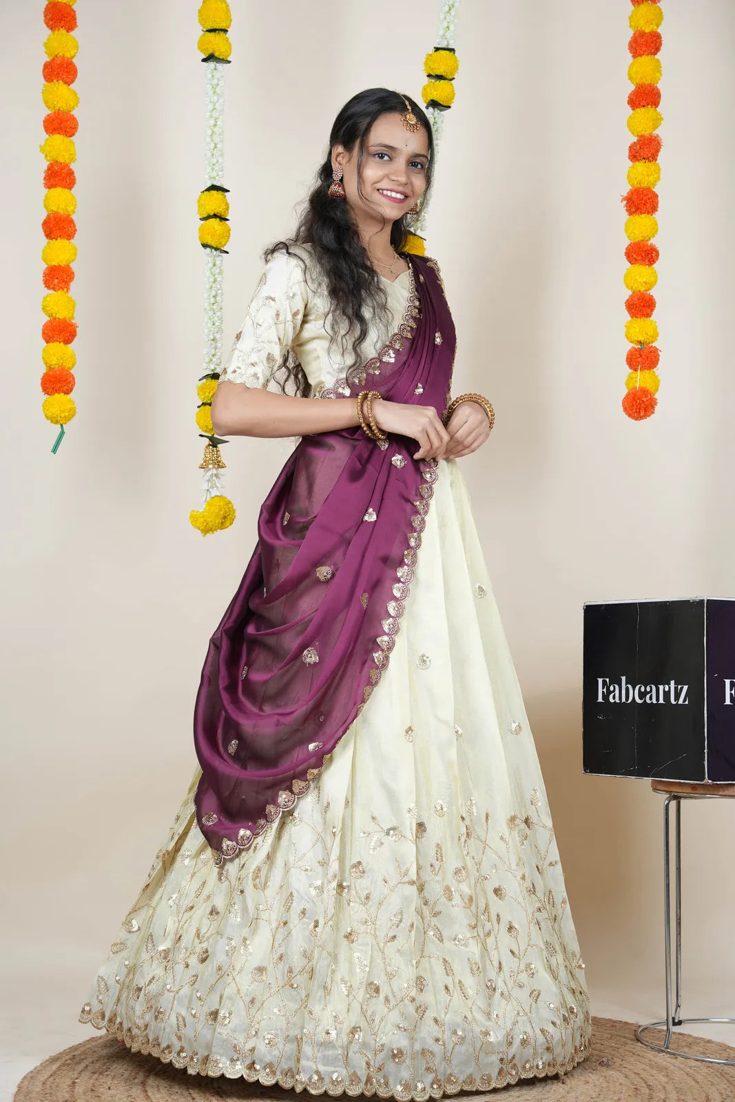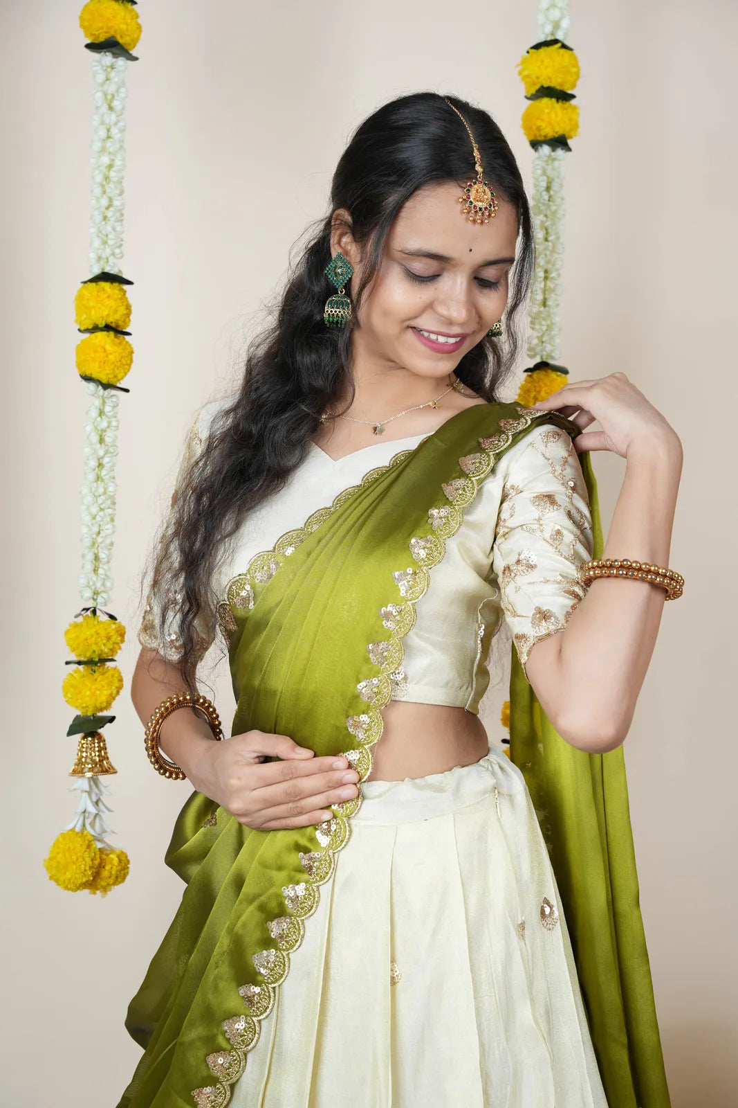 (Adhira) South Indian Festival Traditional Half Saree with Embroidered Blouse & Dupatta