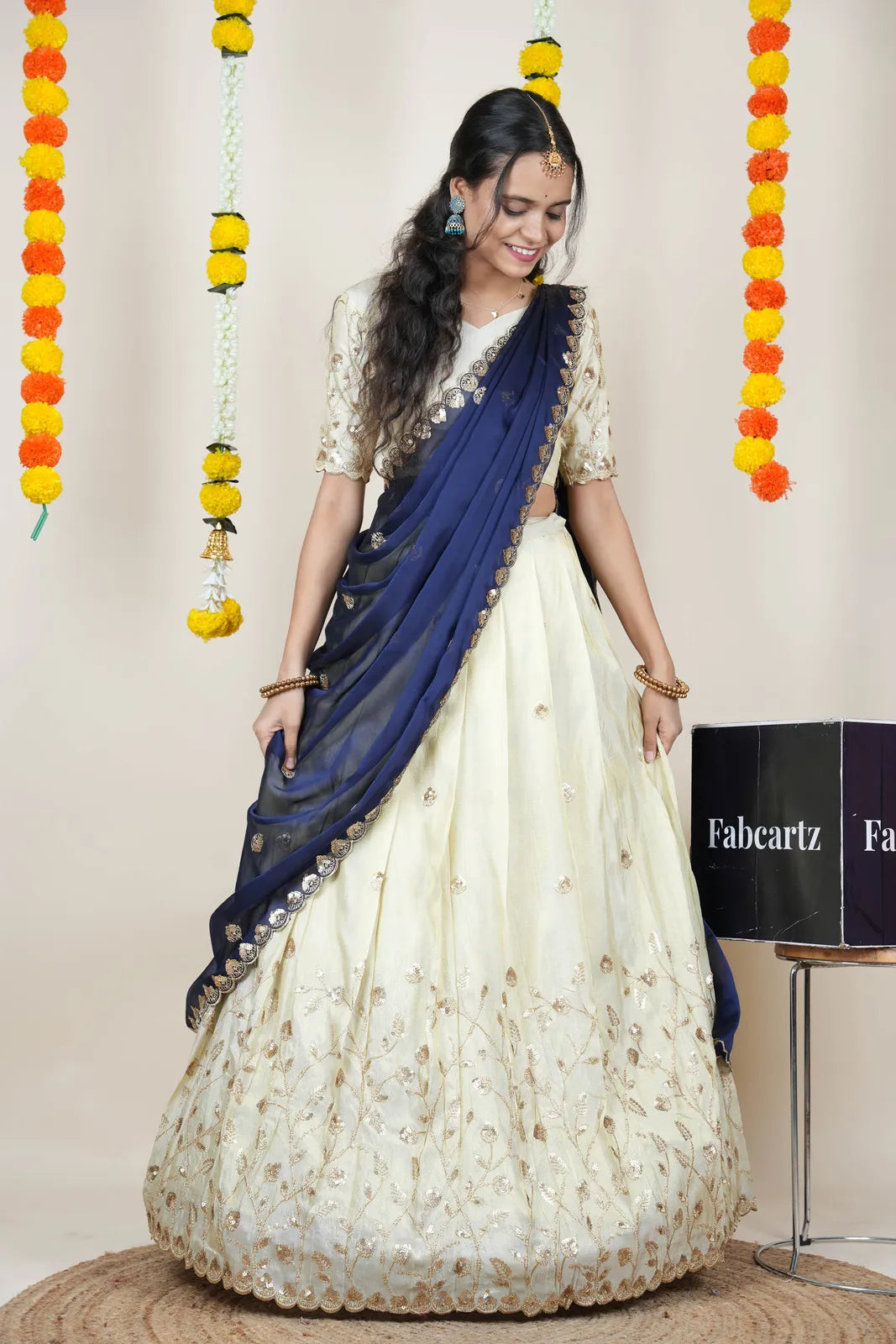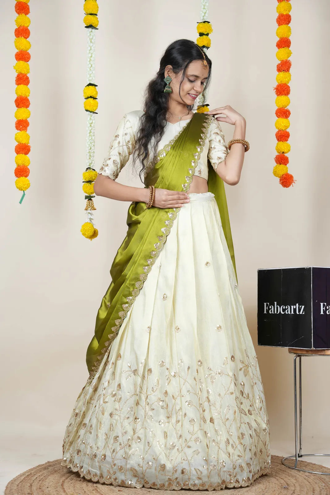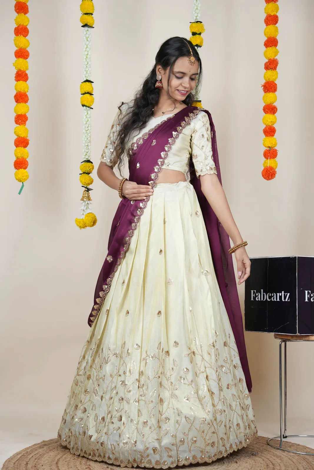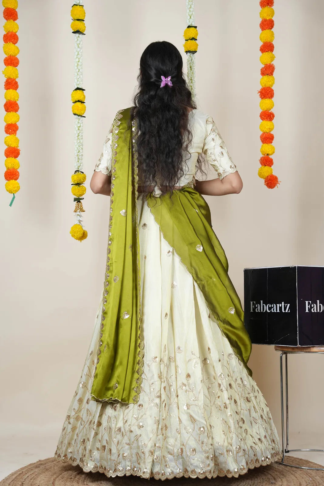 (Adhira) South Indian Festival Traditional Half Saree with Embroidered Blouse & Dupatta