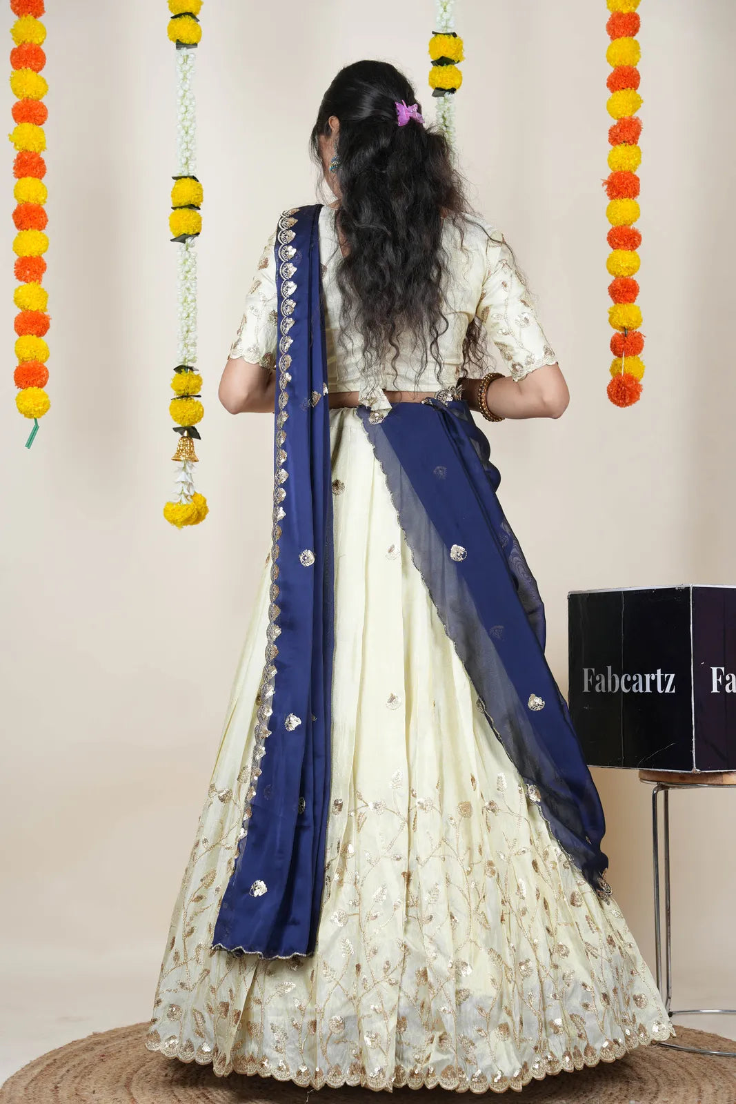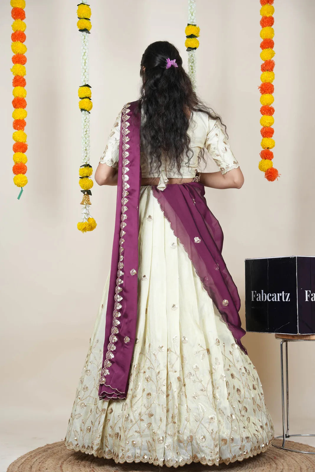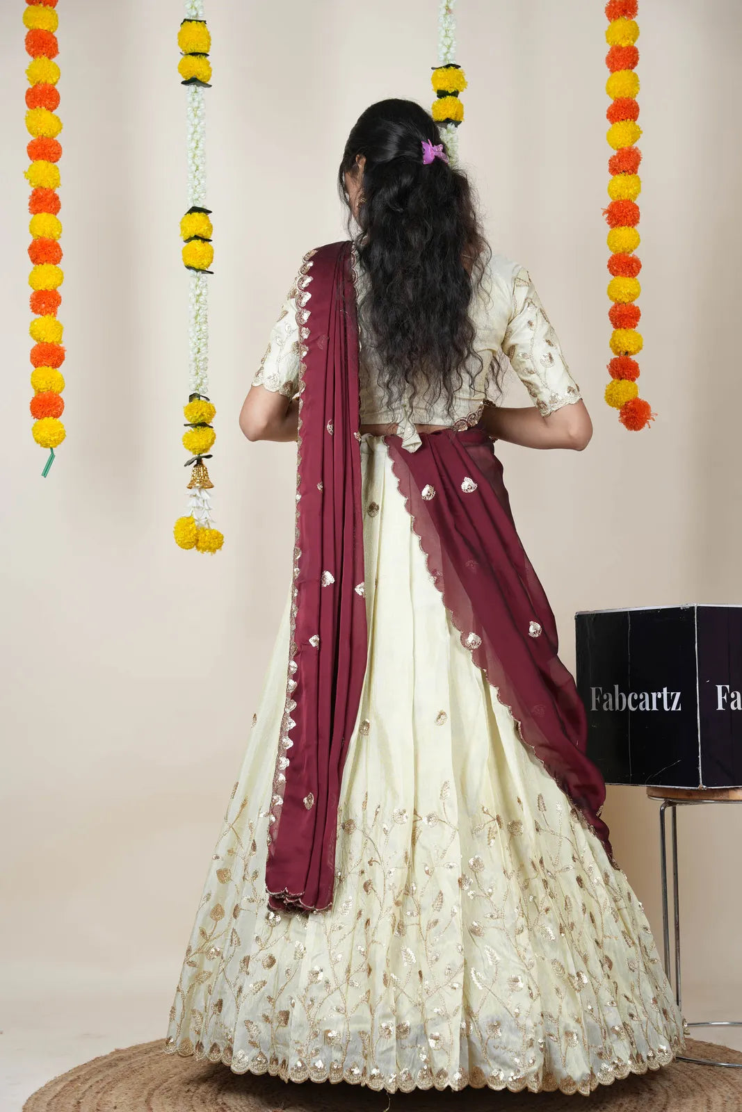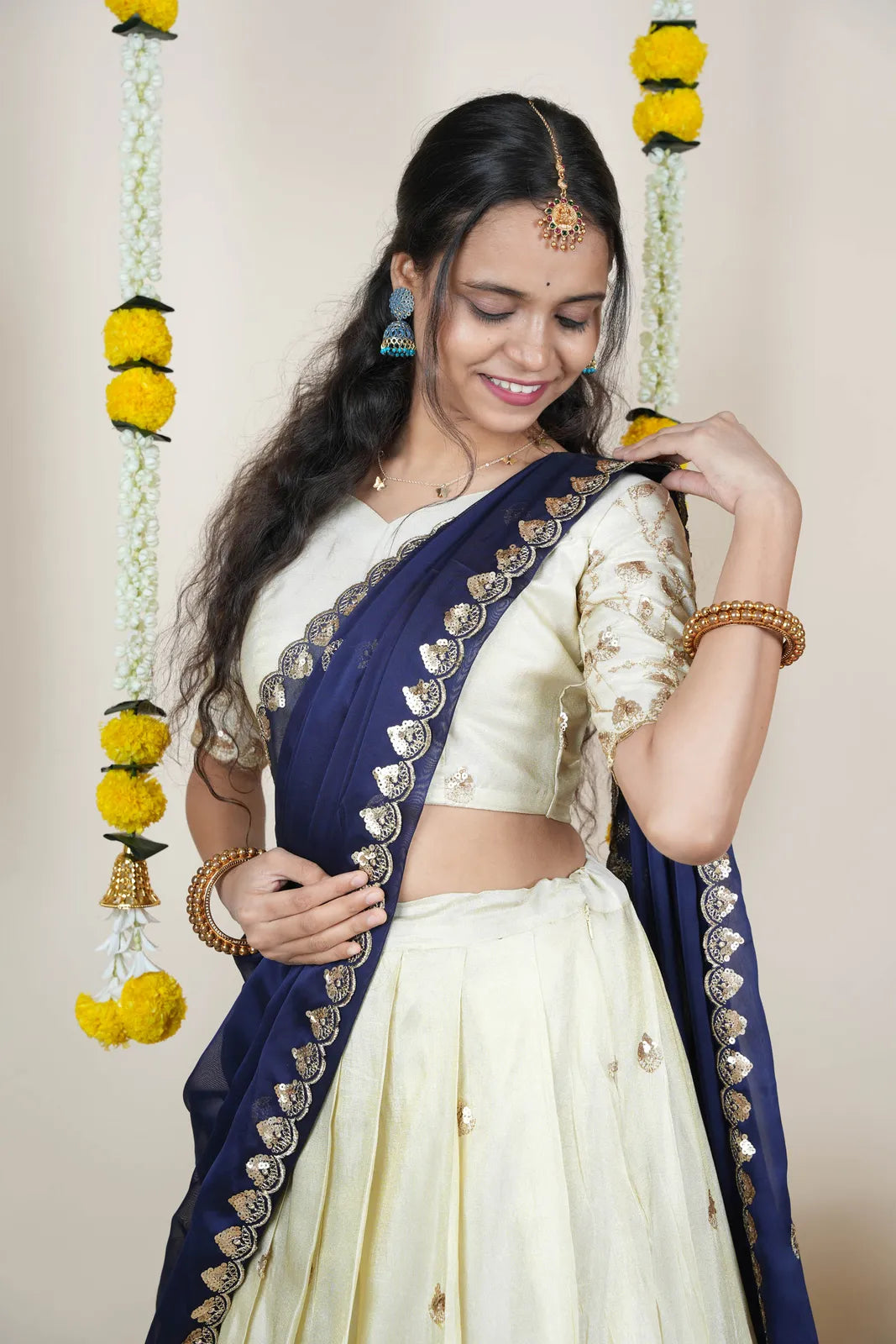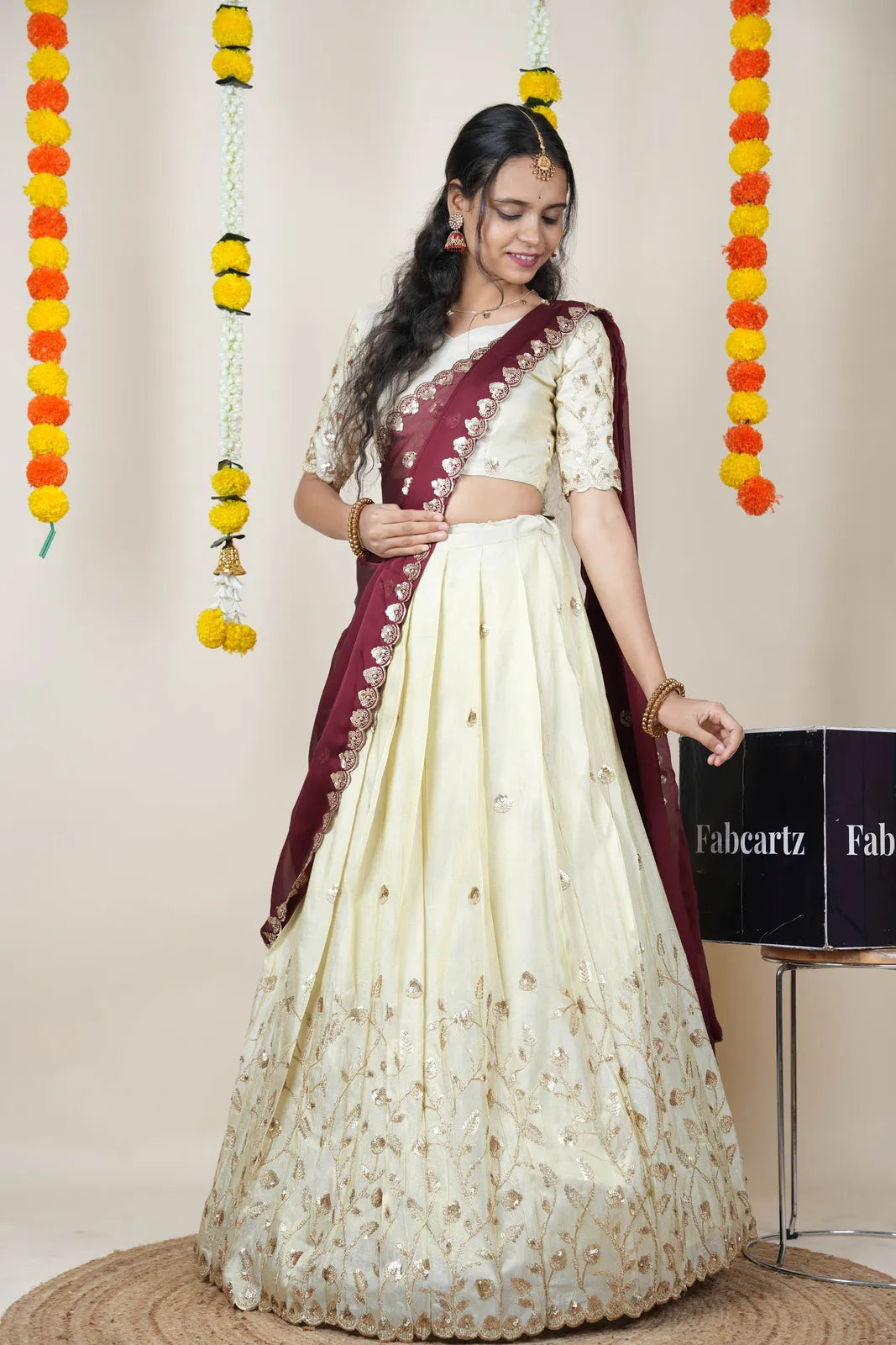 (Adhira) South Indian Festival Traditional Half Saree with Embroidered Blouse & Dupatta