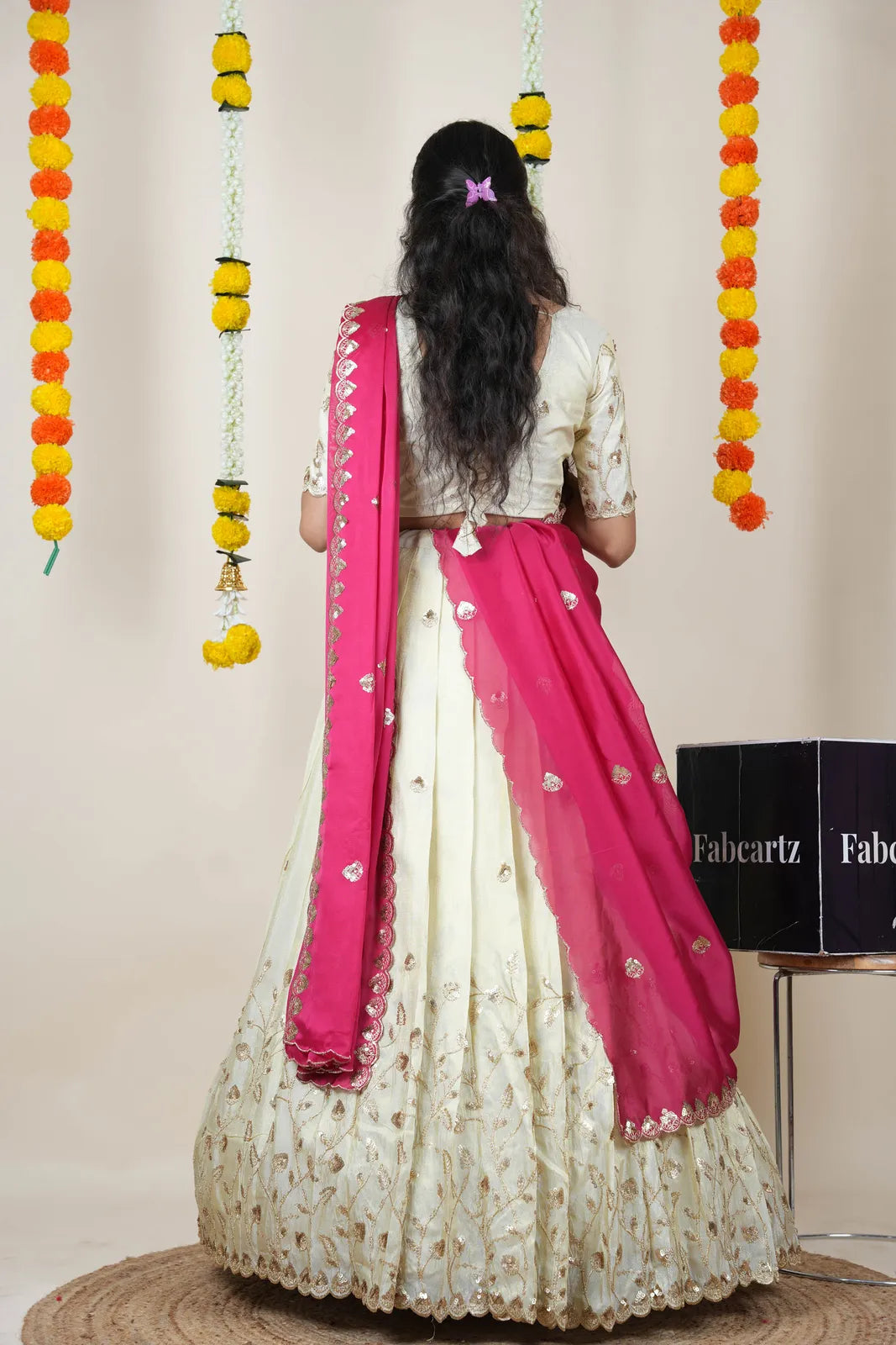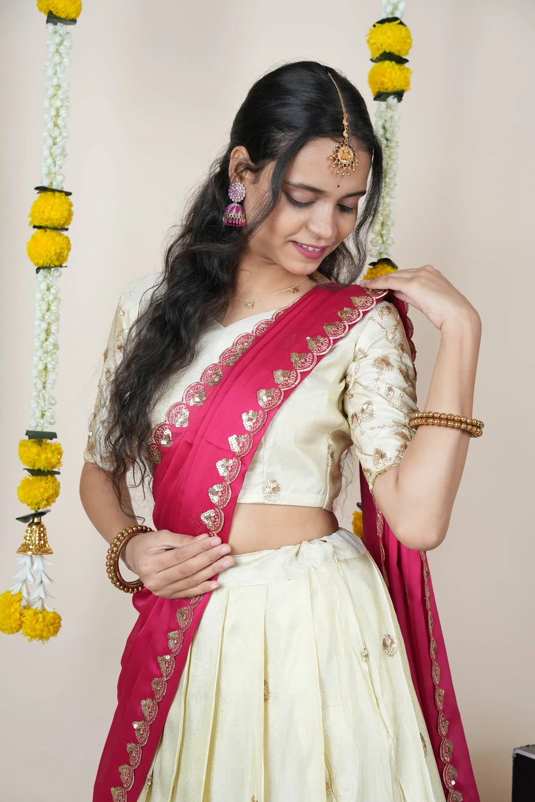 (ButtaBomma) South Indian Festival Traditional Half Saree with Embroidered Blouse & Dupatta