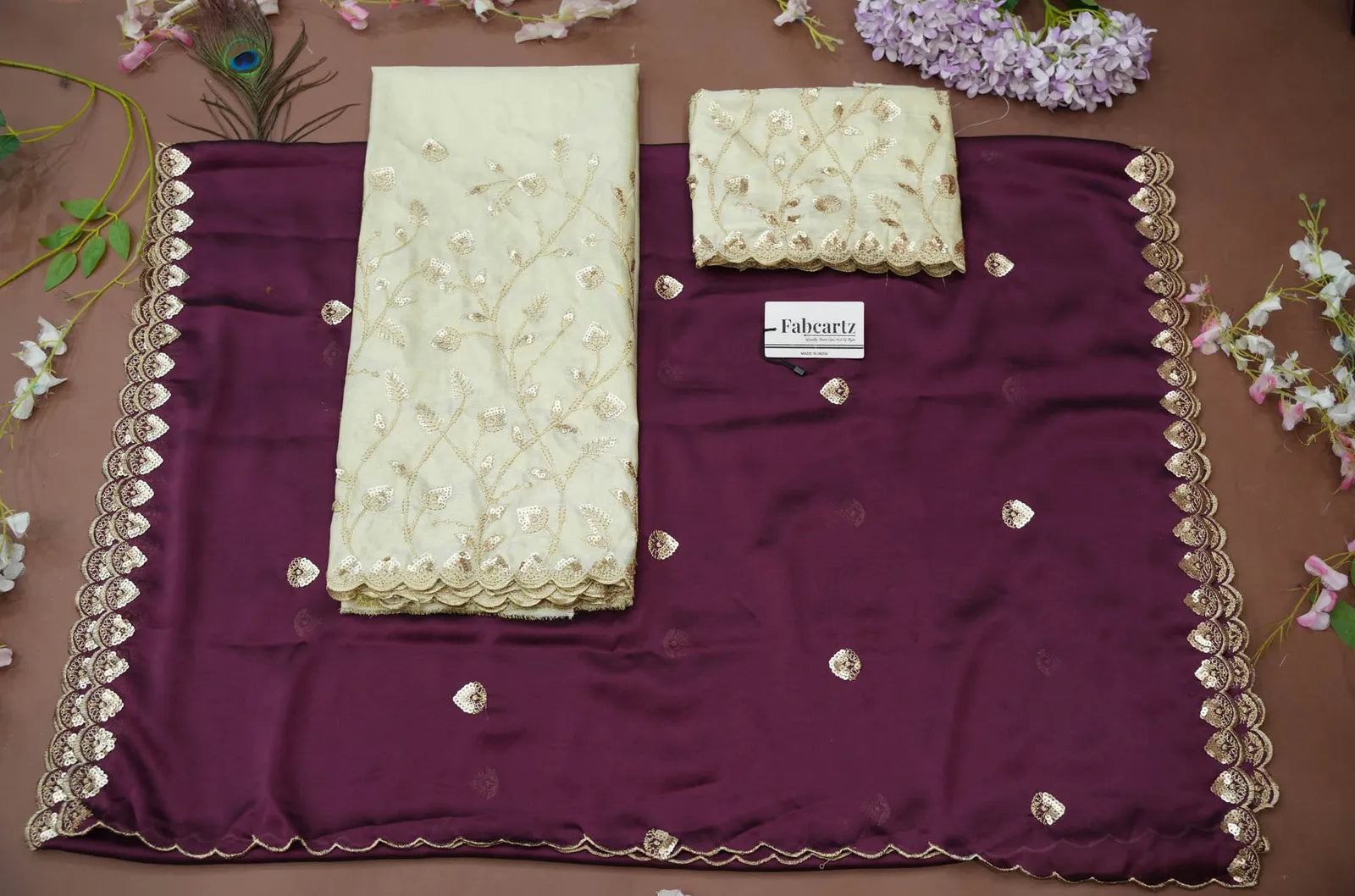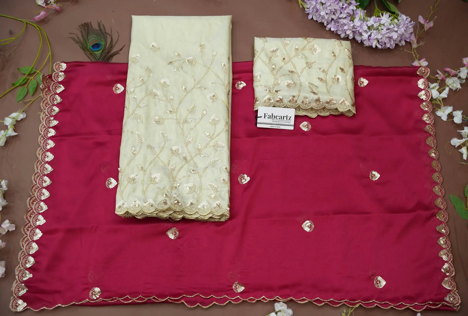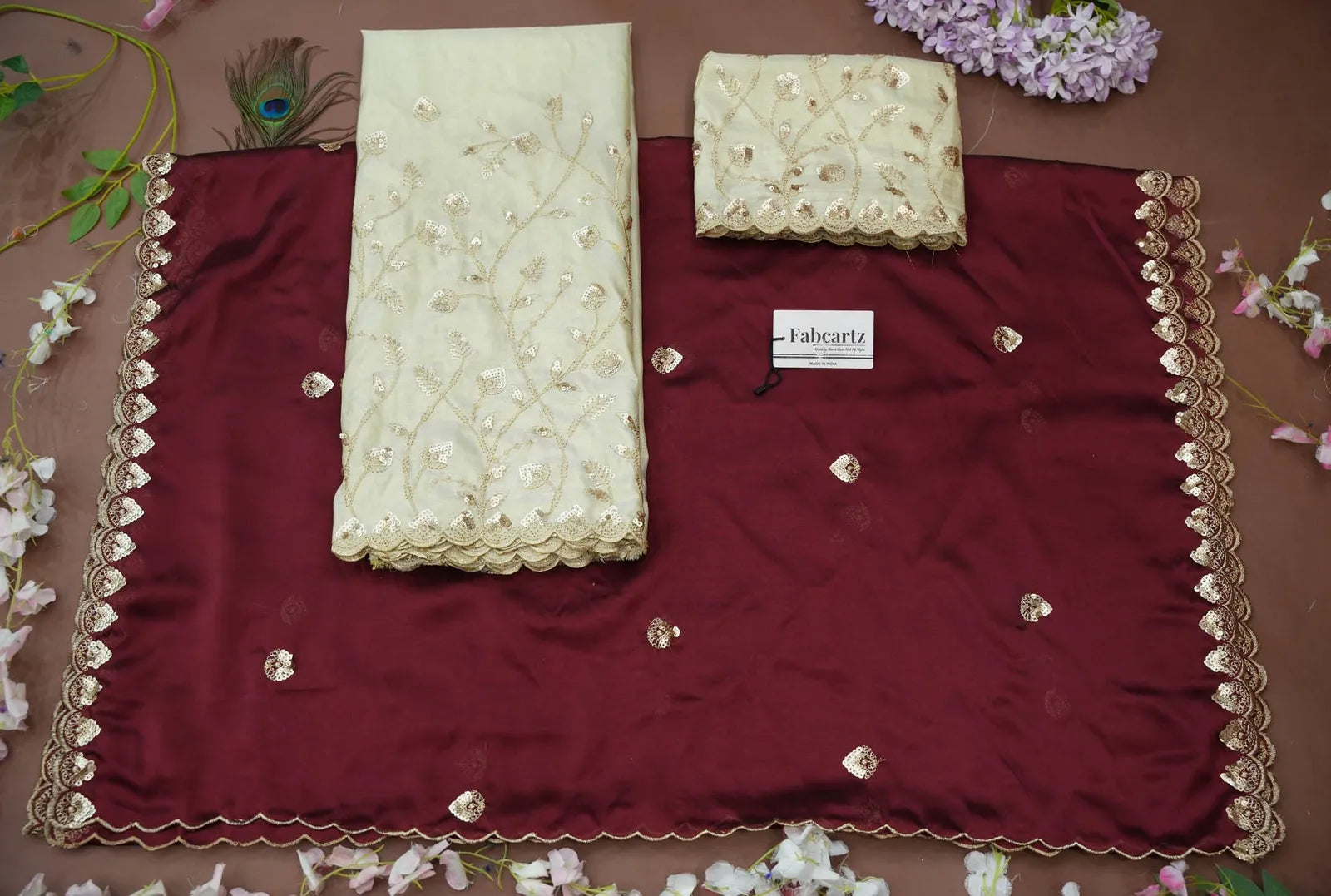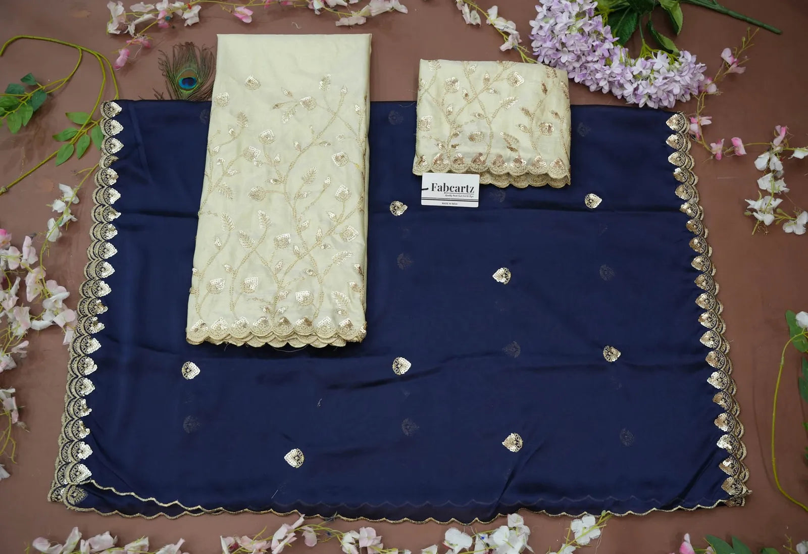 Satyabhumi Women's Embroidered Half Saree with Blouse and Dupatta