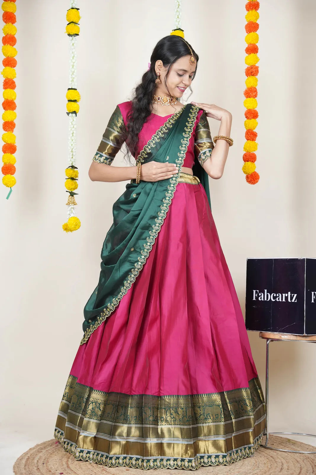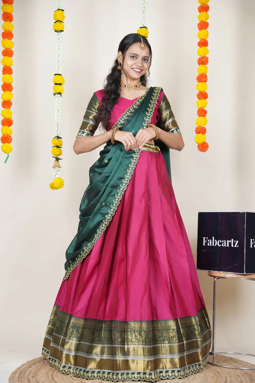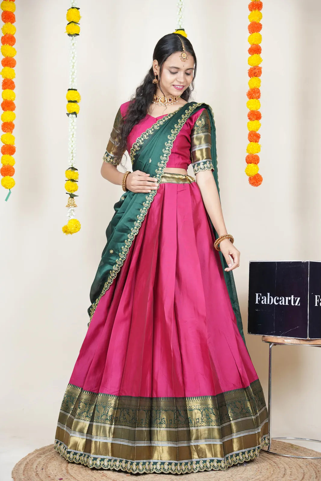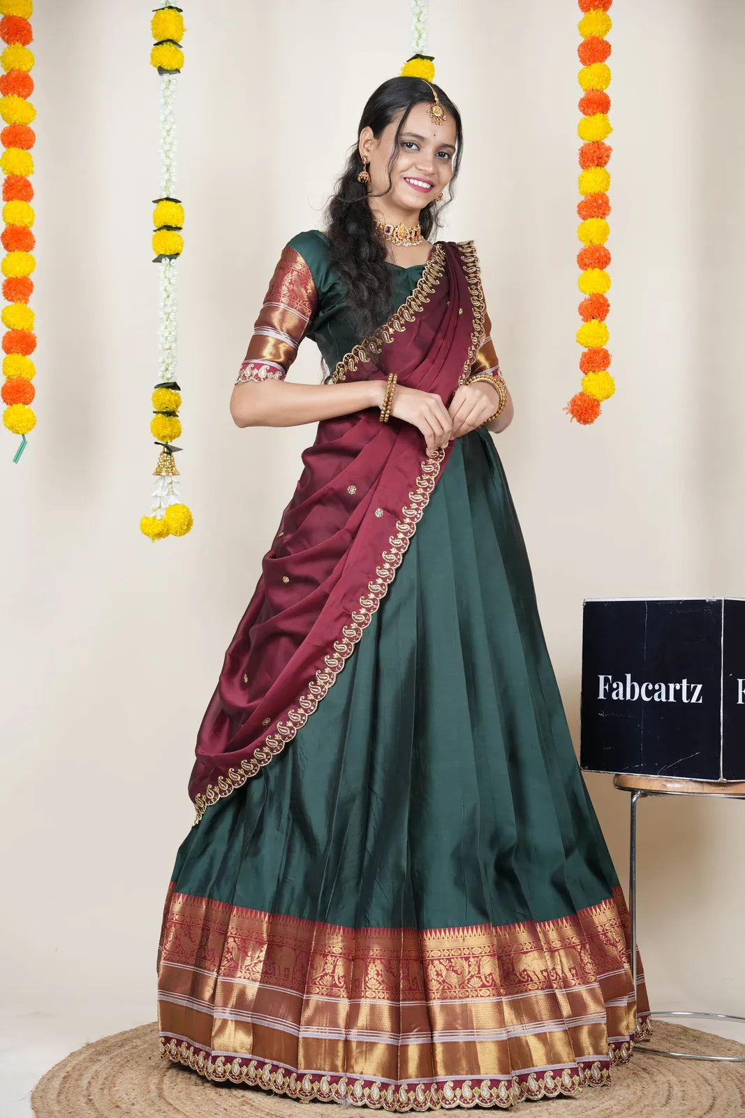 (ButtaBomma) South Indian Festival Traditional Half Saree with Embroidered Blouse & Dupatta