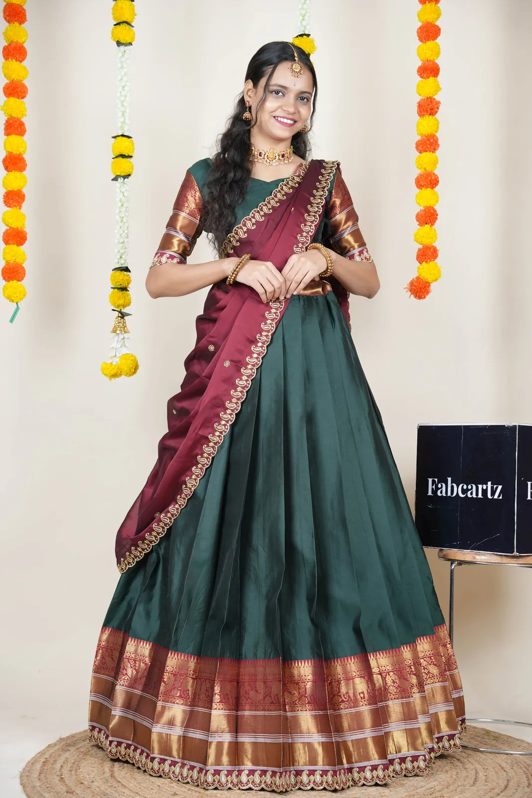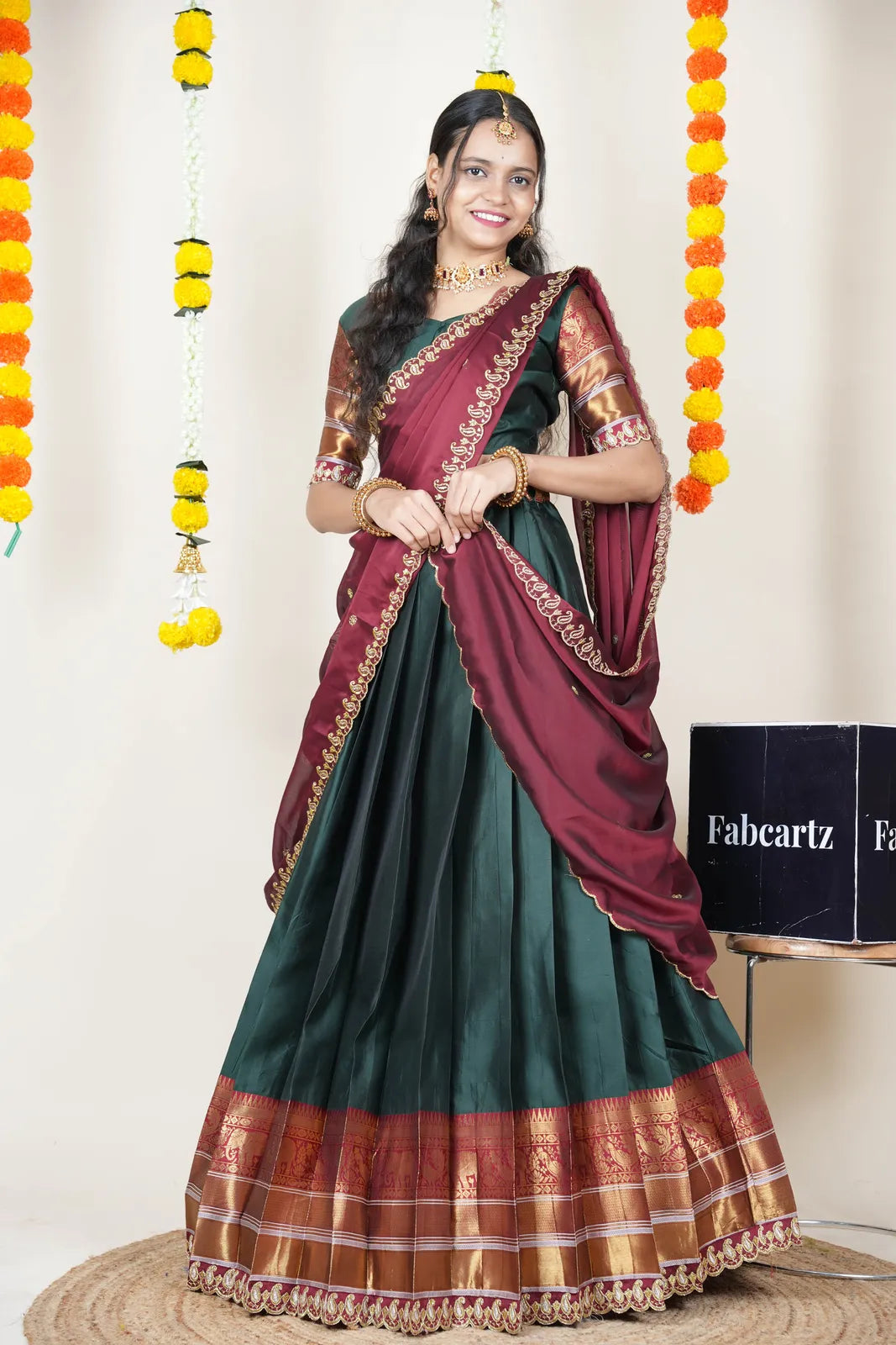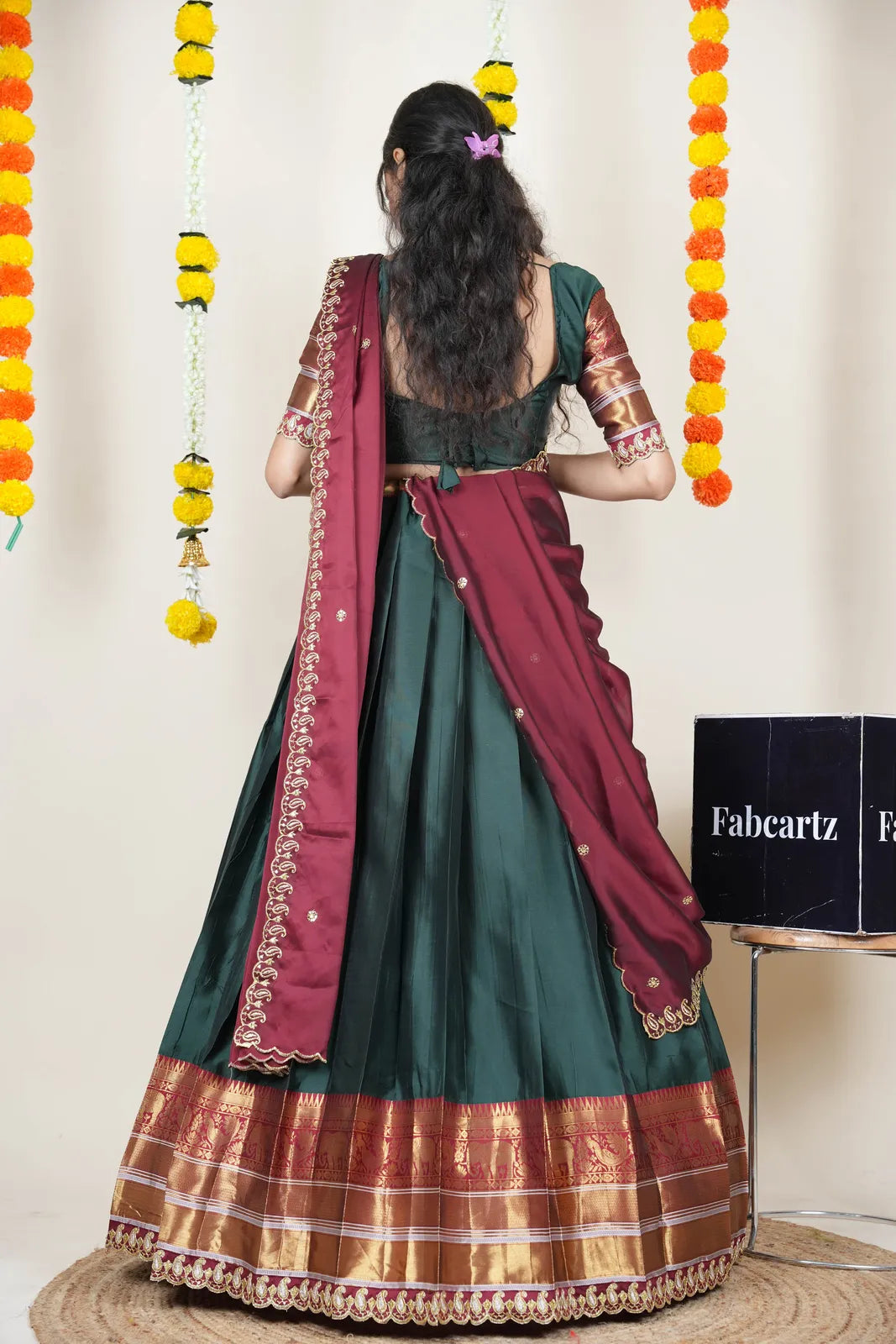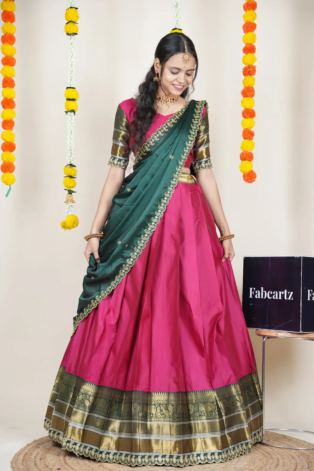 (ButtaBomma) South Indian Festival Traditional Half Saree with Embroidered Blouse & Dupatta