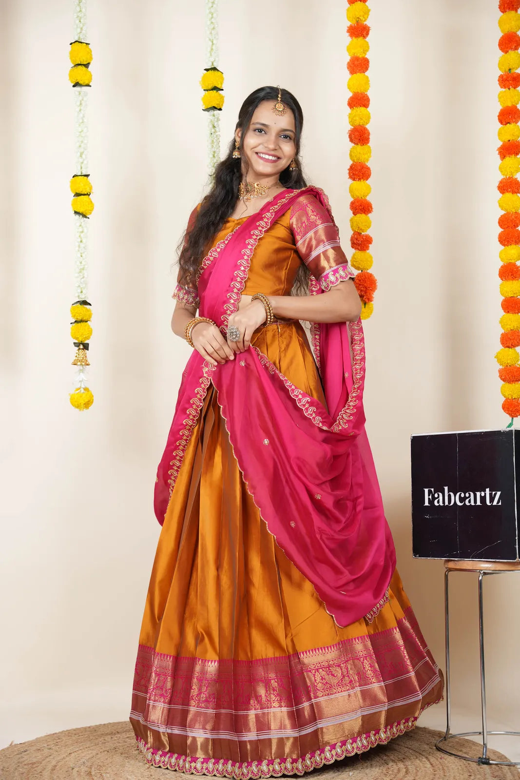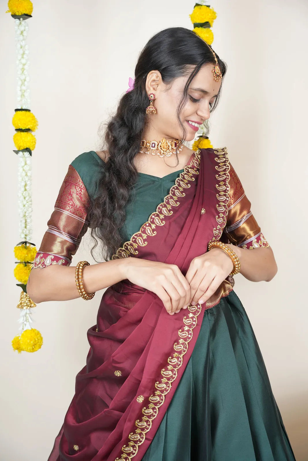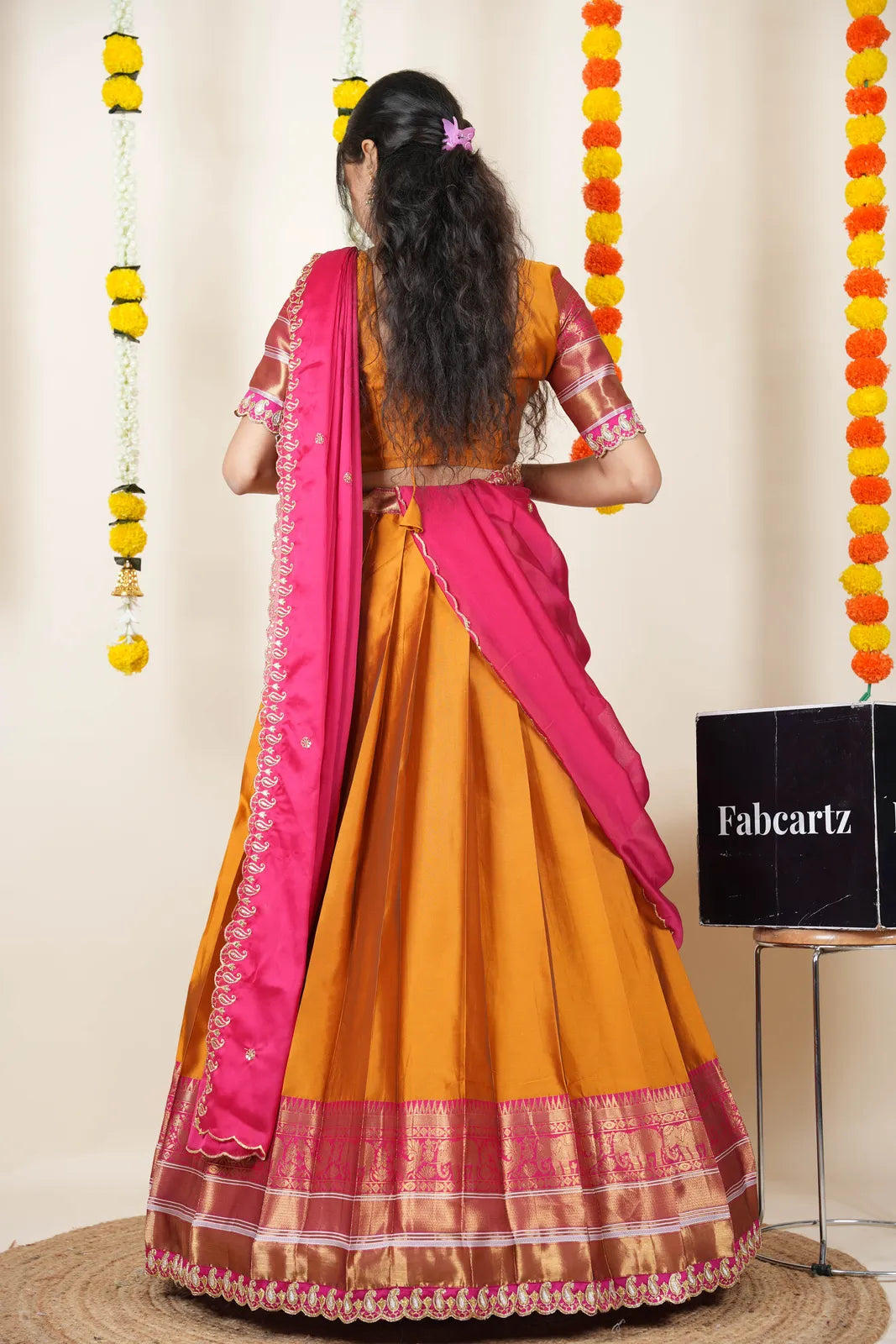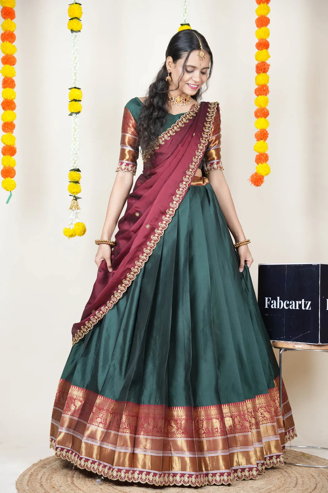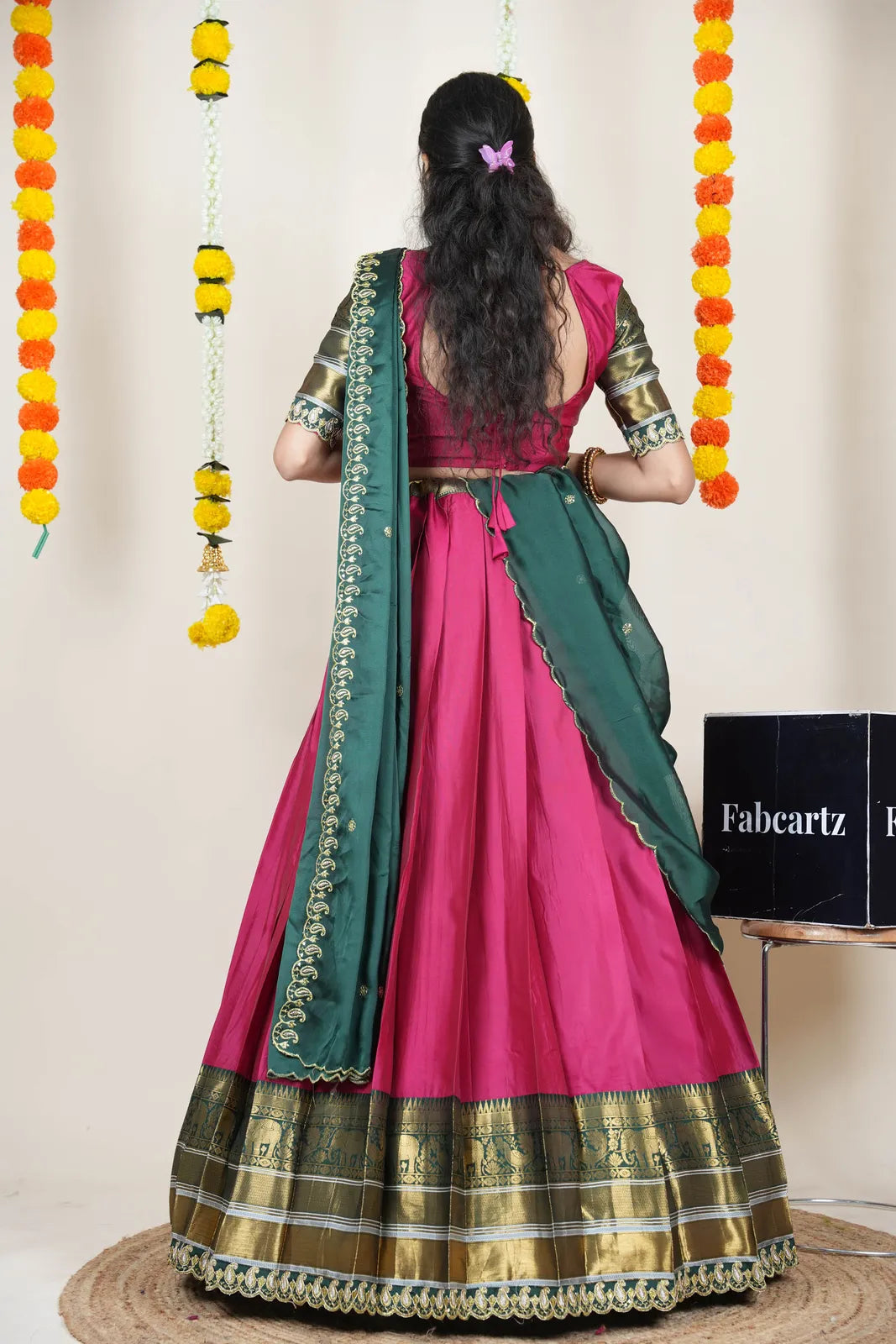 (ButtaBomma) South Indian Festival Traditional Half Saree with Embroidered Blouse & Dupatta