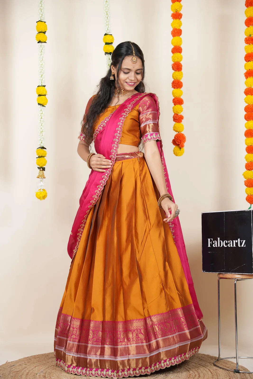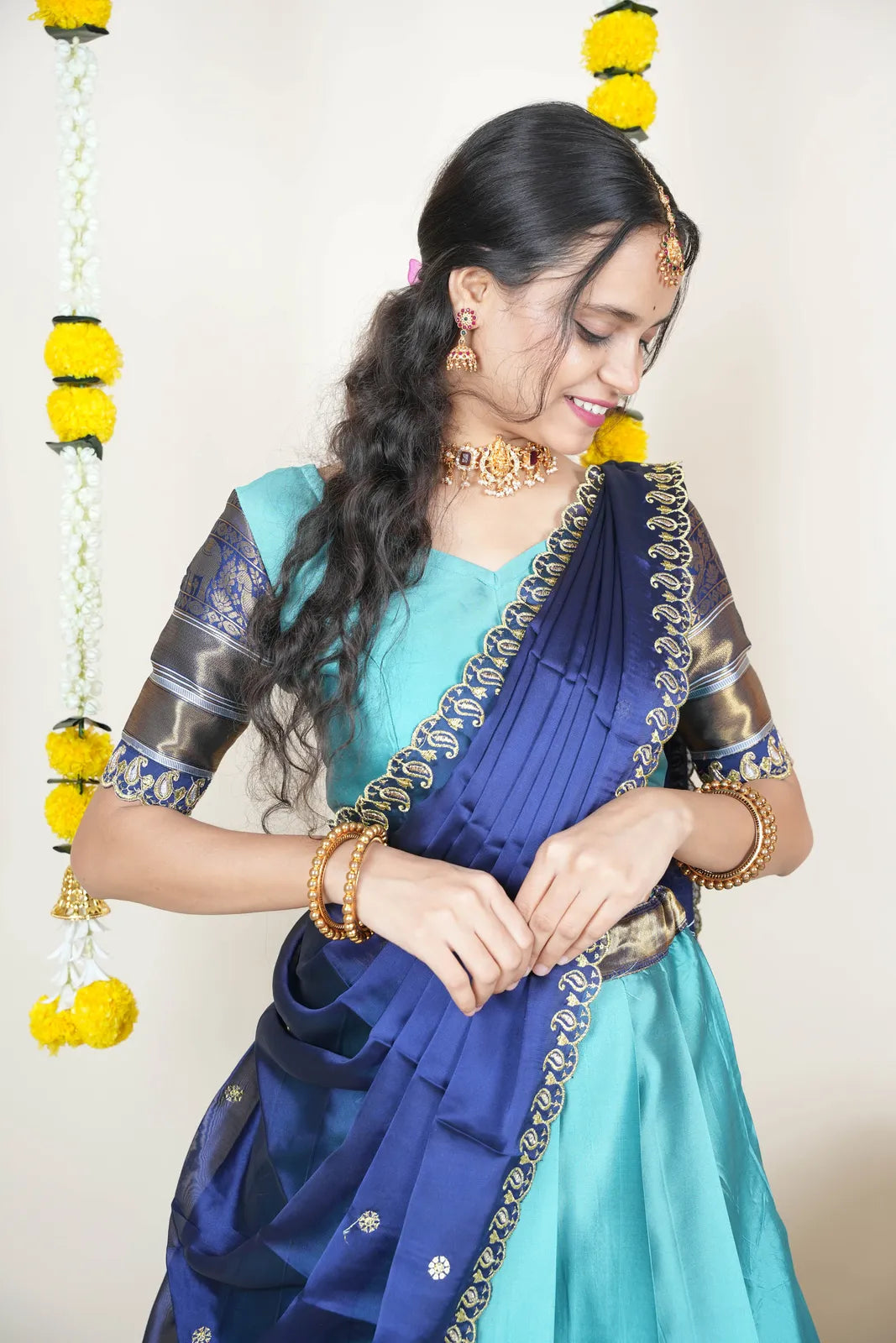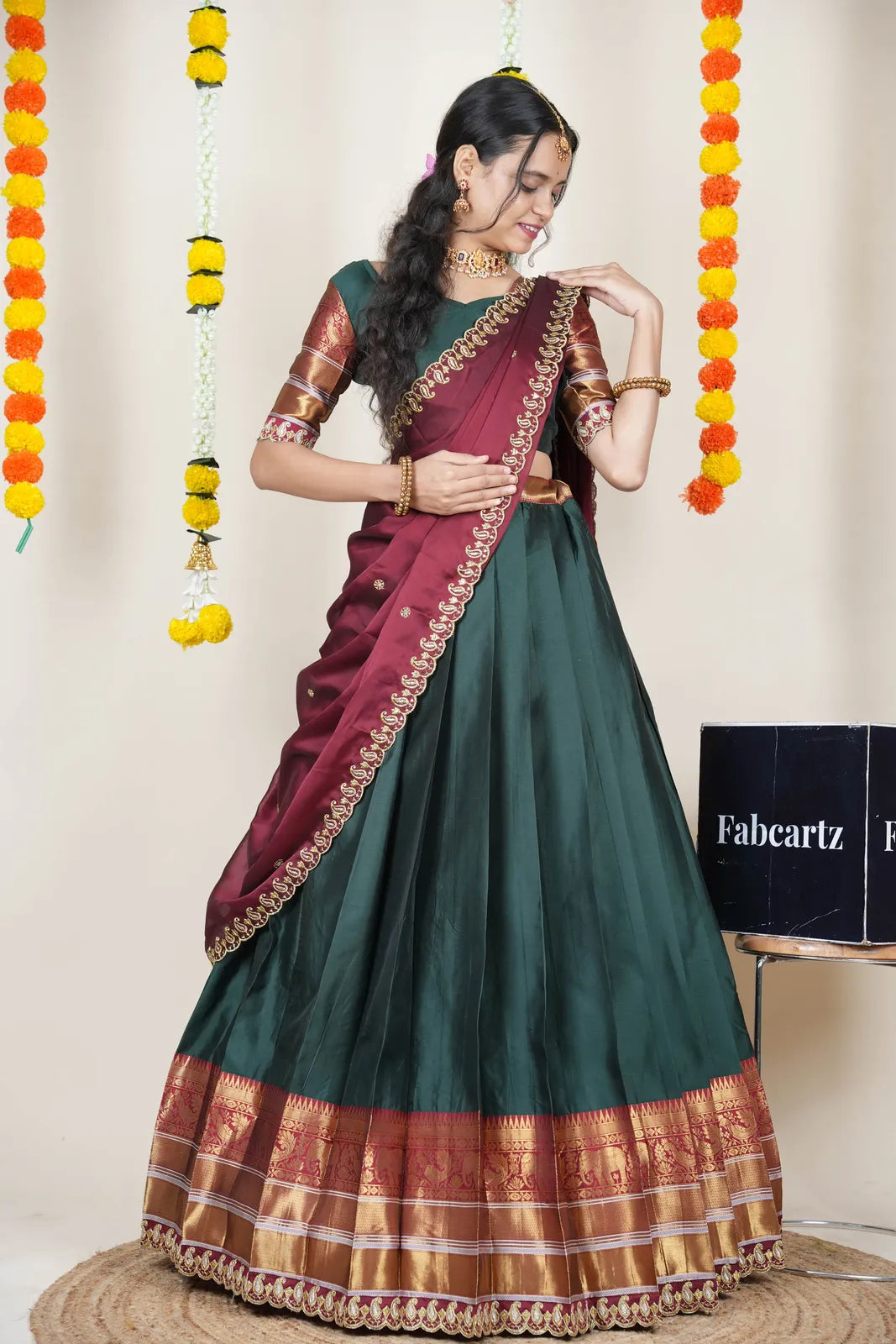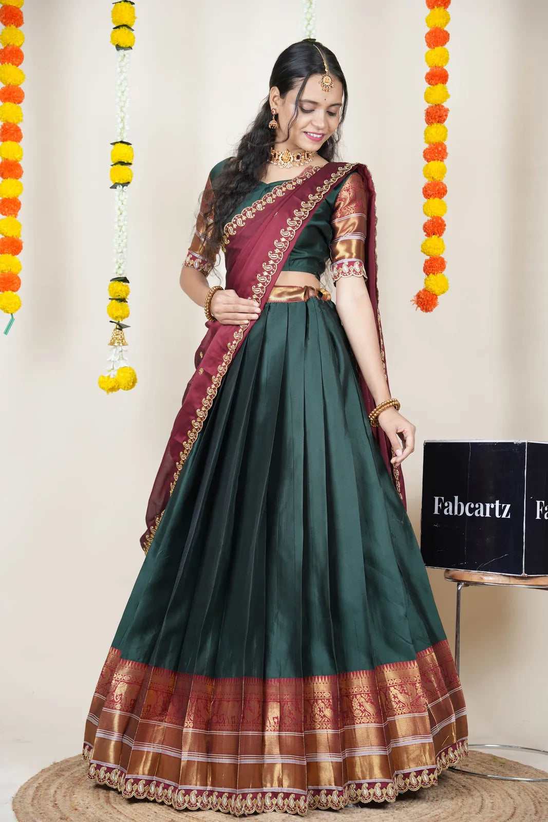 (ButtaBomma) South Indian Festival Traditional Half Saree with Embroidered Blouse & Dupatta