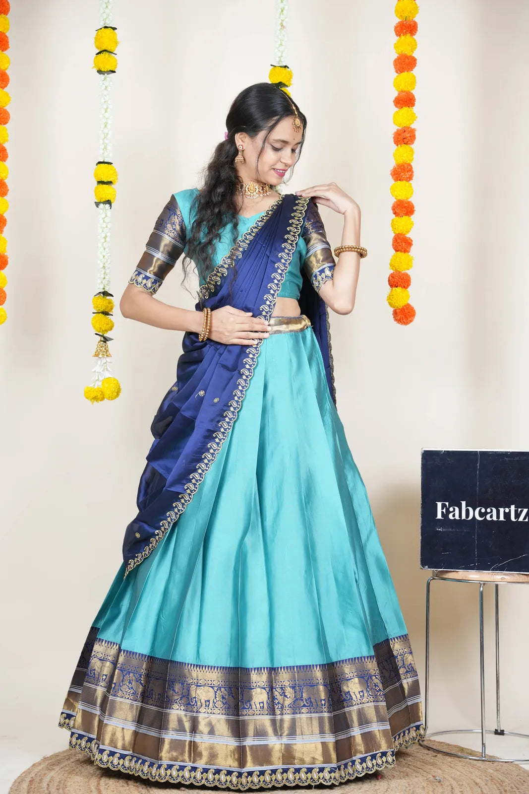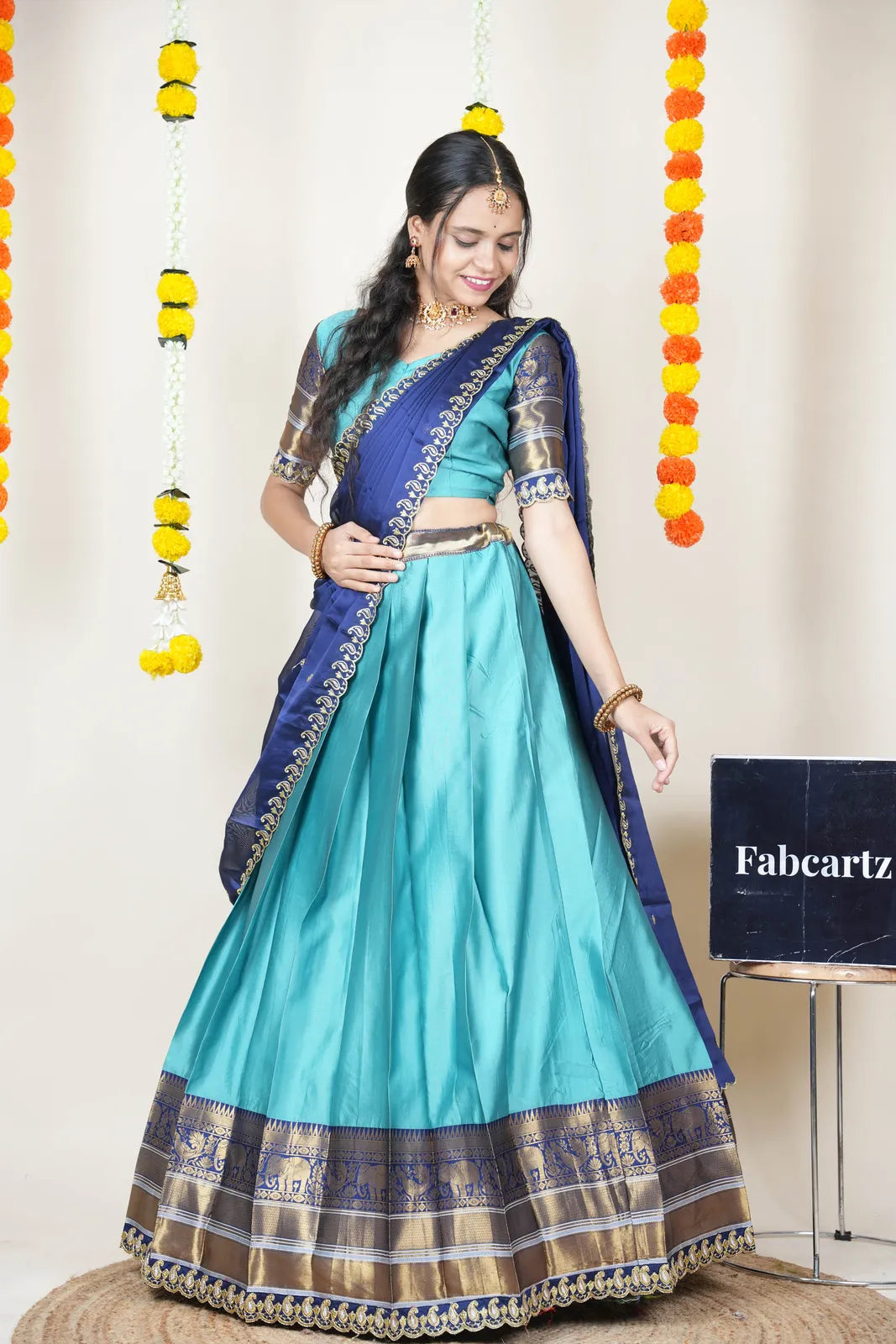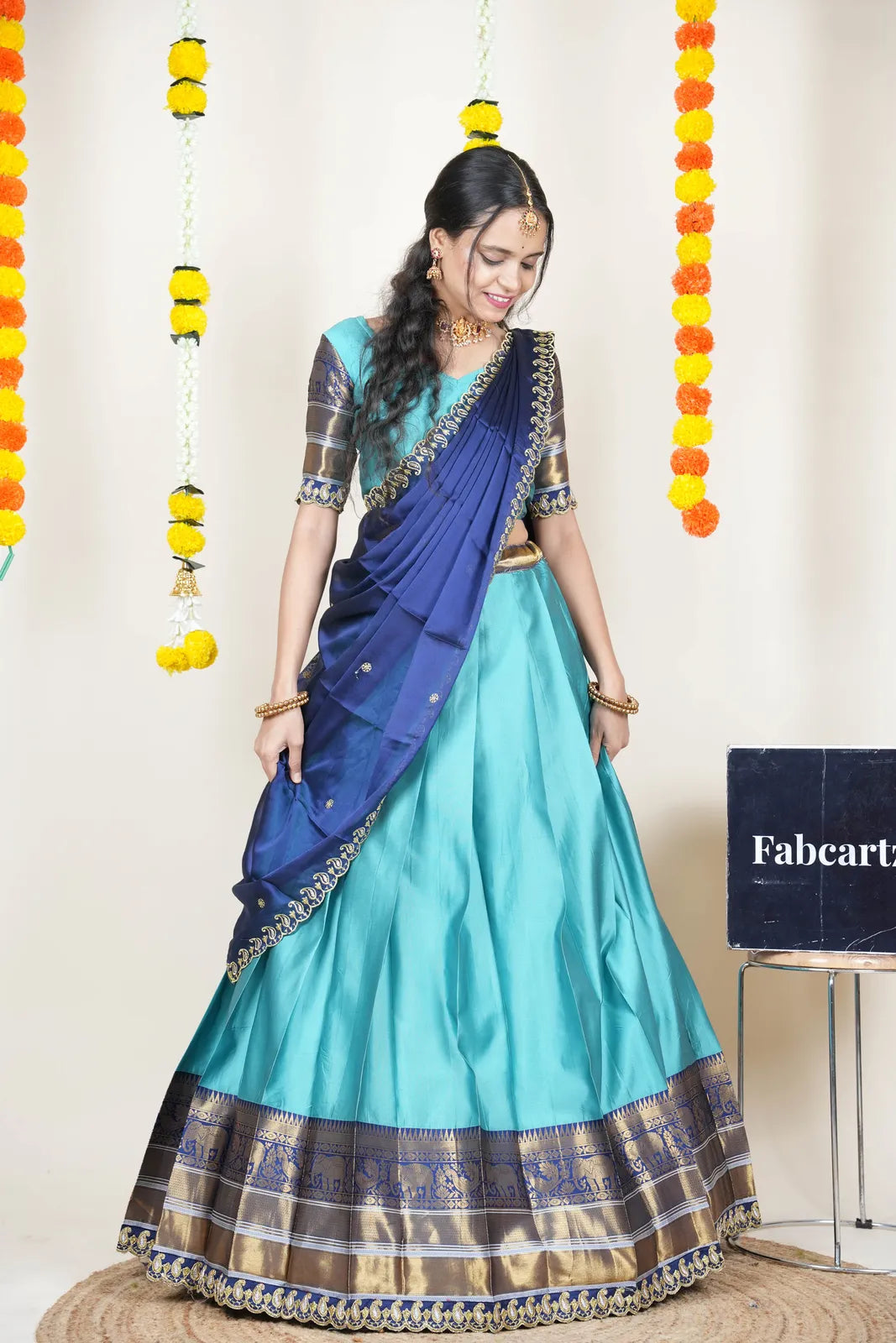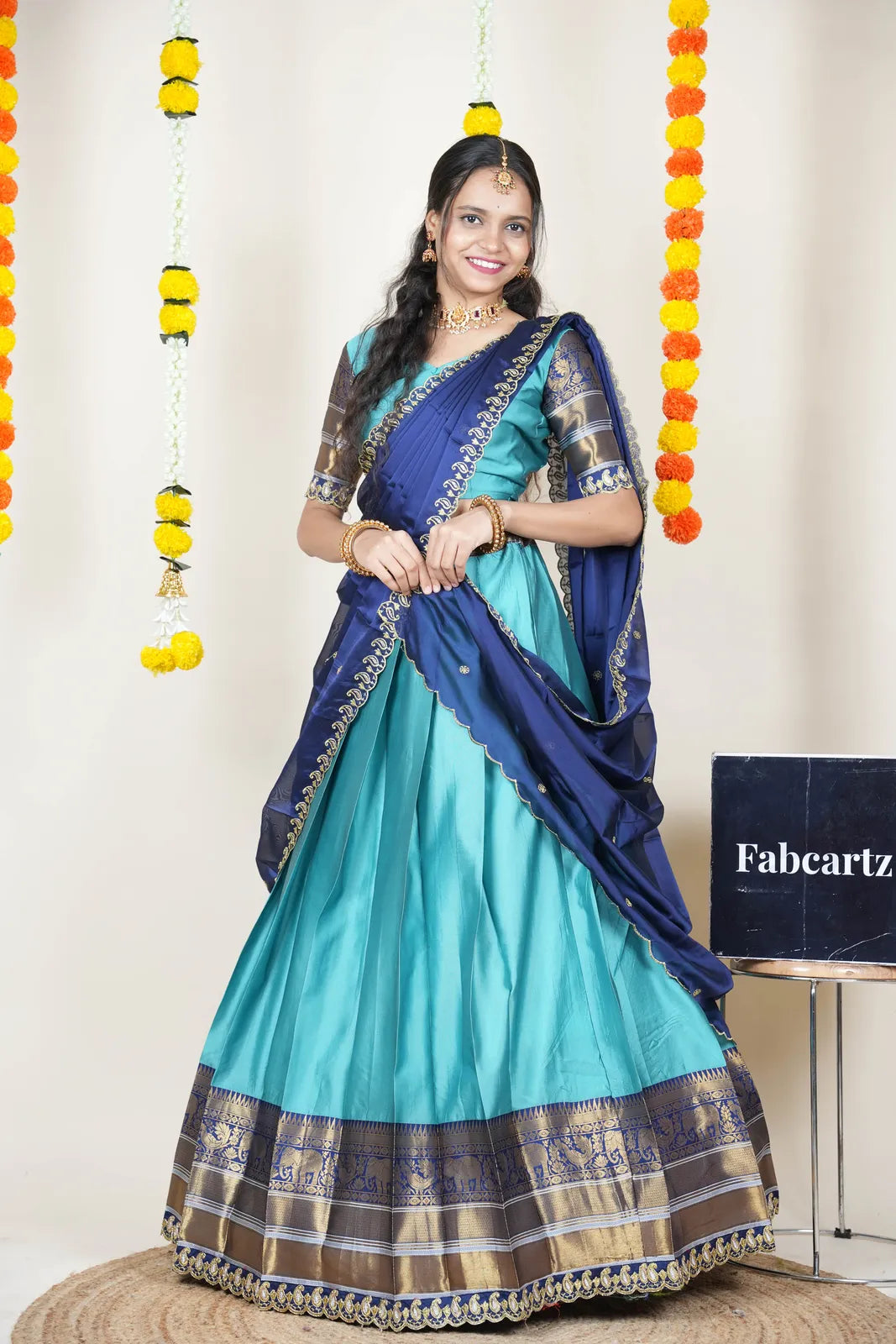 (Adhira) South Indian Festival Traditional Half Saree with Embroidered Blouse & Dupatta