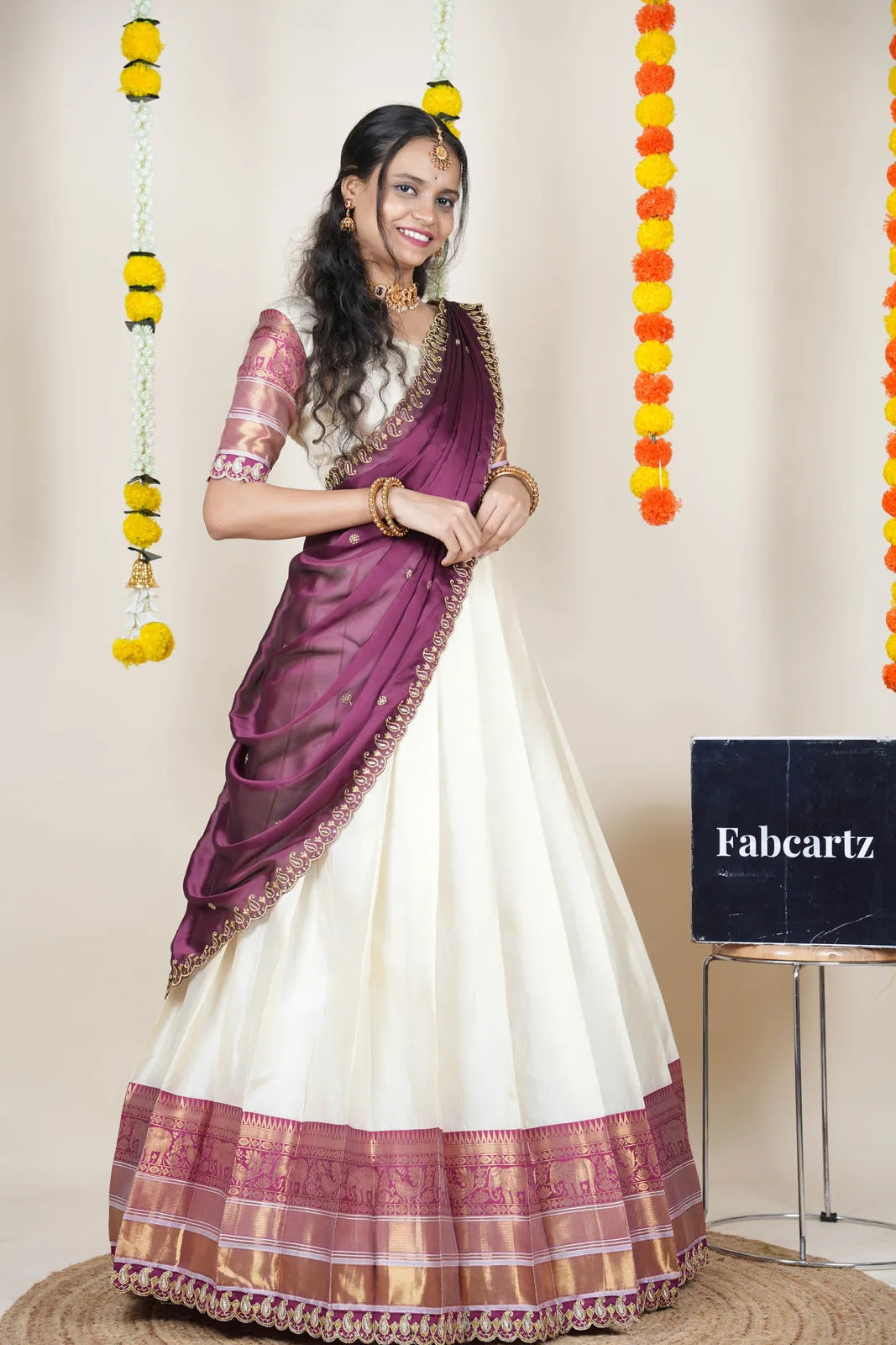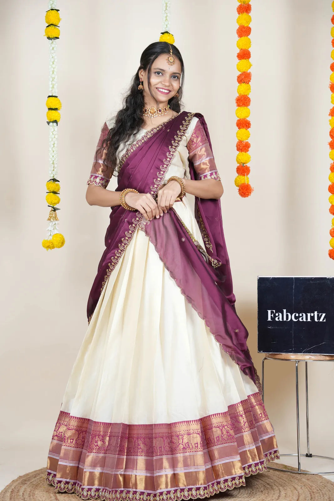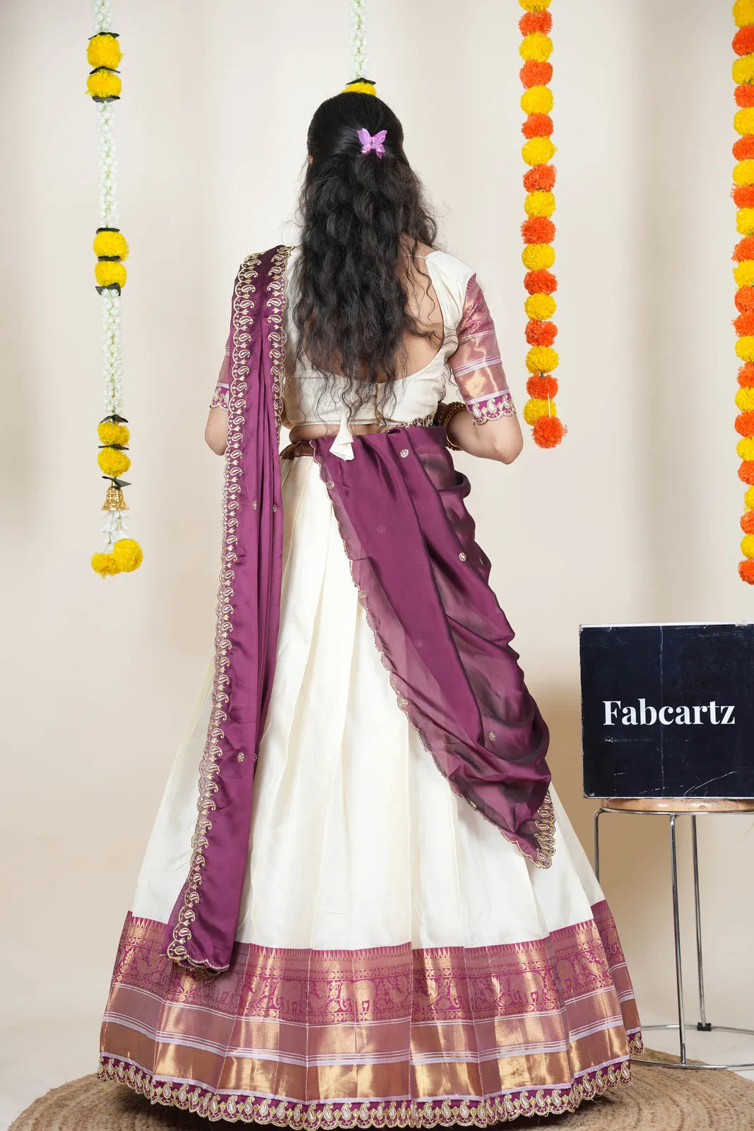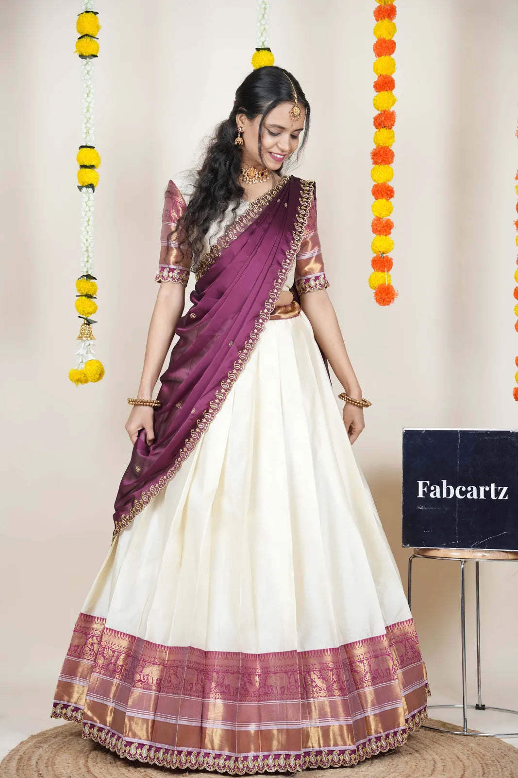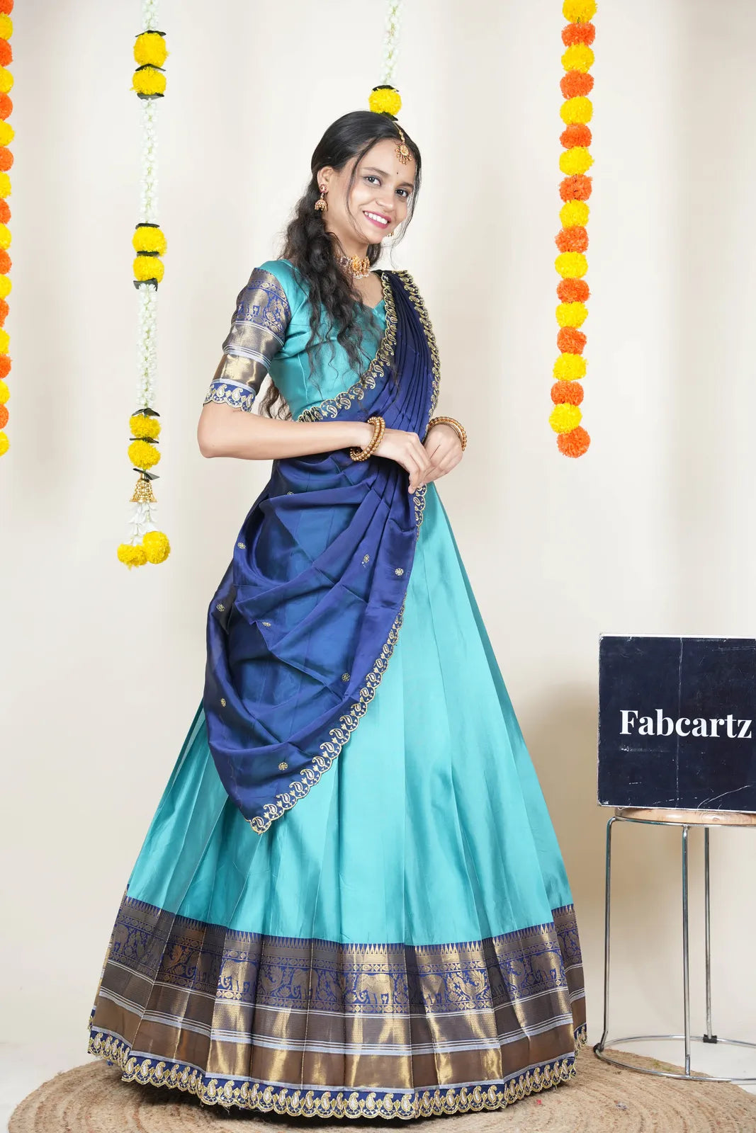 (Adhira) South Indian Festival Traditional Half Saree with Embroidered Blouse & Dupatta
